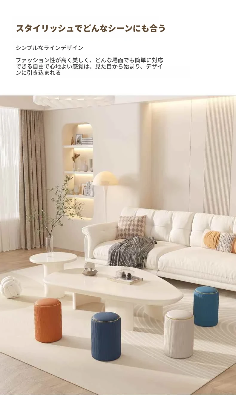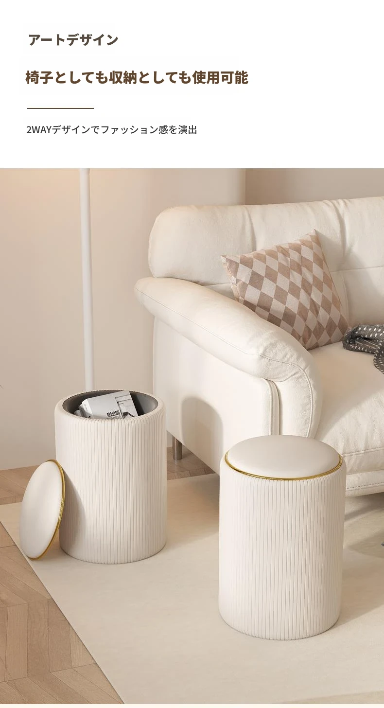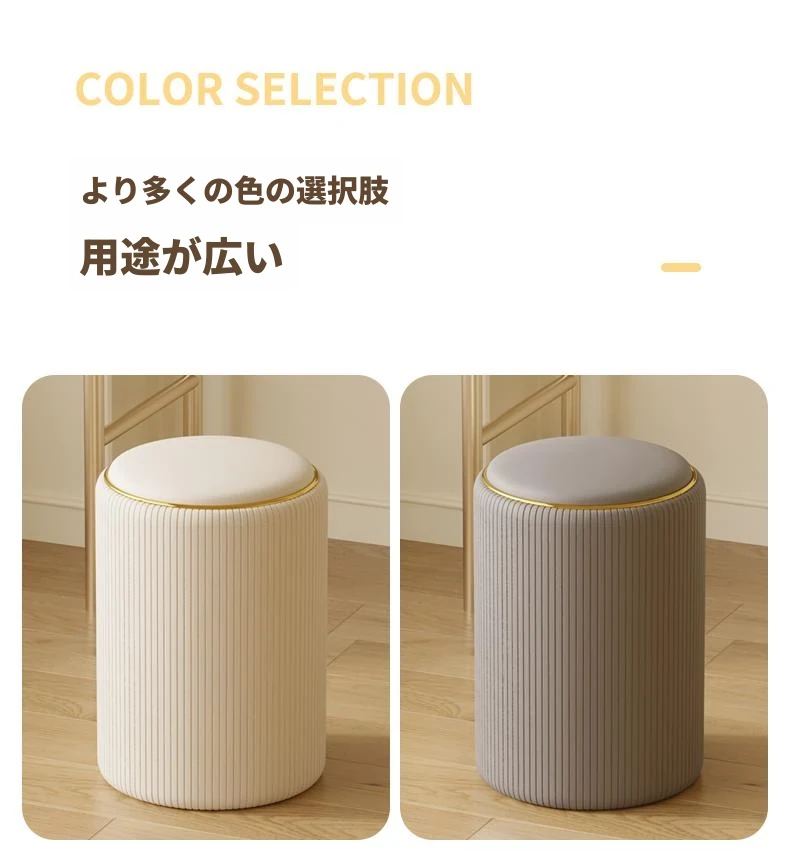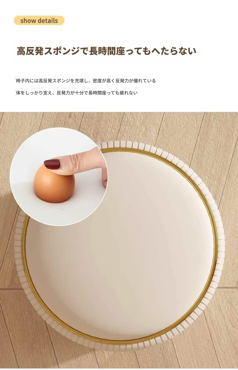 軽奢感漂う美しい化粧台椅子!収納機能付きの円形デザインで、美容やネイルに最適。寝室にぴったりなクリーミーカラーで、毎日のメイクアップが楽しみになるアイテムです!