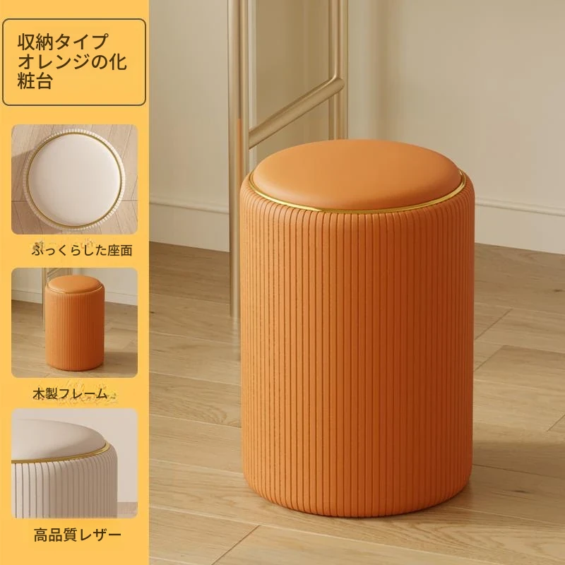 オレンジ【収納可】ストライプメイクスツール