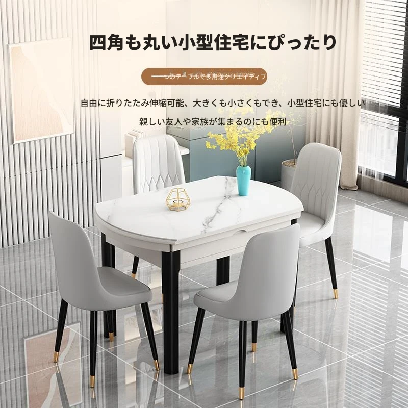 角丸両用伸縮式ダイニングテーブル+4チェア