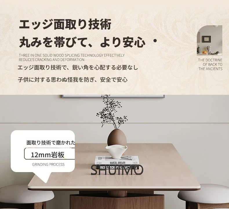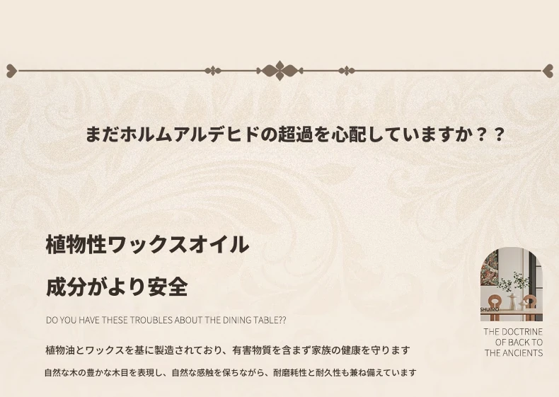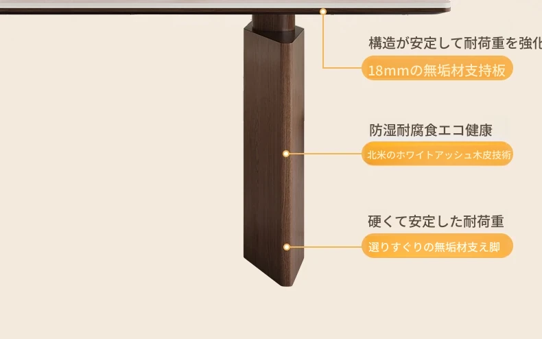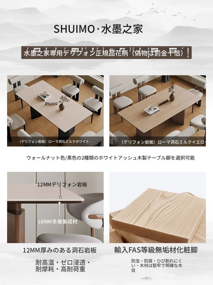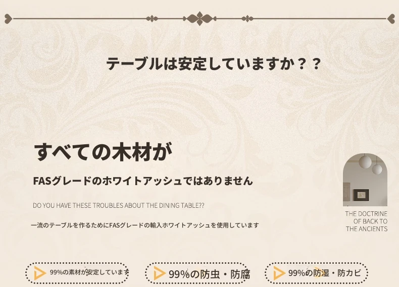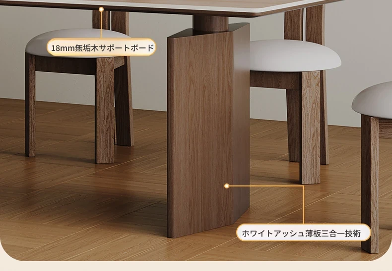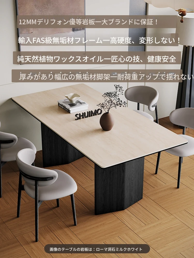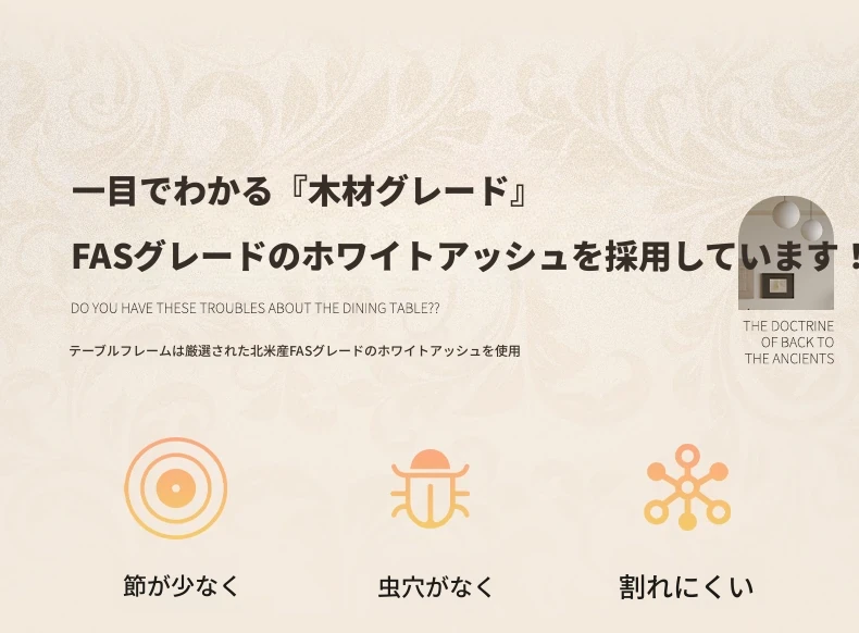 1.8メートルのホワイトアッシュ無垢材ダイニングテーブル【高級デリフォン洞石優等板】