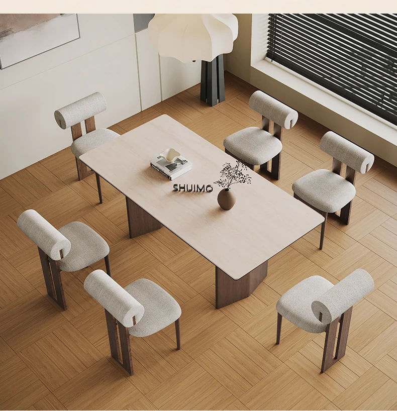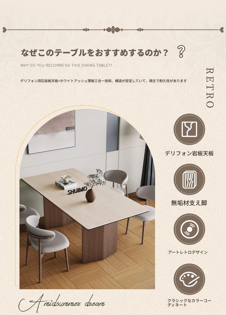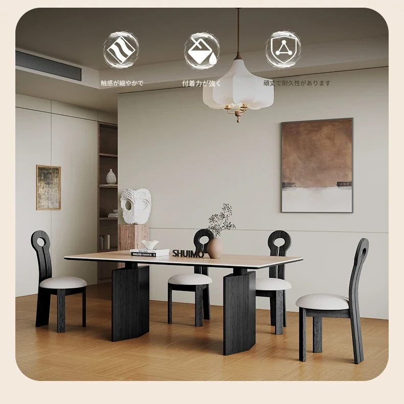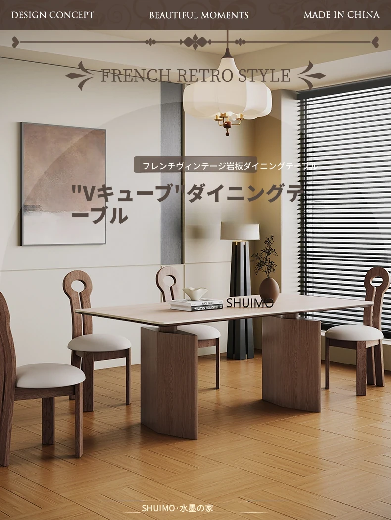 フランス風クリーム復古スタイル無垢材デリフォン岩板 家庭用ブラック円形ダイニングテーブル ウォールナット色渦巻きデザインの椅子付き!おしゃれで高級感あふれる食卓を演出します。