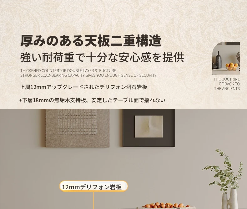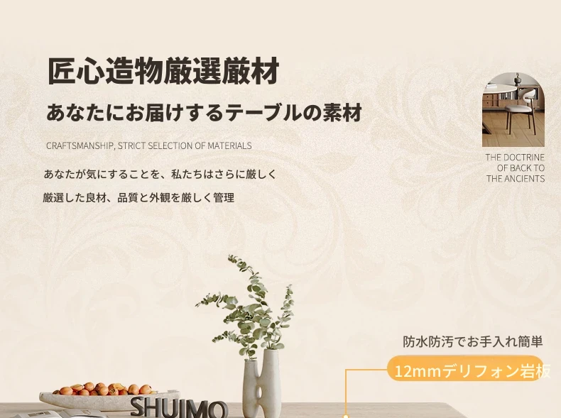 侘寂スタイルの小型折りたたみ式岩板ダイニングテーブル - 丸型と四角型の2WAYデザイン、家でも使えるデザイナーズテーブル!おしゃれで機能的な食卓を手に入れて、心地よい食事のひとときを楽しもう!