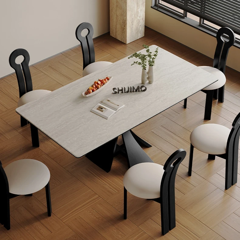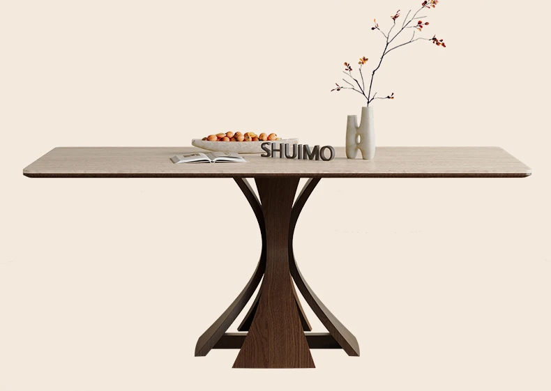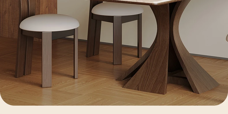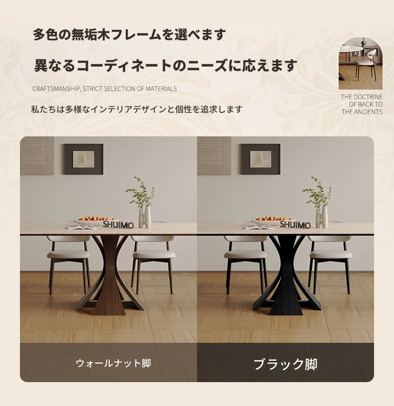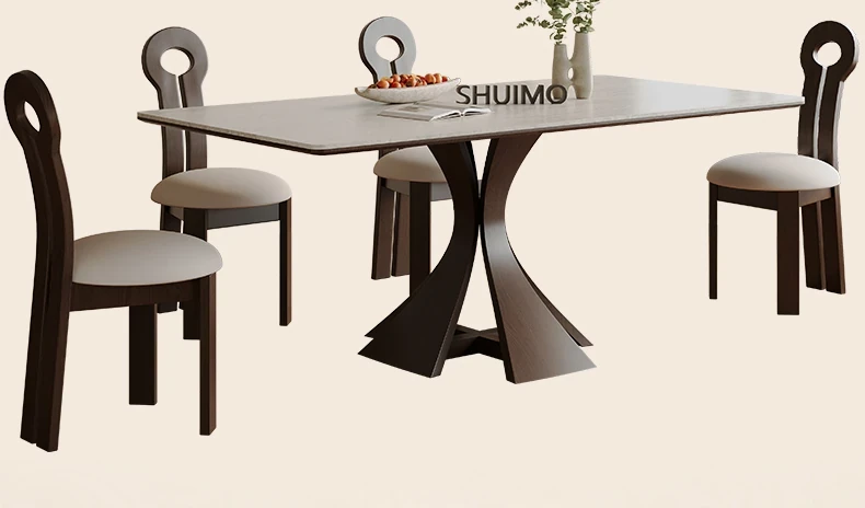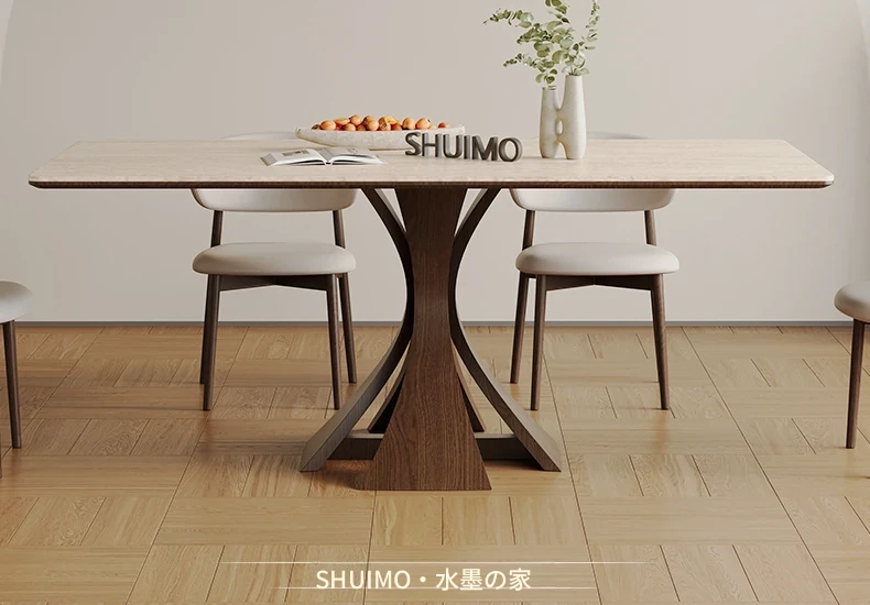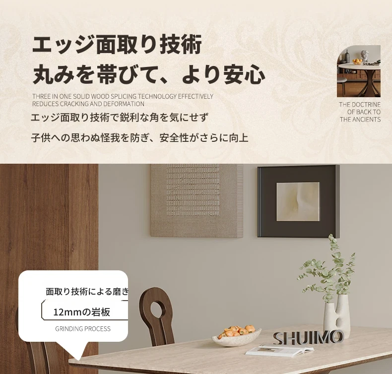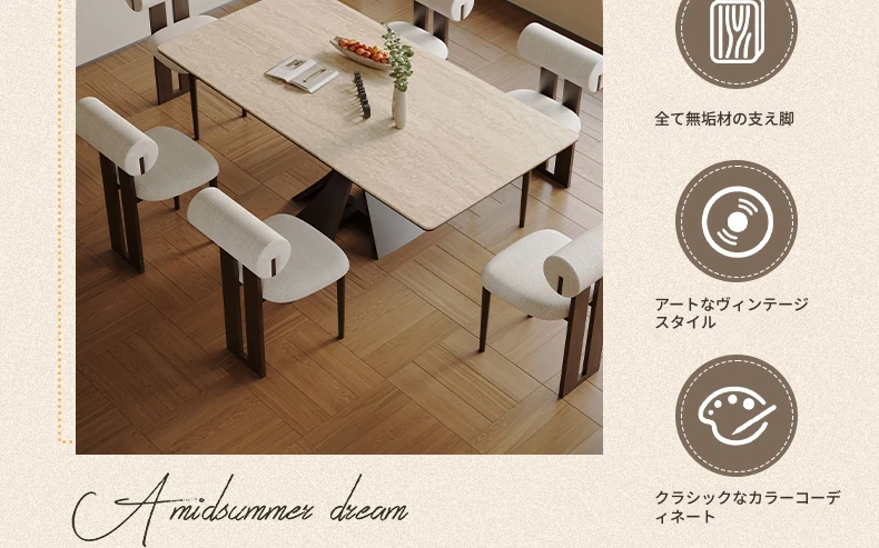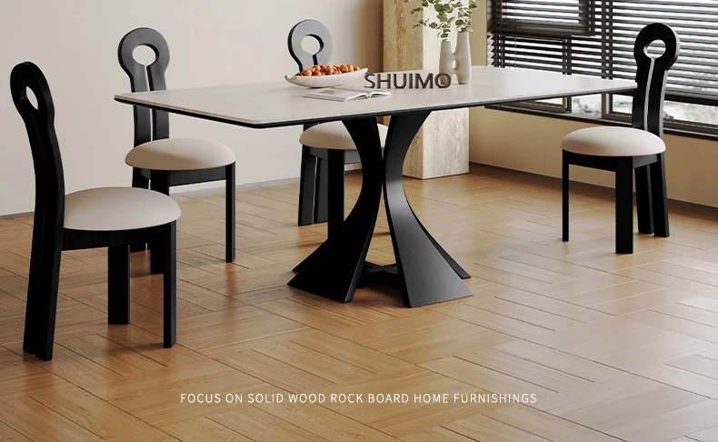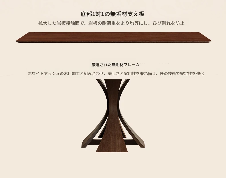 侘寂スタイルの無垢材ロックボードダイニングテーブル&チェアセット - ホワイトアッシュとウォールナットの現代的でシンプルなデザイン、2025年モデル。おしゃれで機能的な食卓を演出します!