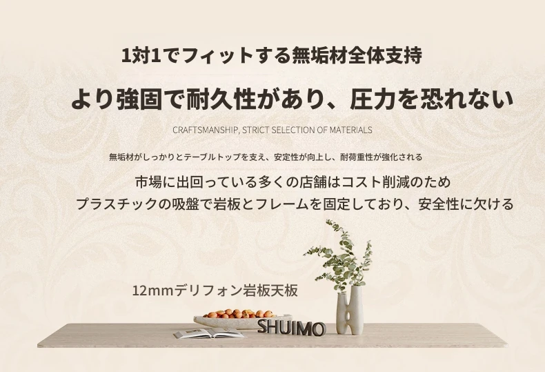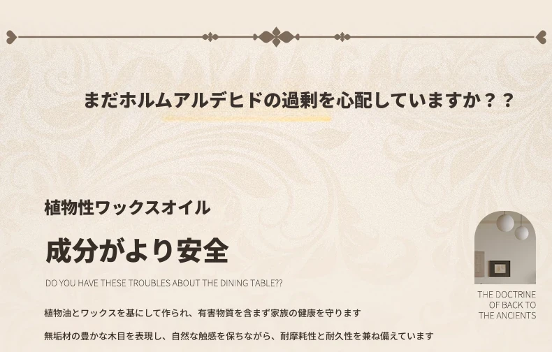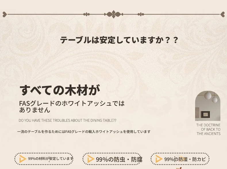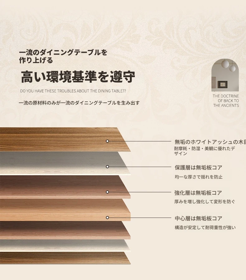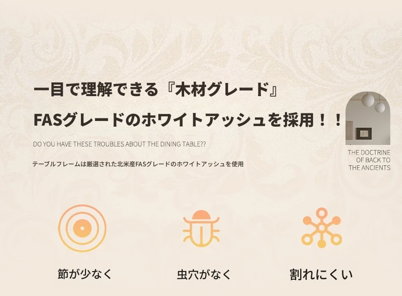 1.8メートル白蝋木の無垢材ダイニングテーブル【高級デリフォン洞石優等板】