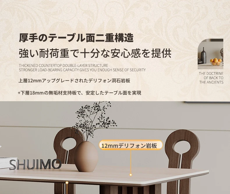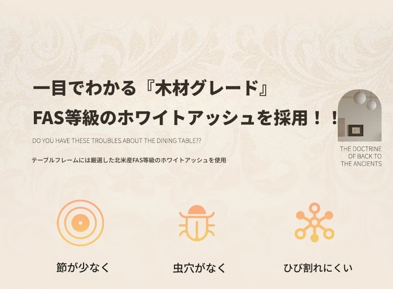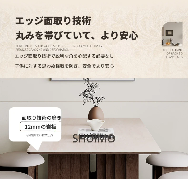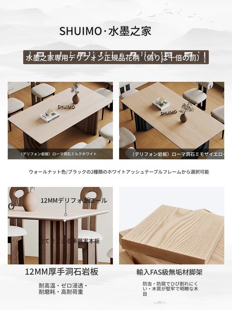 1.8メートル白檀無垢材ダイニングテーブル【高級デリフォン洞石優等板】