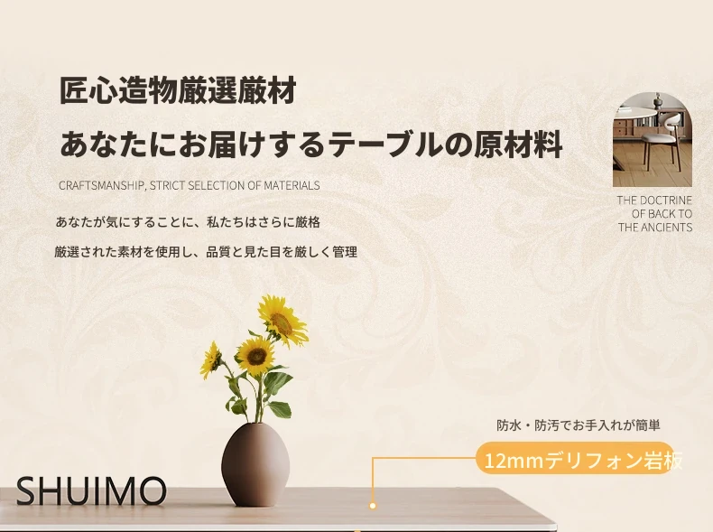 1.3メートル白檀無垢材ダイニングテーブル【高級デリフォン洞石優等板】