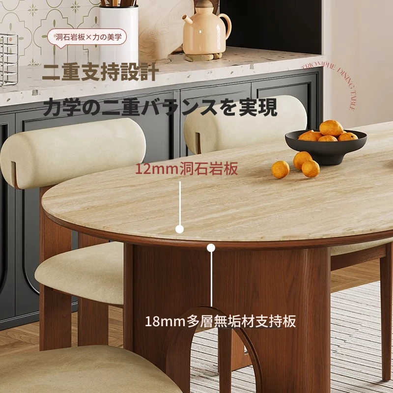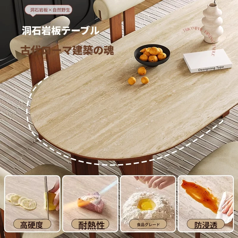 洞石岩板ダイニングテーブル【高温耐性岩板】