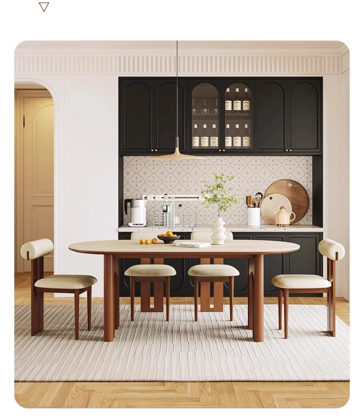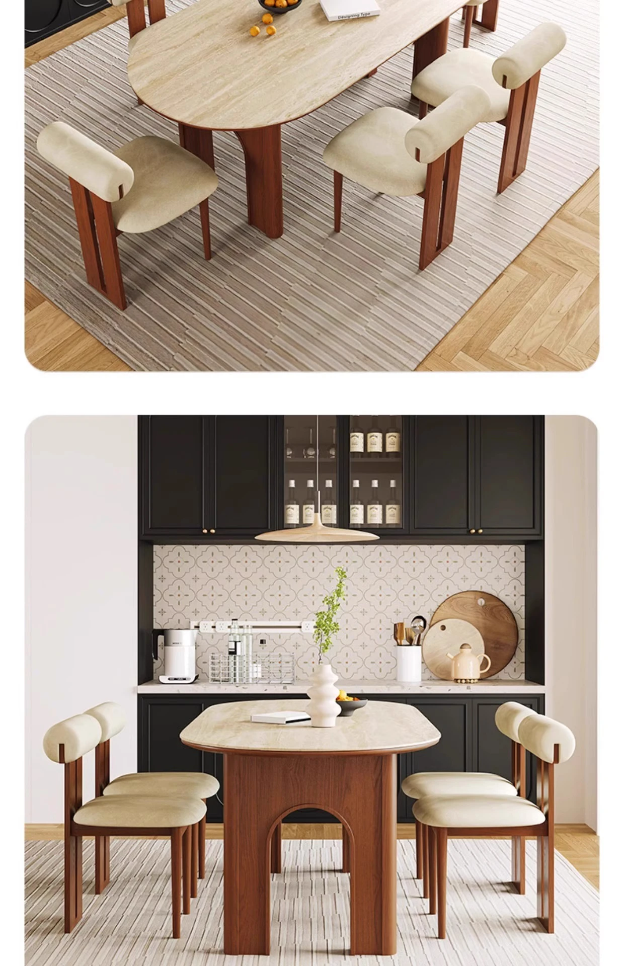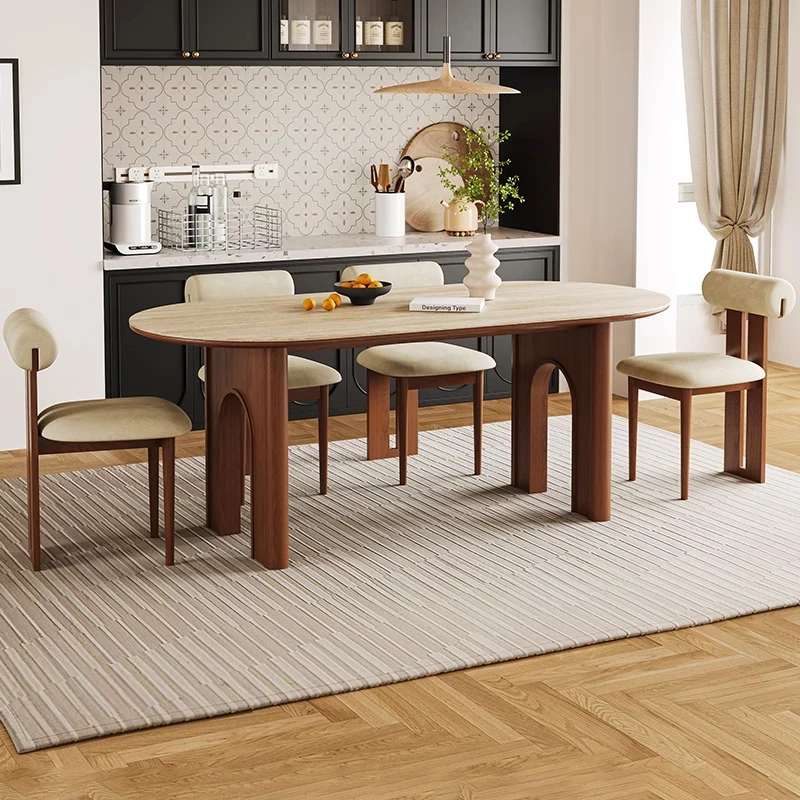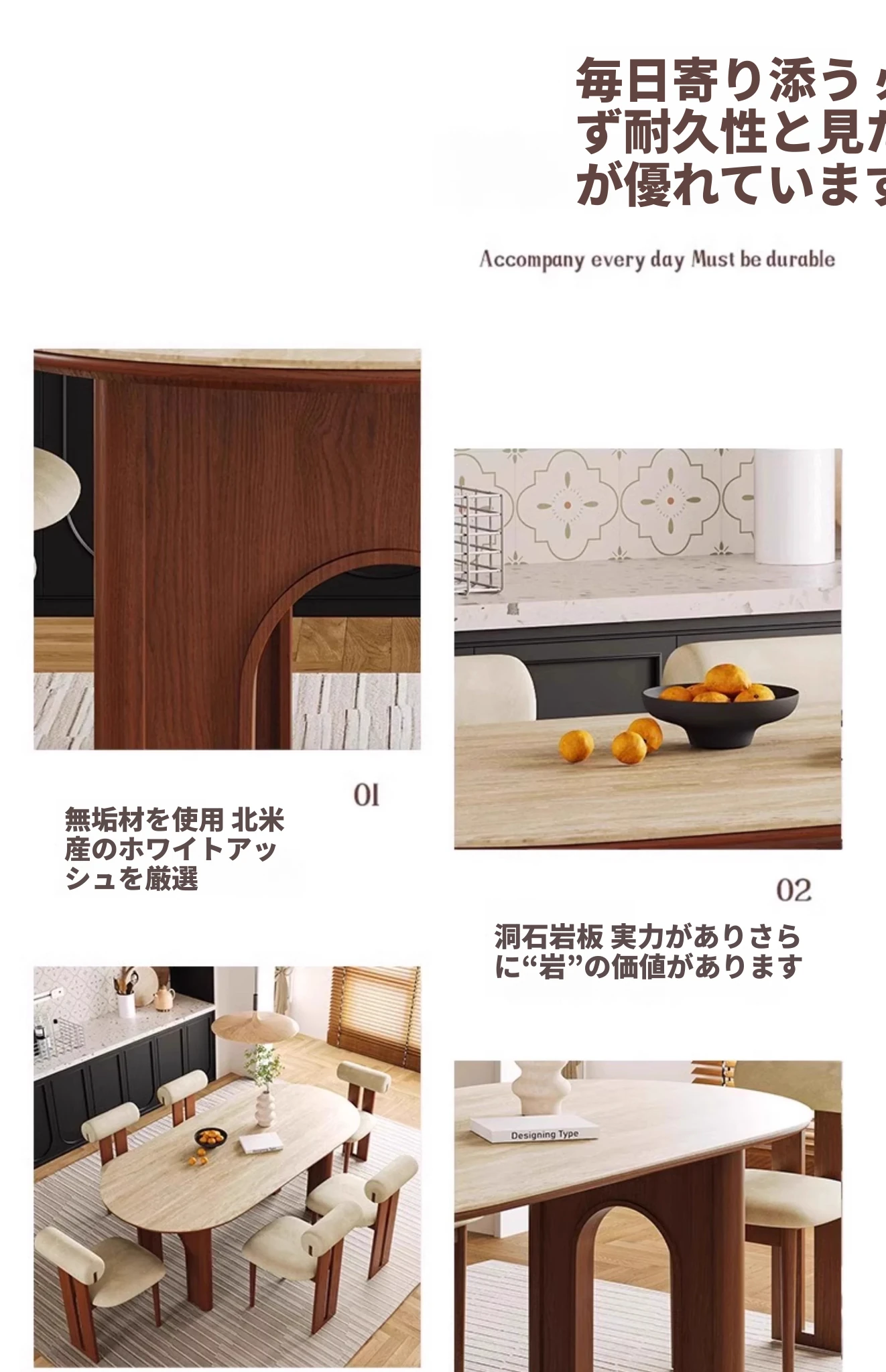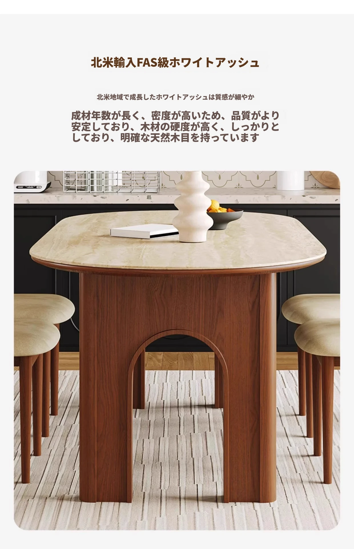 侘寂スタイルの無垢材ロックボードダイニングテーブル&チェアセット - ホワイトアッシュとウォールナットの現代的でシンプルなデザイン、2025年モデル。おしゃれで機能的な食卓を演出します!