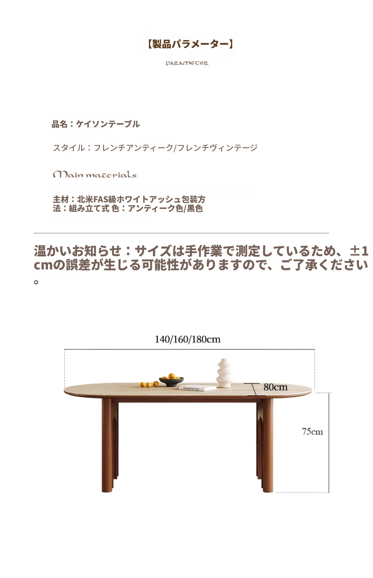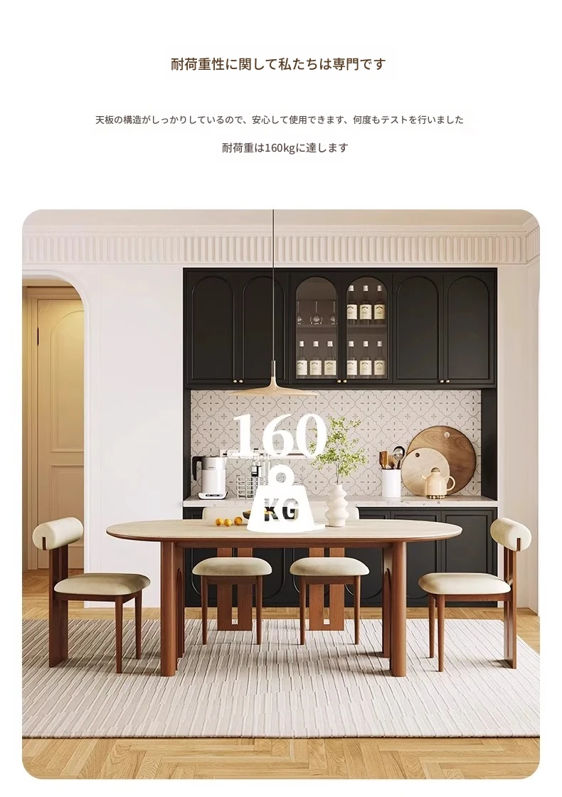 侘寂風の無垢材オーバルダイニングテーブル - モダンでシンプルな設計、ホワイトアッシュ製、家庭にぴったり!食事の時間を特別なひとときに。