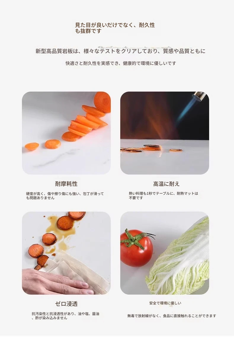 侘寂スタイルの小型折りたたみ式岩板ダイニングテーブル - 丸型と四角型の2WAYデザイン、家でも使えるデザイナーズテーブル!おしゃれで機能的な食卓を手に入れて、心地よい食事のひとときを楽しもう!