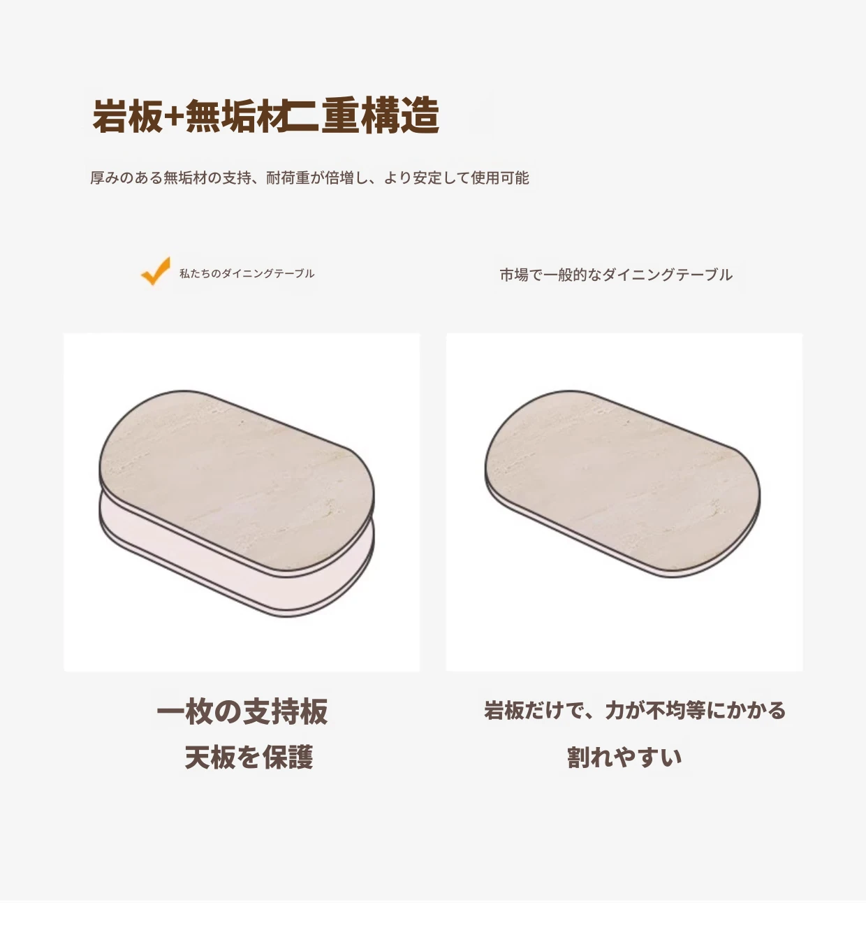新作!高級感溢れる岩板ダイニングテーブル - 小型家庭にぴったりの軽奢モダン簡約デザイン、アートな楕円形 UFOテーブルでおしゃれな食卓を演出!