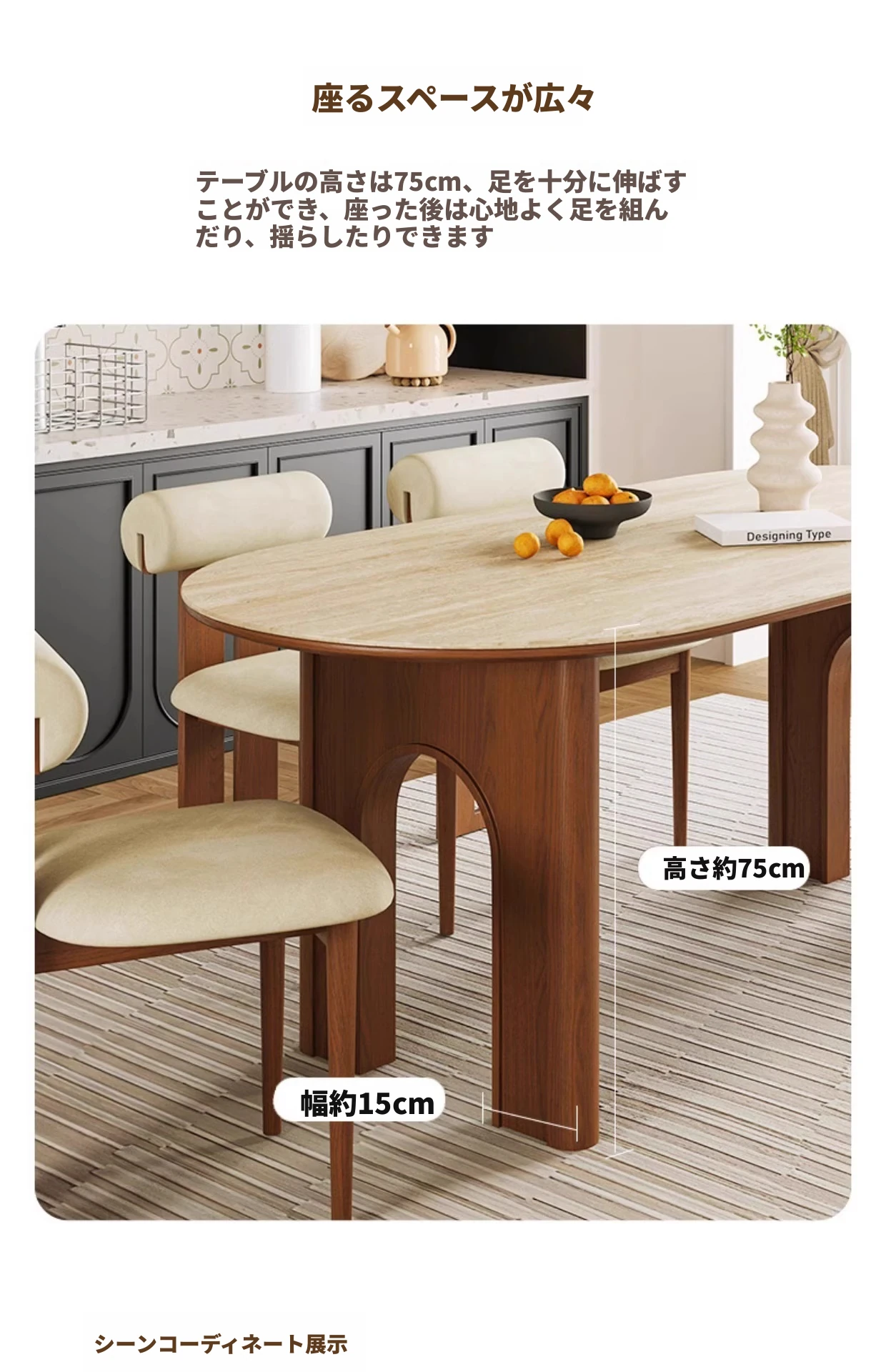 洞石岩板ダイニングテーブル+U字型椅子*6【デザイナーコーディネート】