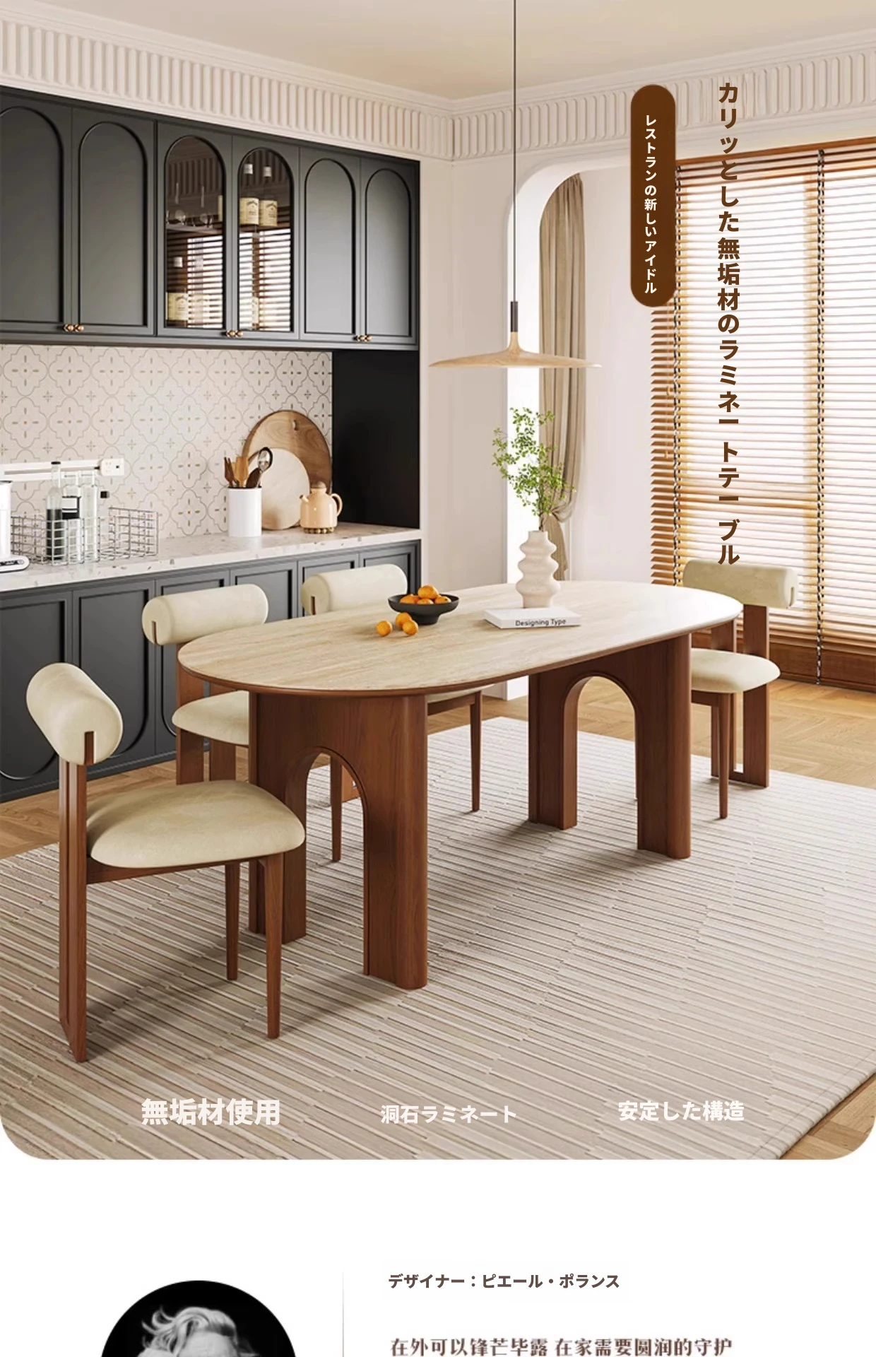 デリフォンの岩板ダイニングテーブル - フレンチスタイルの小型軽奢クリーム色エレガントな楕円形&長方形テーブル、リビングルームにぴったり!小さなお部屋でも使いやすいデザインで、特別な食事の時間を演出します。