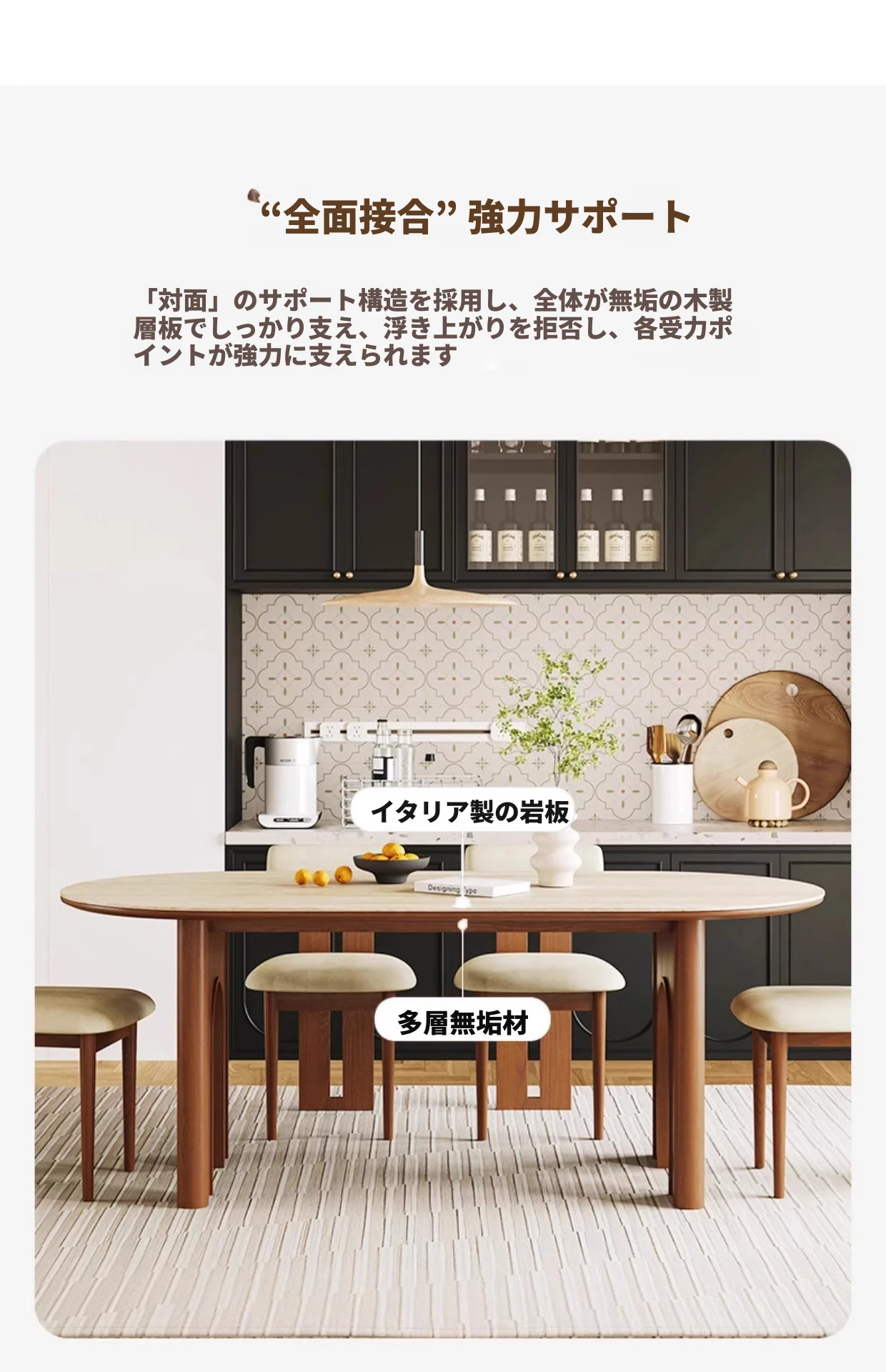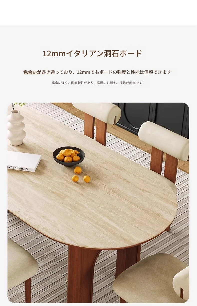 洞石岩板ダイニングテーブル+カバ椅子*6【デザイナーコーディネート】