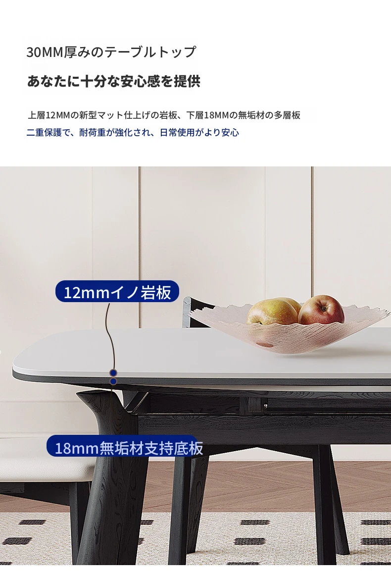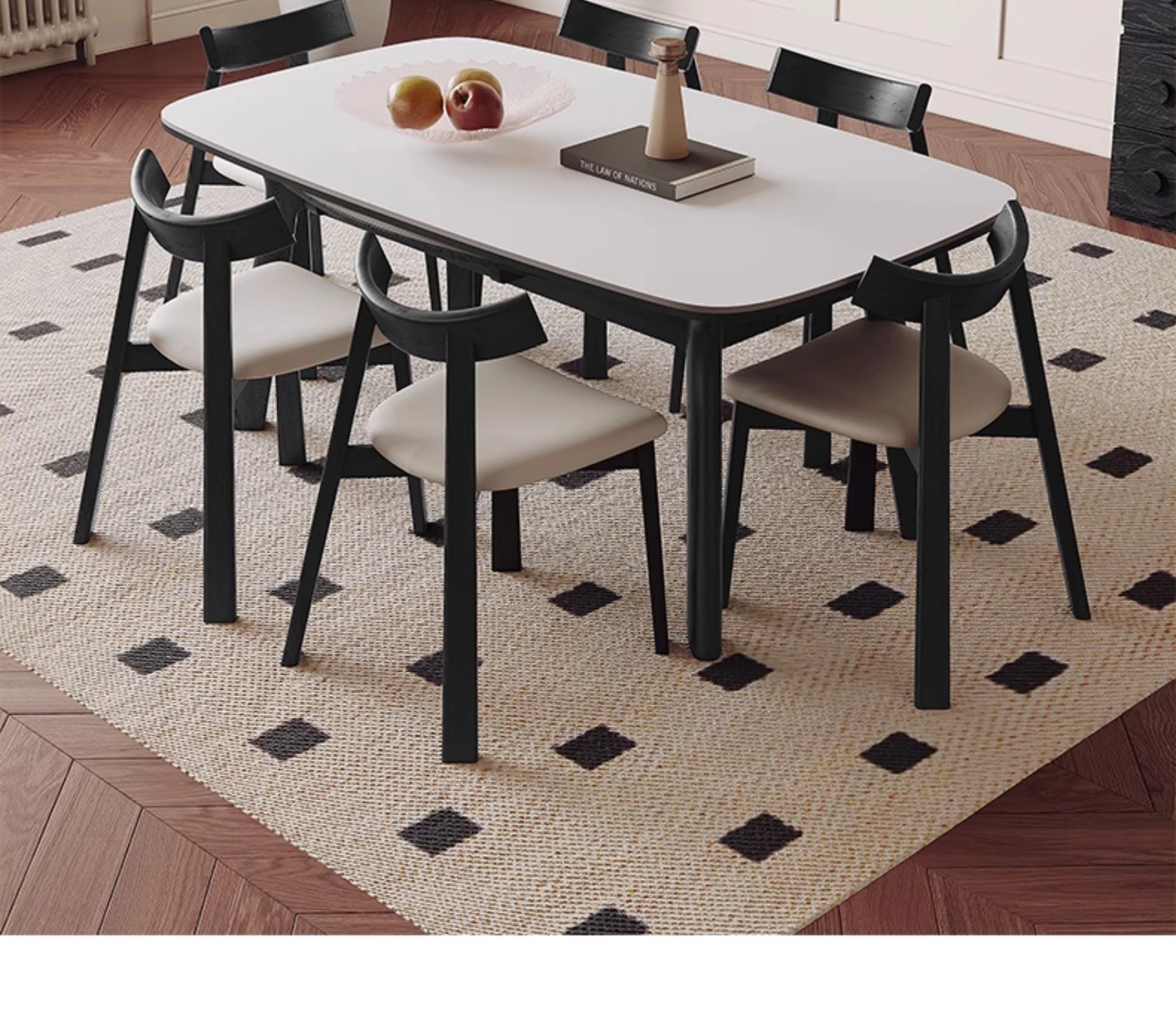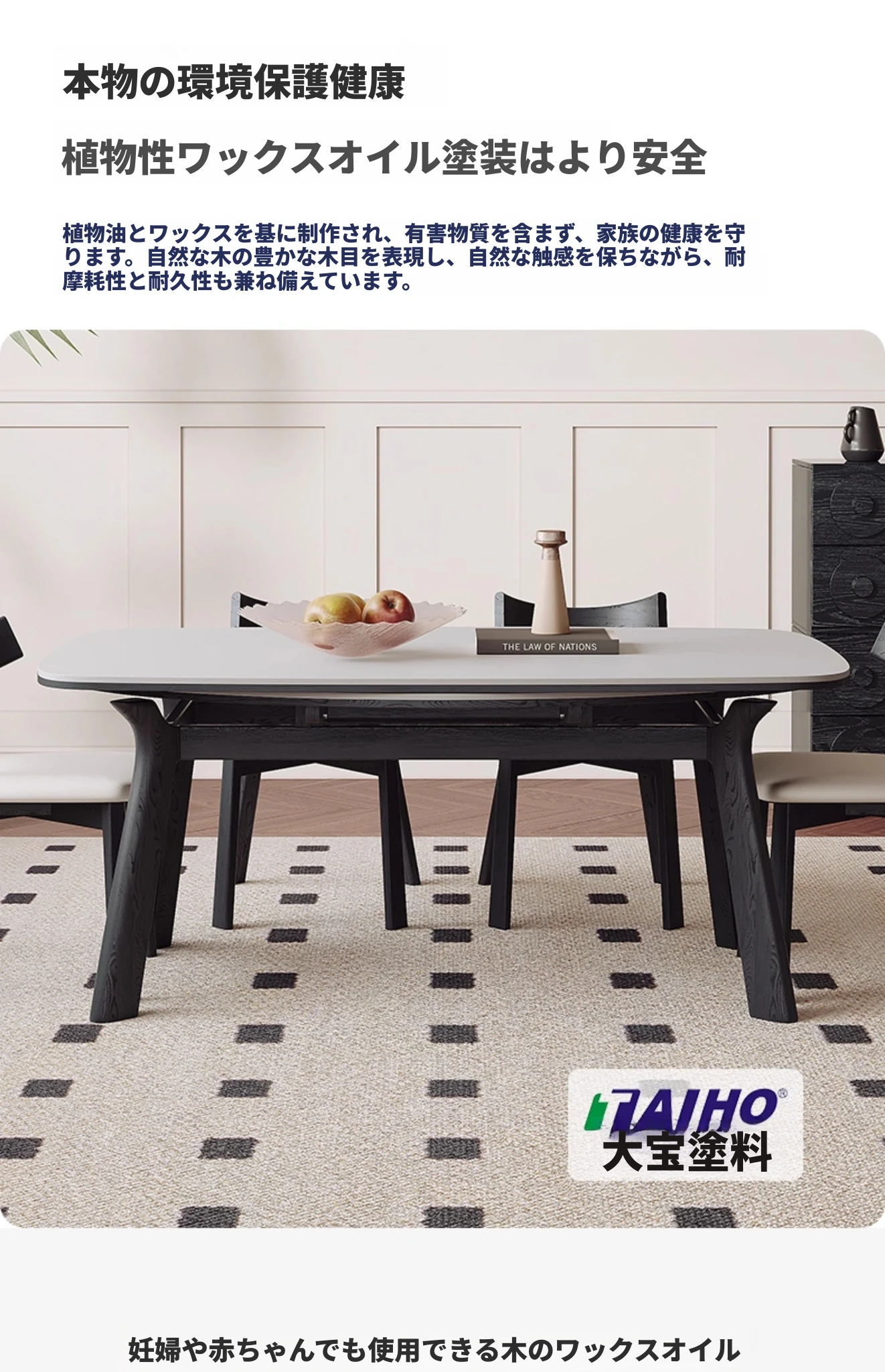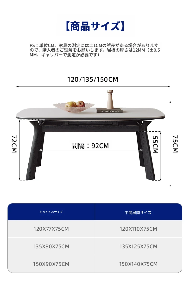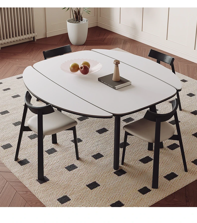 フレンチヴィンテージブラック伸縮岩板天然木ダイニングテーブル - 小型住宅に最適な折りたたみ式、ラグジュアリーな丸型と四角型の2WAYテーブル!エレガントなデザインで、限られたスペースを有効活用!