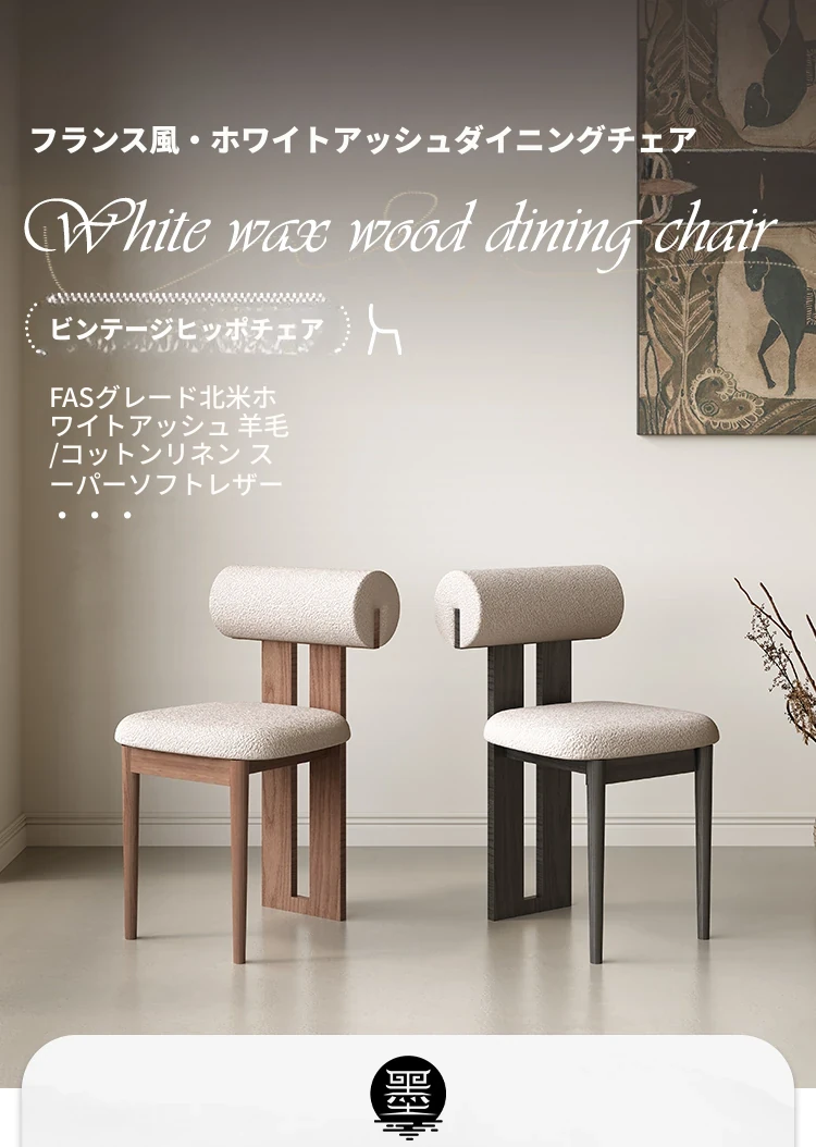 フレンチヴィンテージ風全木製ホワイトアッシュのヒッポチェア|デザイナーチェア|高背も快適なダイニングチェア|おしゃれで機能的な家庭用家具