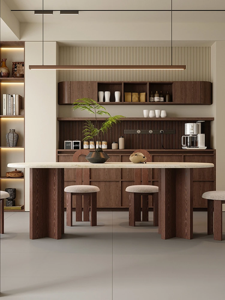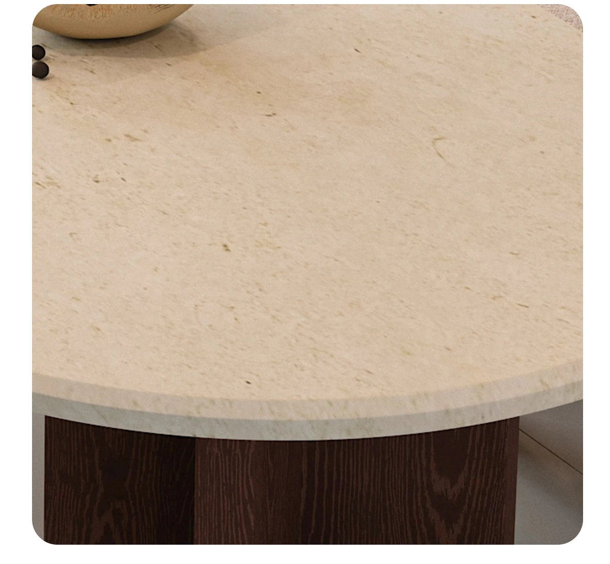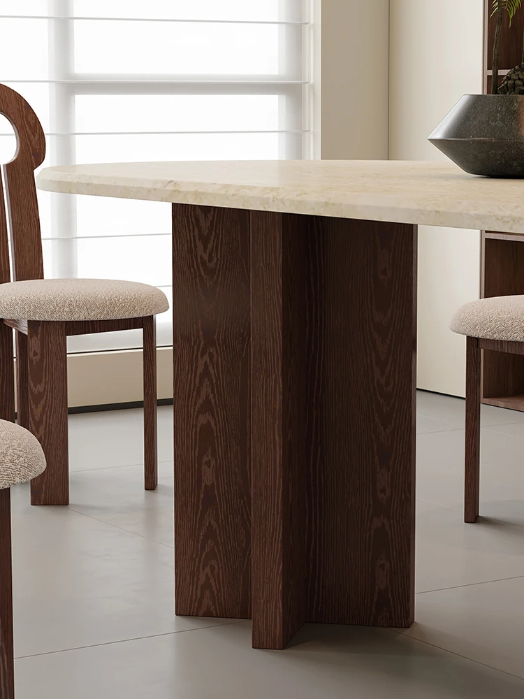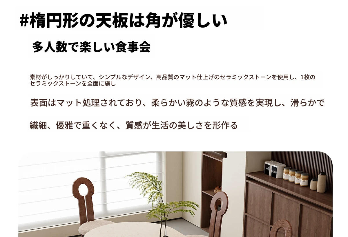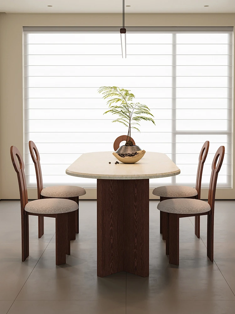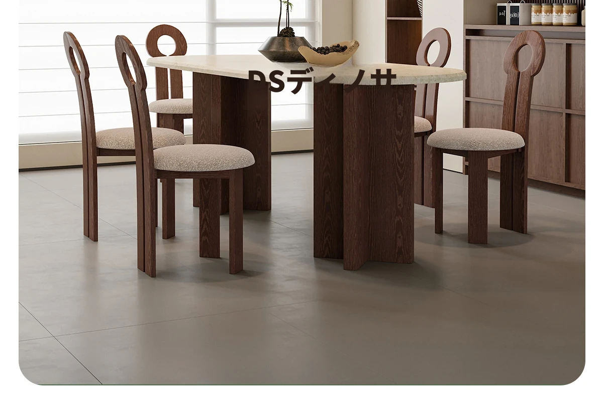 フランス風アンティークスタイルの楕円形ライム天然大理石ダイニングテーブル - 小型家族向けの特選無垢材使用!おしゃれな洞石デザインで、心地よい食卓空間を演出します。