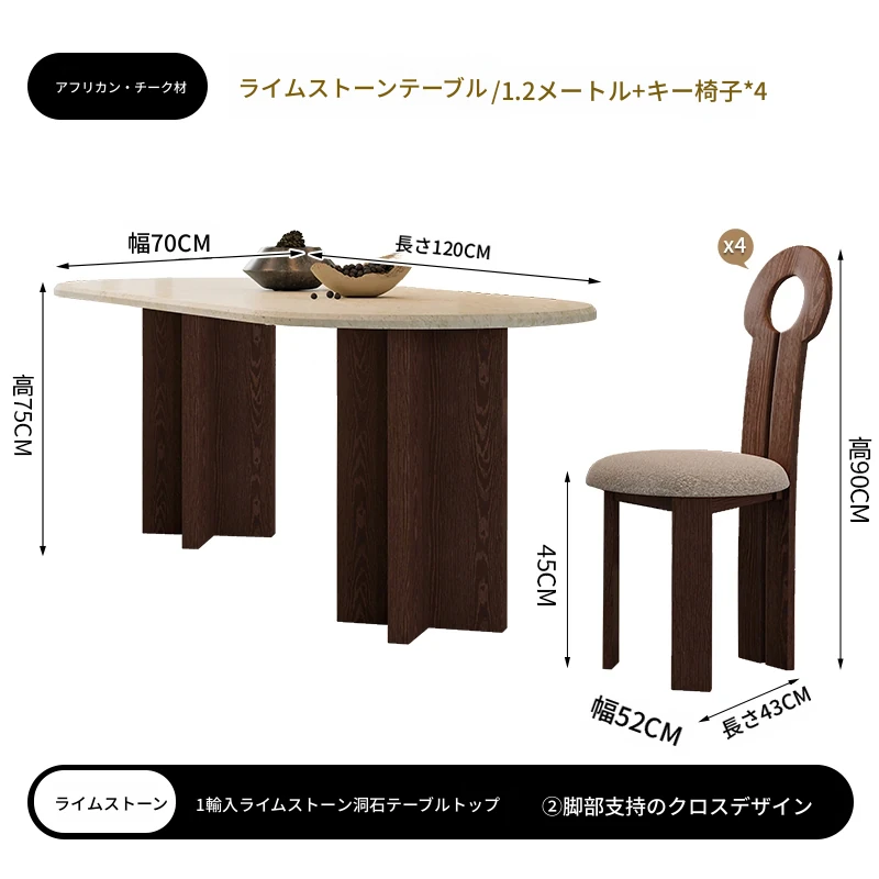 1.2*0.8メートルライムストーンテーブル+4椅子【天然石】