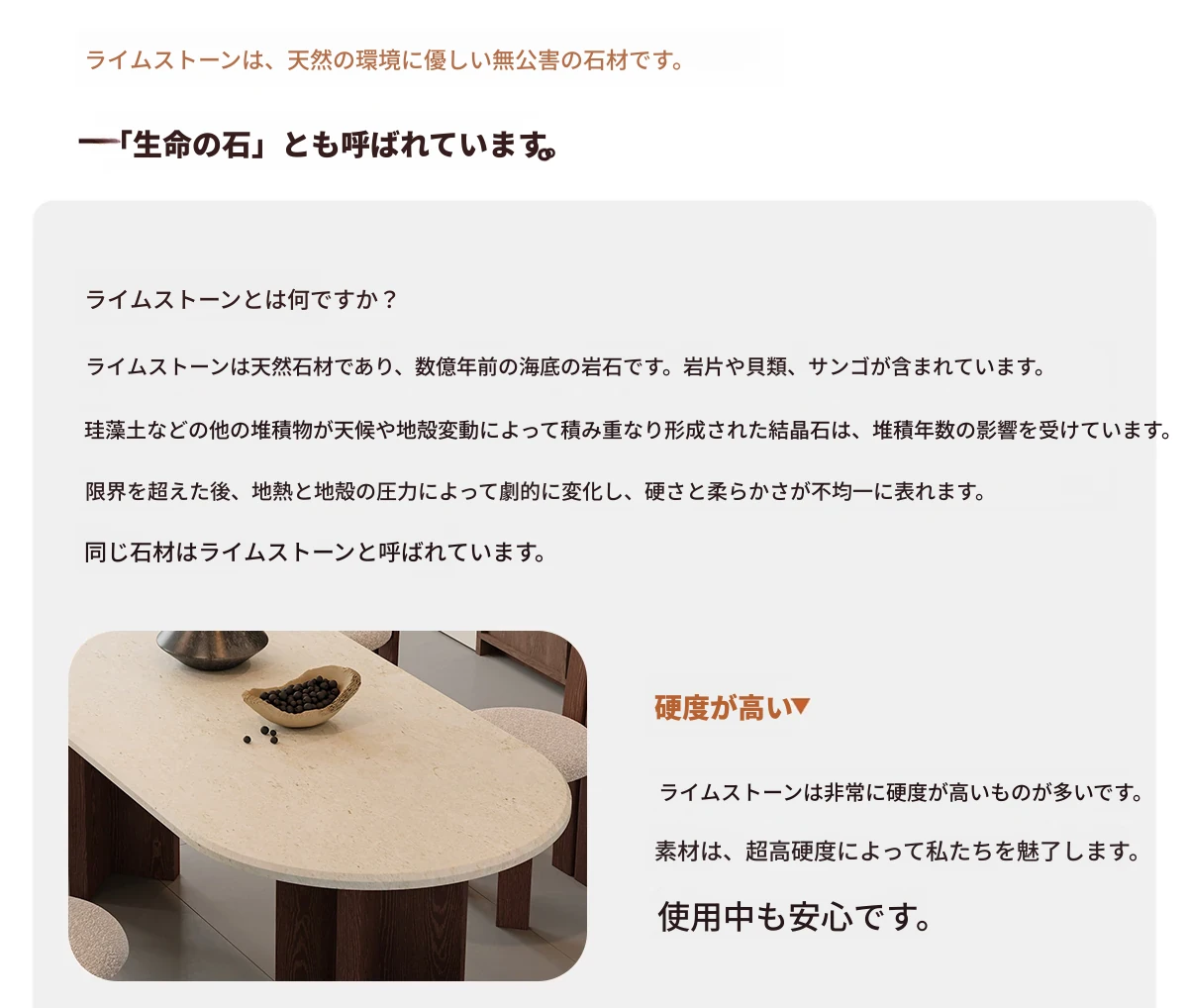 2.2*0.8メートルライムストーンテーブル【天然石】