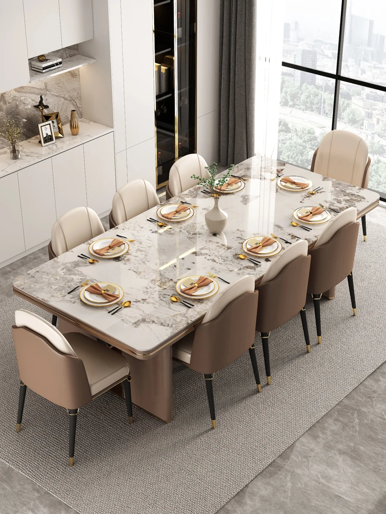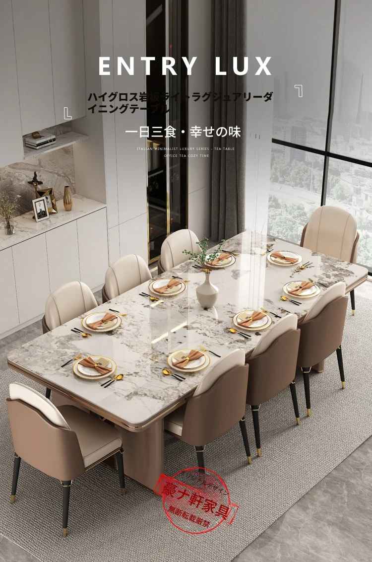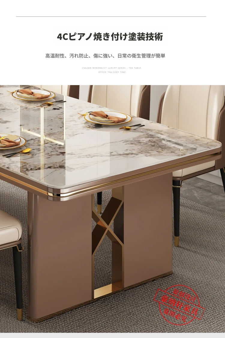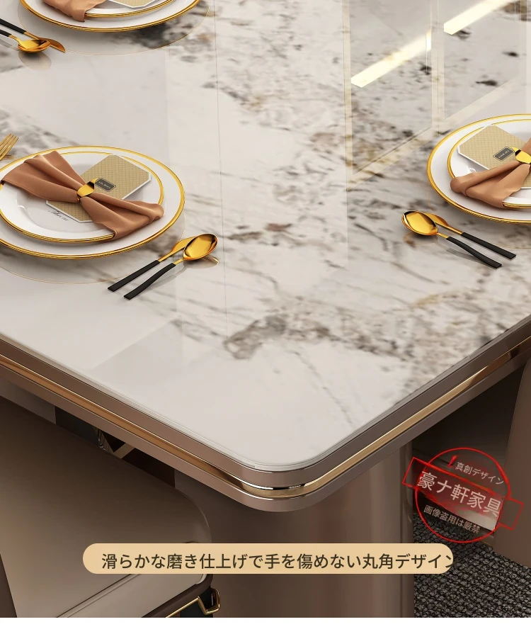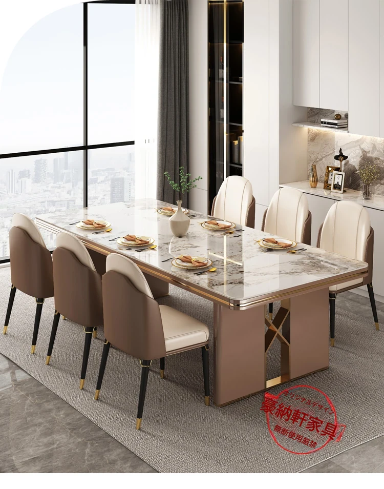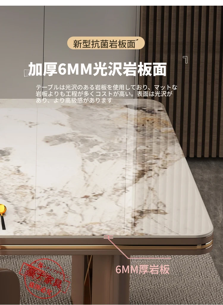 高級感溢れるデザインの岩板ダイニングテーブル - モダンでシンプル、小型住居に最適な長方形の食卓。上質なライフスタイルを演出します。