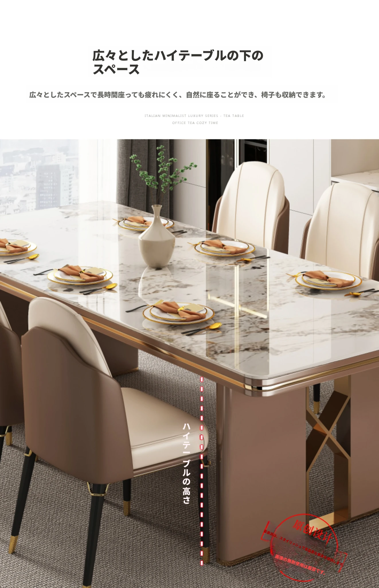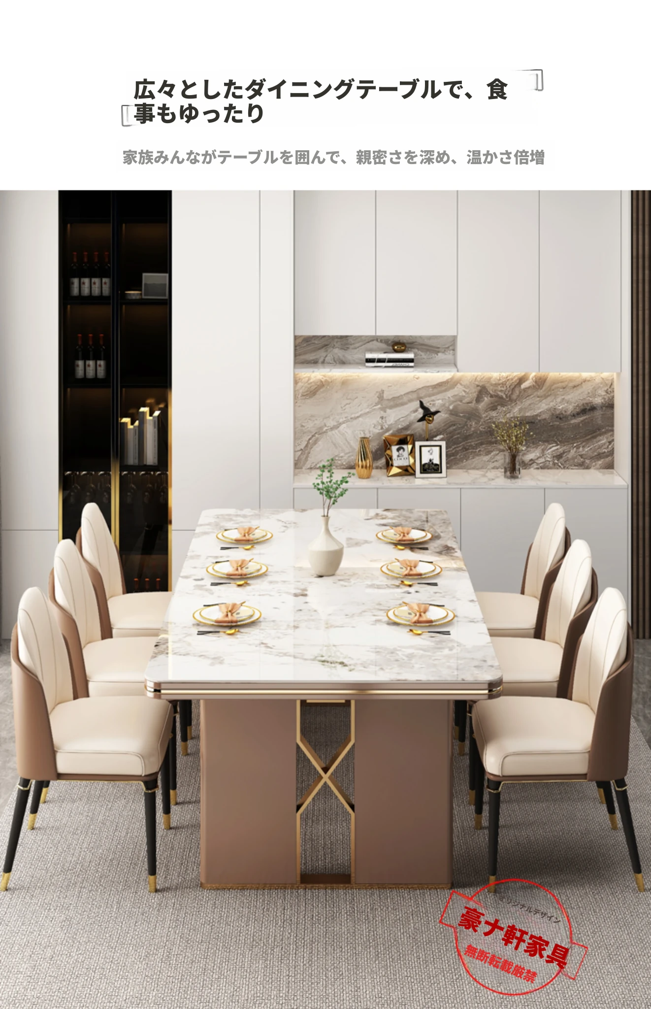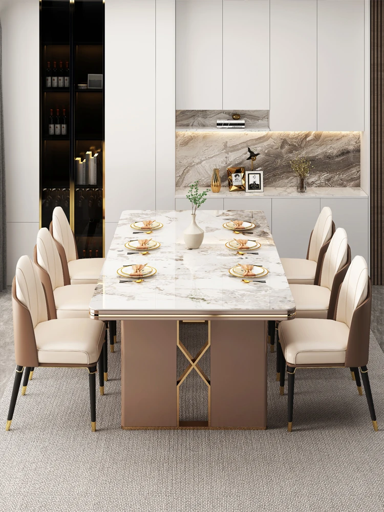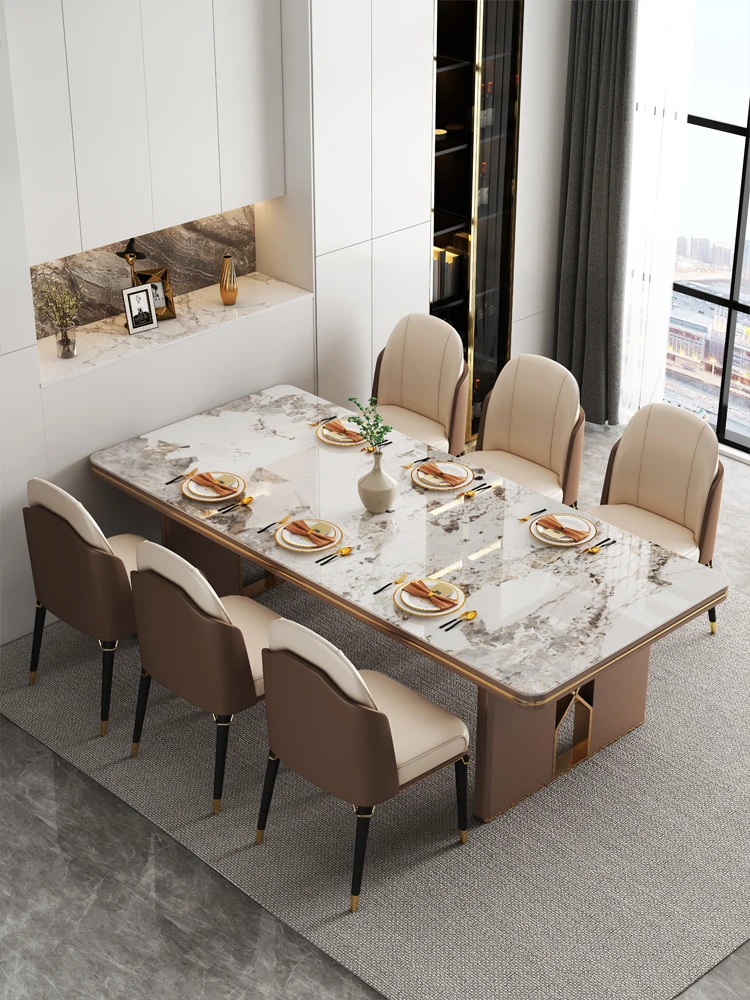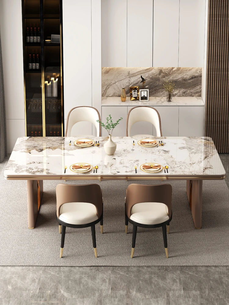 高級感溢れるデザインの岩板ダイニングテーブル - モダンでシンプル、小型住居に最適な長方形の食卓。上質なライフスタイルを演出します。