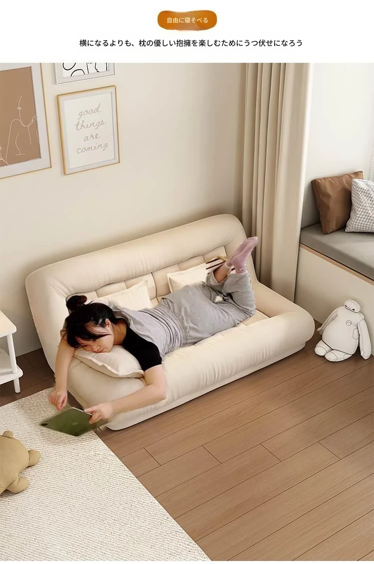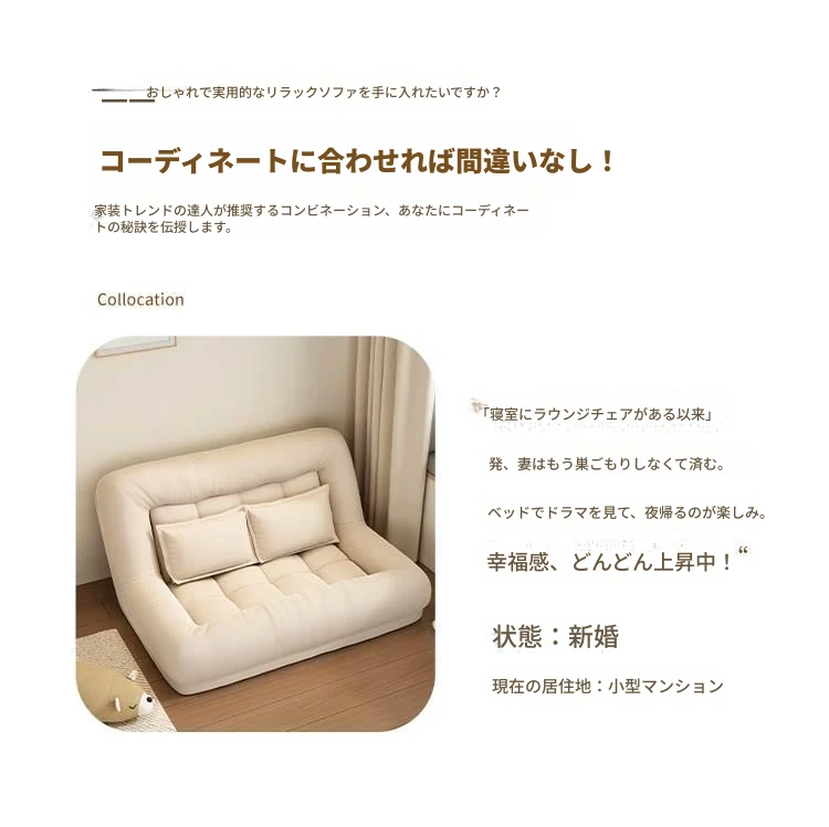 人間用犬小屋スタイルのリラックスソファ - 寝転がっても眠れて、インスタ映えする畳スタイルの折りたたみバルコニー用一人掛けソファ!快適さとおしゃれを兼ね備えた、あなたの理想のリラックス空間を実現します!