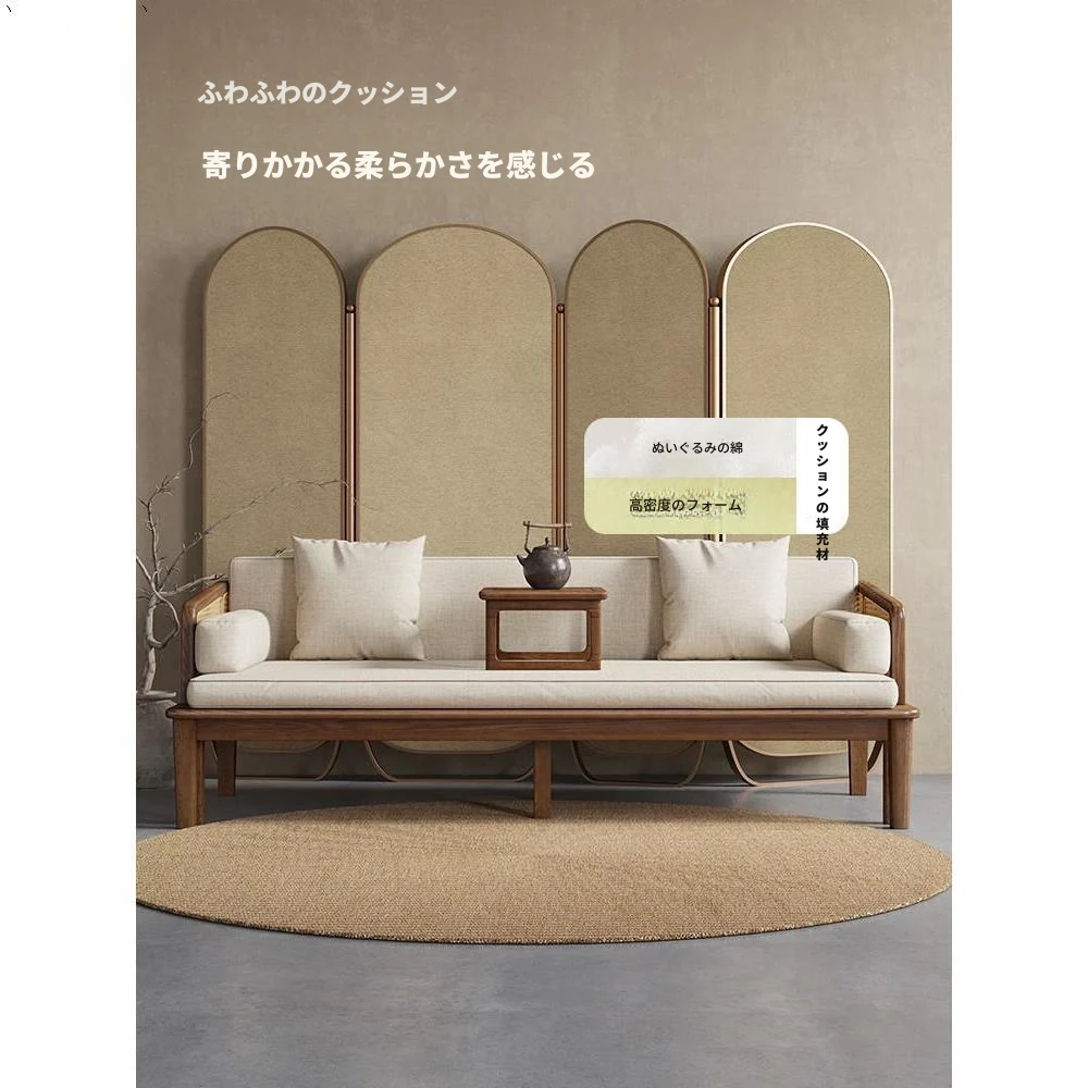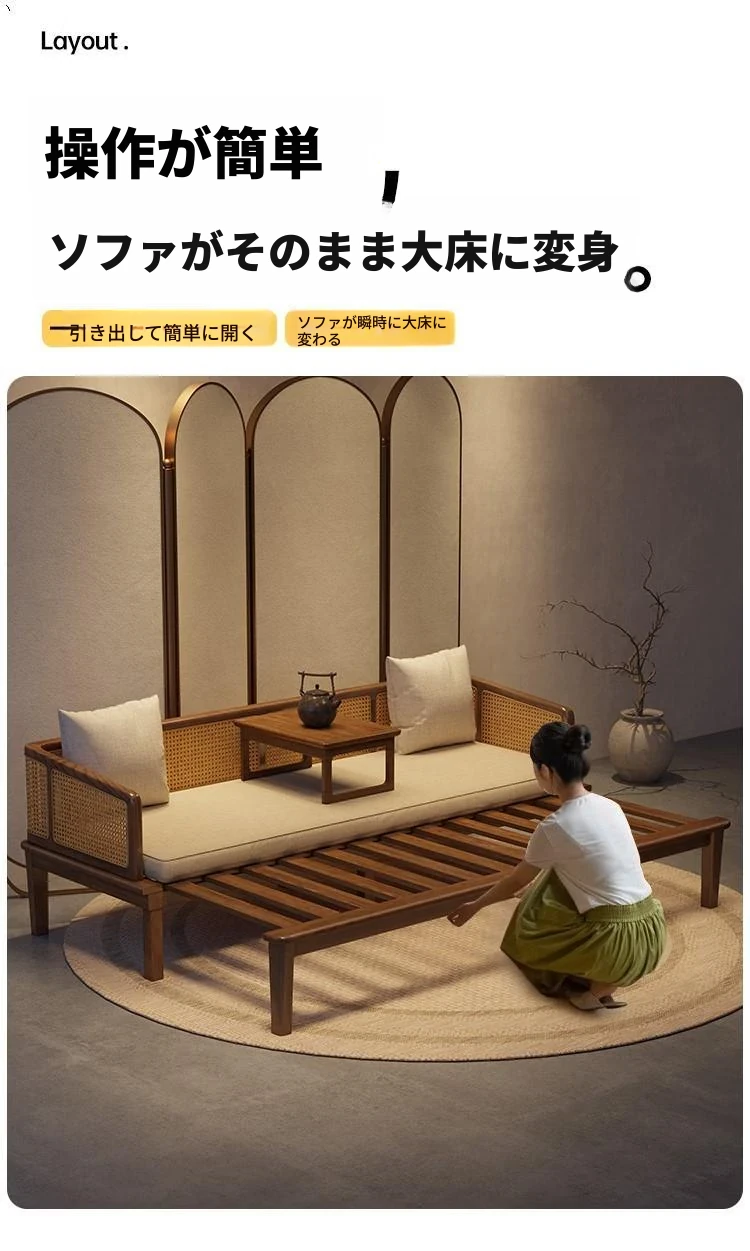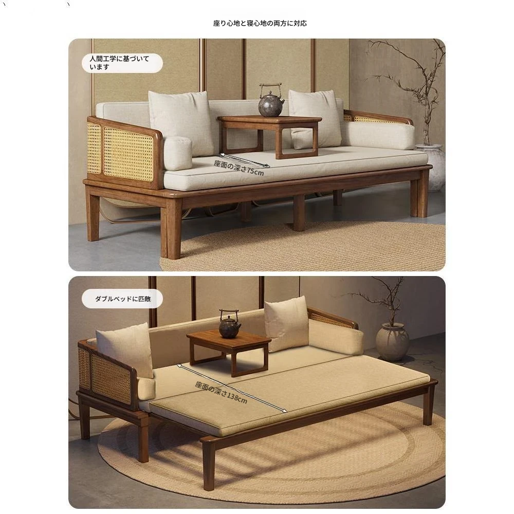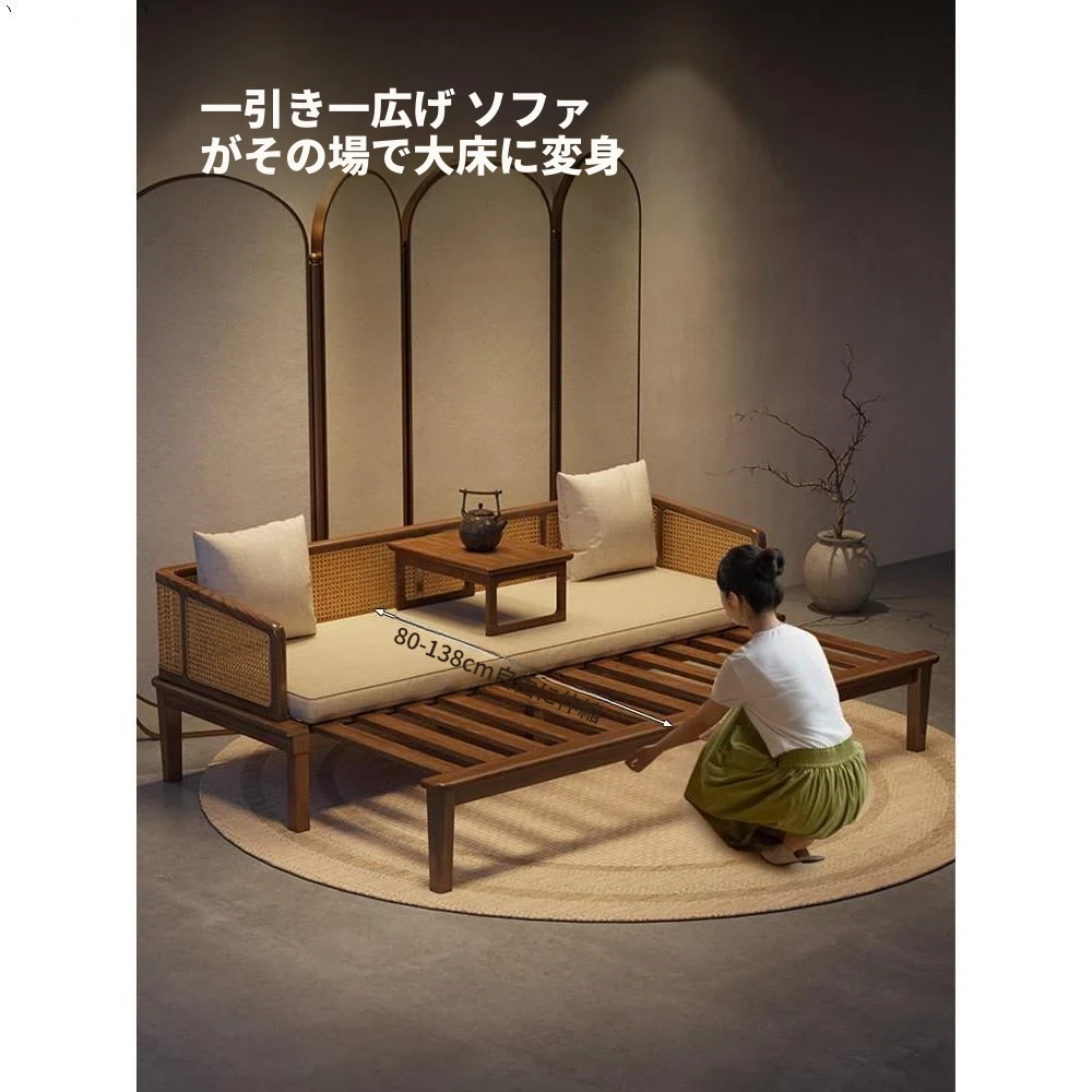 2025年新作!和風実木ソファベッド、折りたたみ&伸縮可能な2WAYデザイン。中古客厅に最適なコットン&リネン製の羅漢ベッド、新しい中式スタイルで居心地の良さを提供します。あなたのリビングをおしゃれにアップグレード!