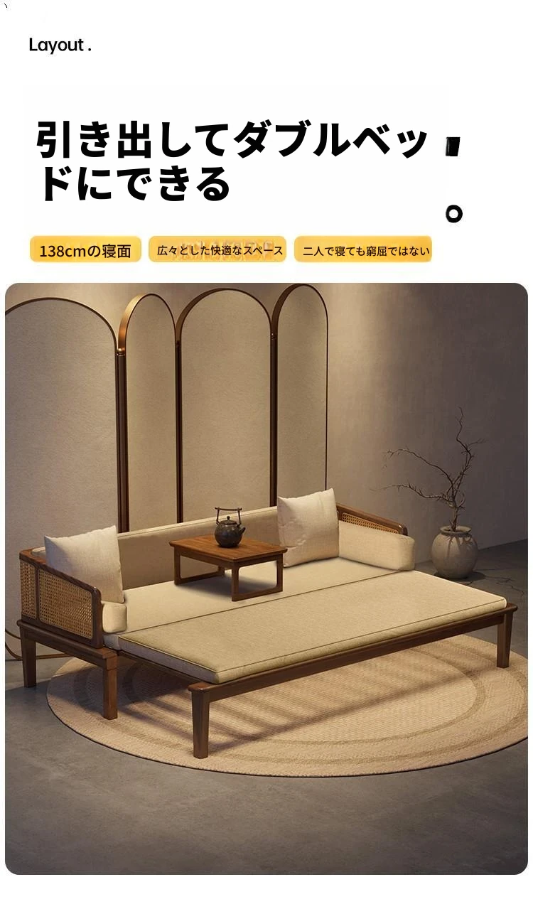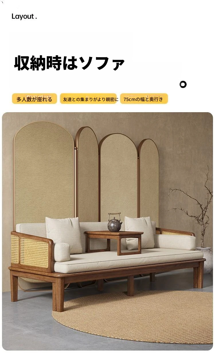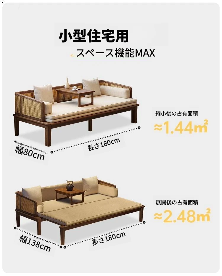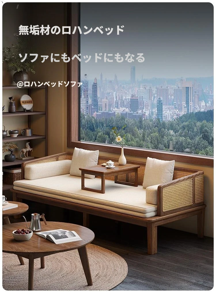 2025年新作!和風実木ソファベッド、折りたたみ&伸縮可能な2WAYデザイン。中古客厅に最適なコットン&リネン製の羅漢ベッド、新しい中式スタイルで居心地の良さを提供します。あなたのリビングをおしゃれにアップグレード!