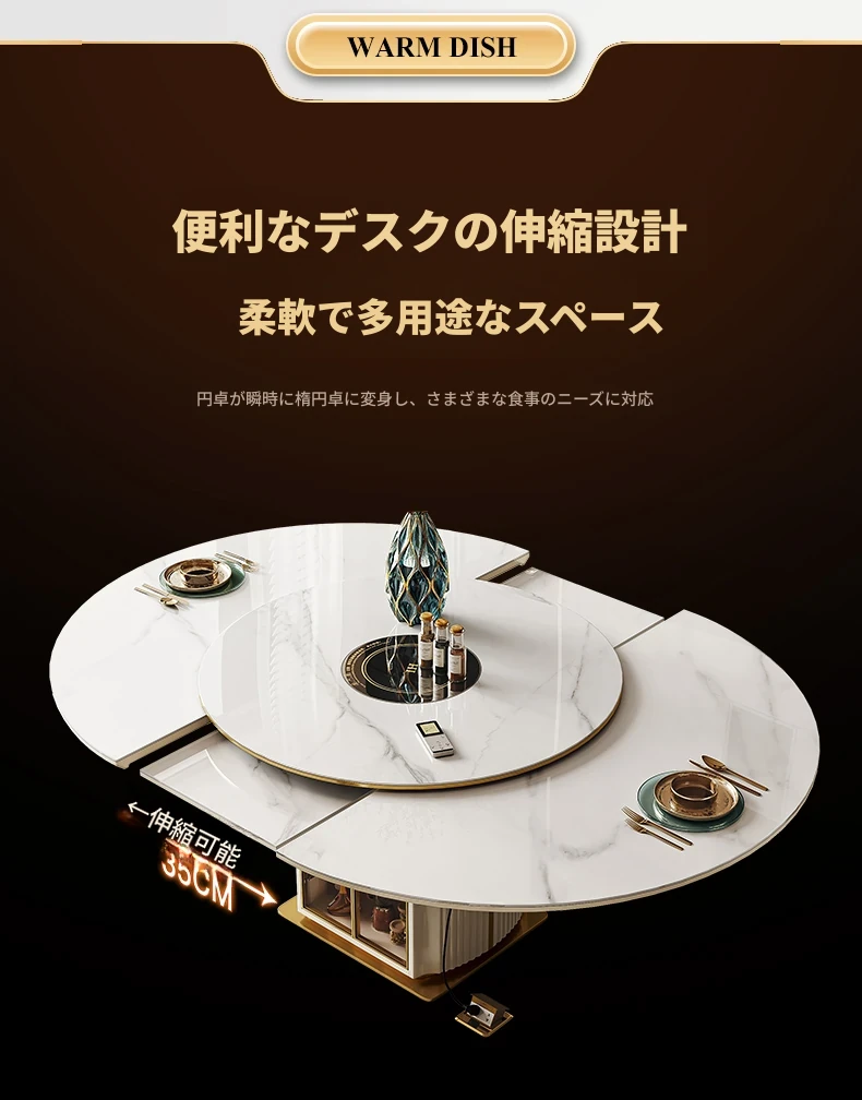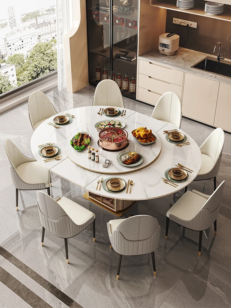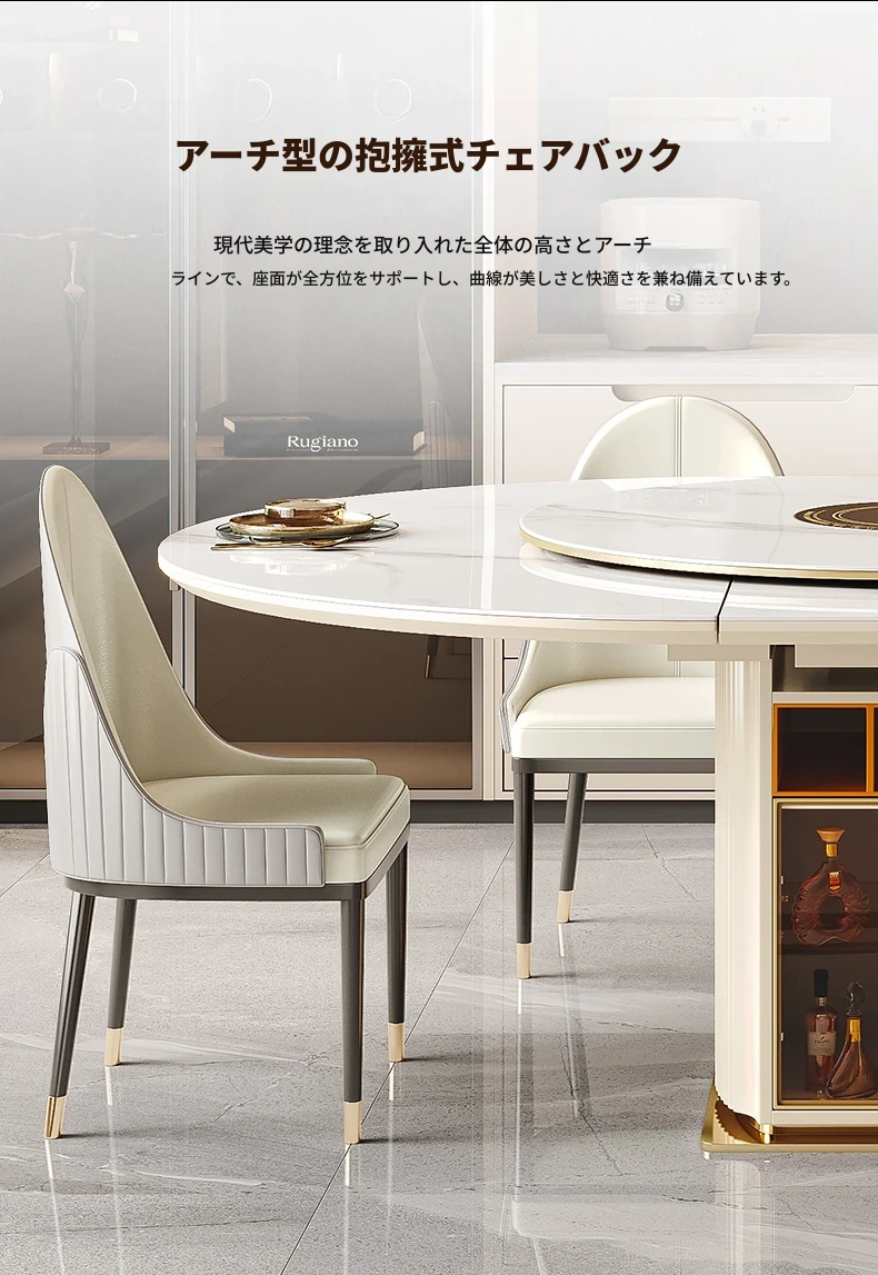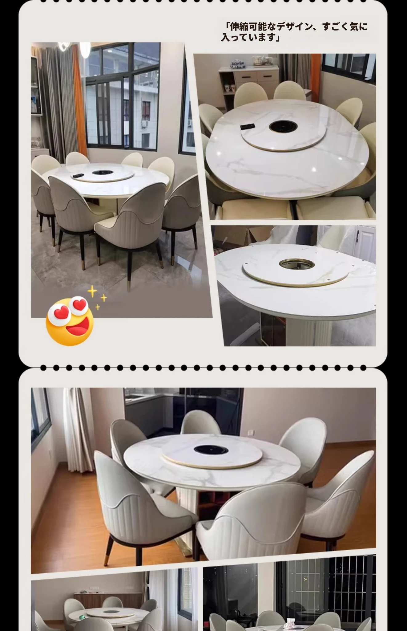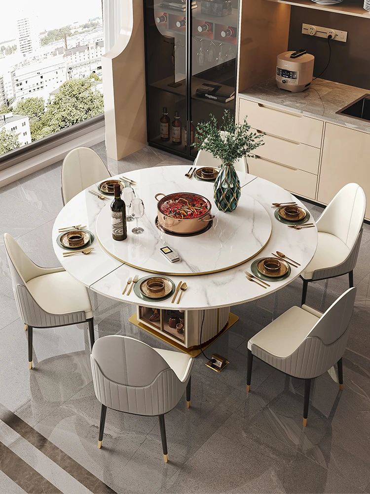 ジェグソンのラグジュアリー光沢岩板伸縮式ダイニングテーブル - 多機能電磁鍋付きモダンな円形食卓で、家族や友人との特別なひとときを演出します!