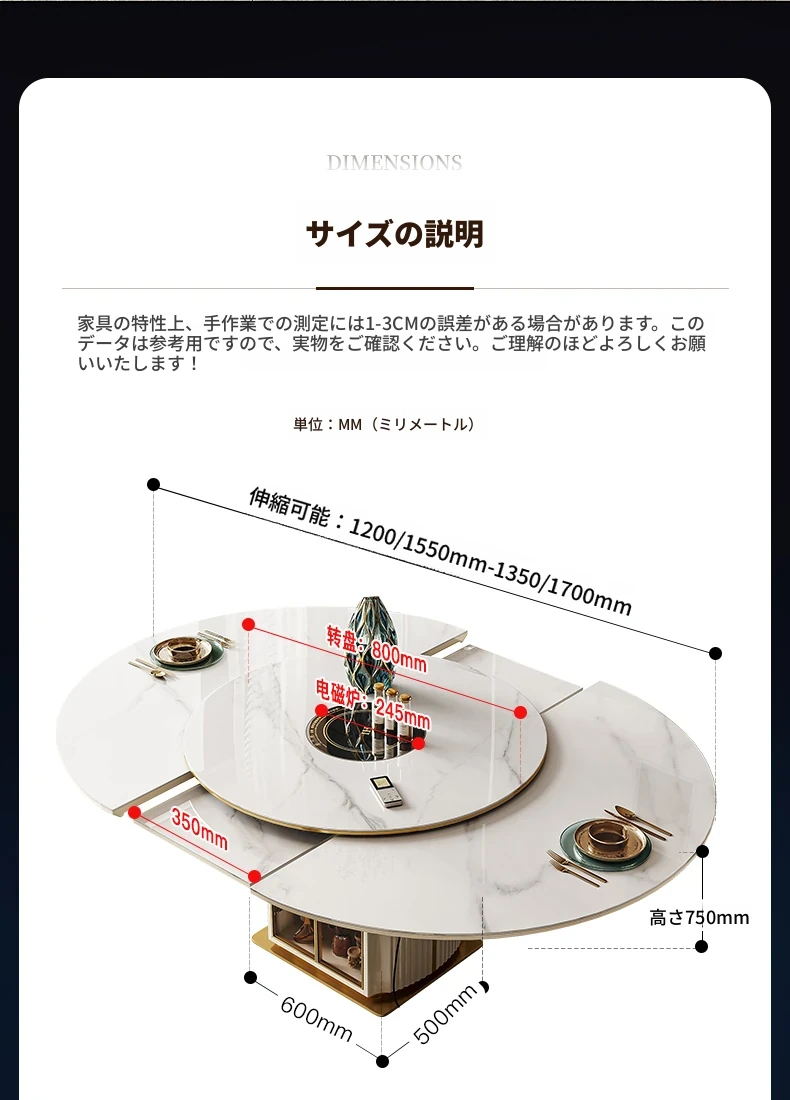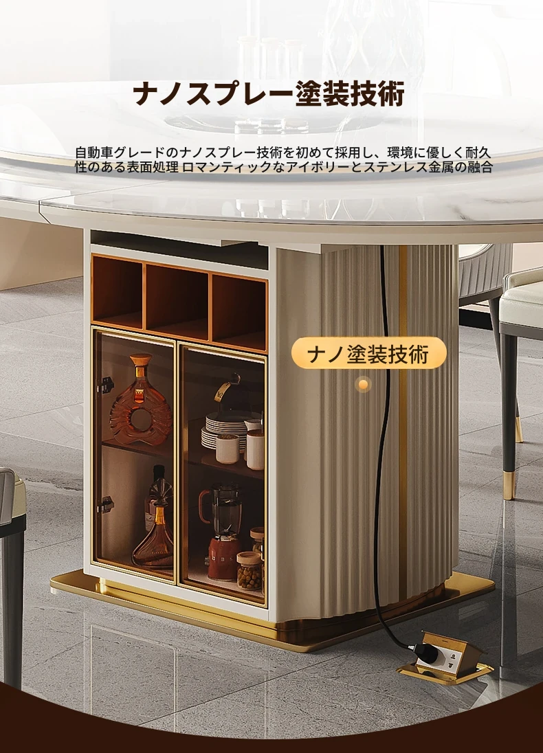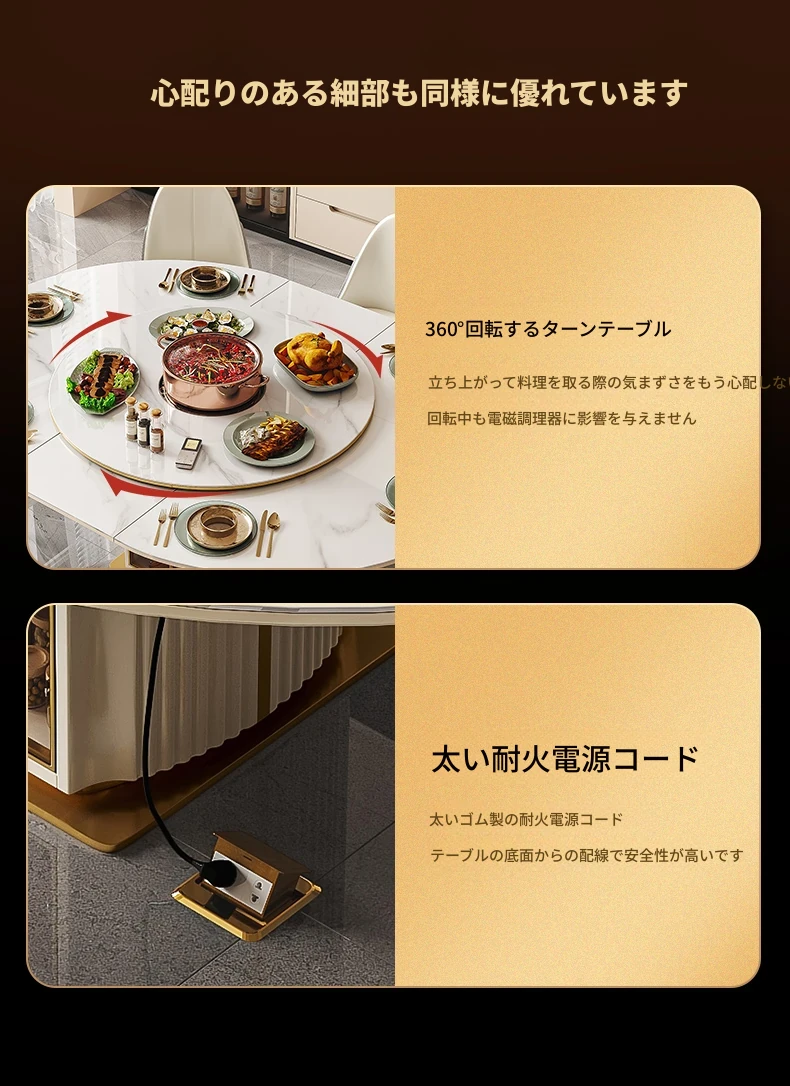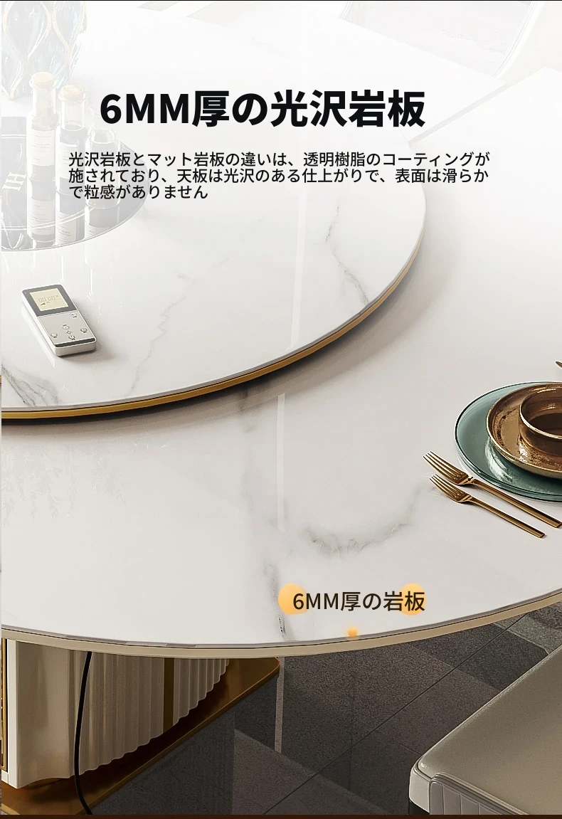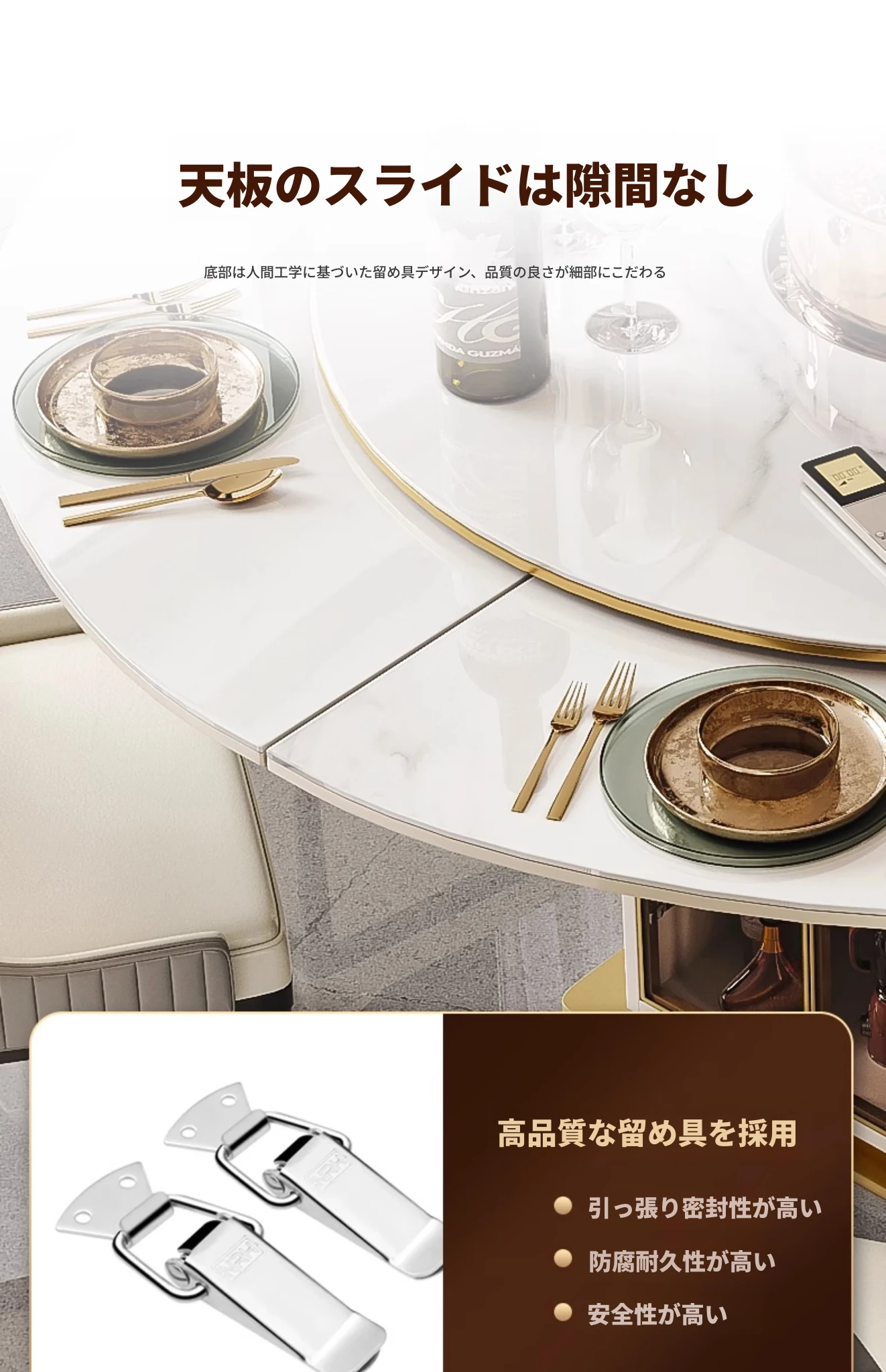 ジェグソンのラグジュアリー光沢岩板伸縮式ダイニングテーブル - 多機能電磁鍋付きモダンな円形食卓で、家族や友人との特別なひとときを演出します!