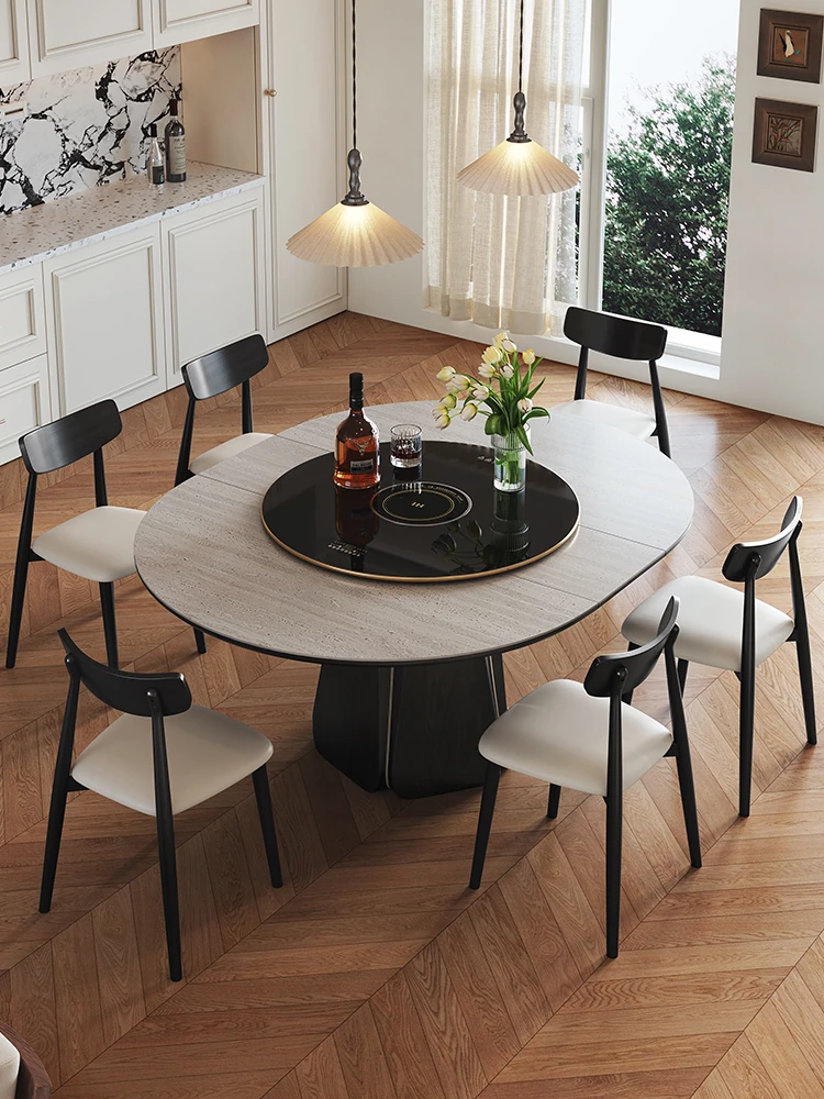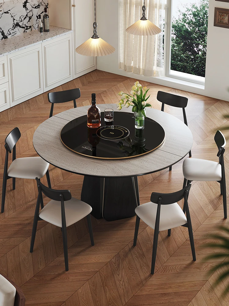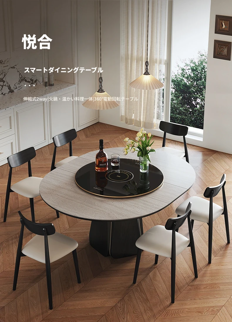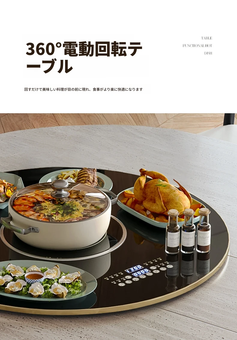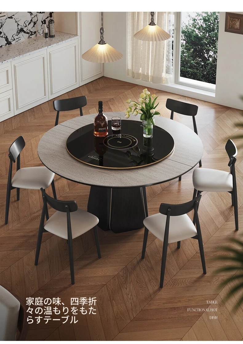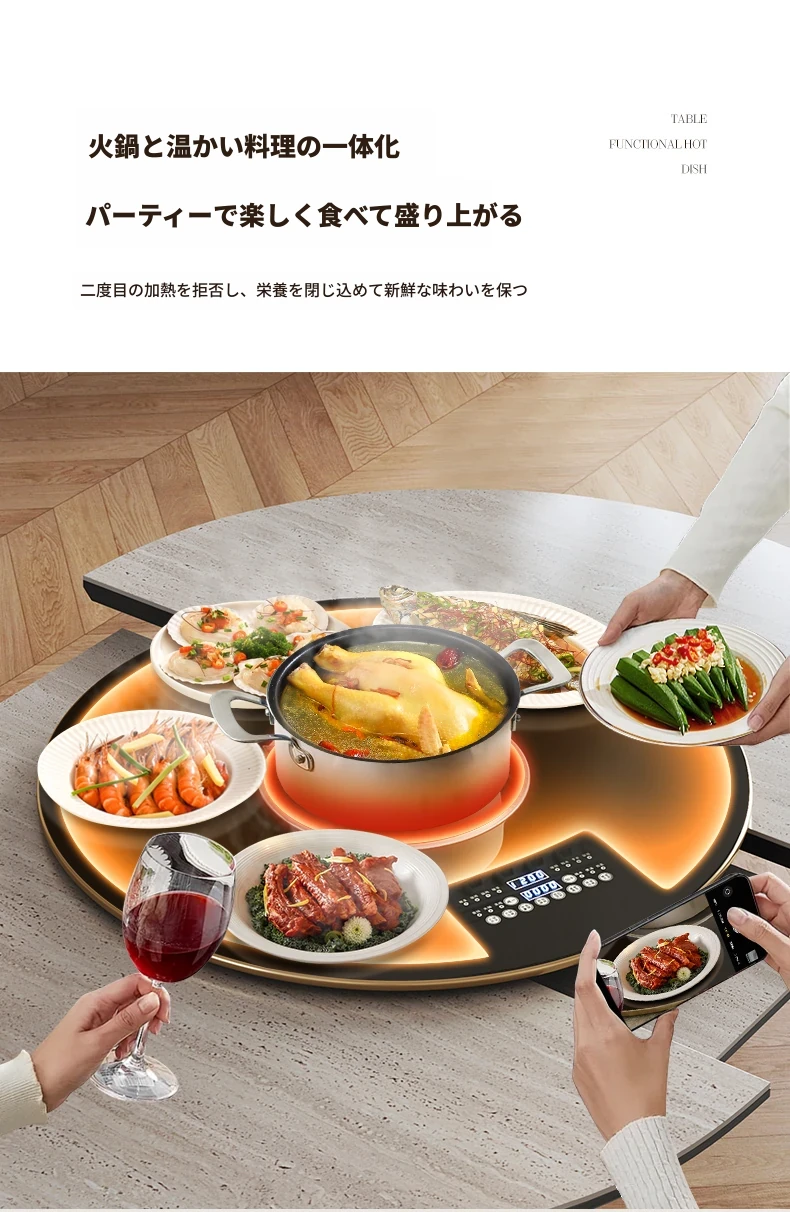 ジャクソン フレンチレトロ ストーンテーブル 可変式 円形 家庭用 電磁調理器付き 保温機能 多機能 天然木製 ダイニングテーブル