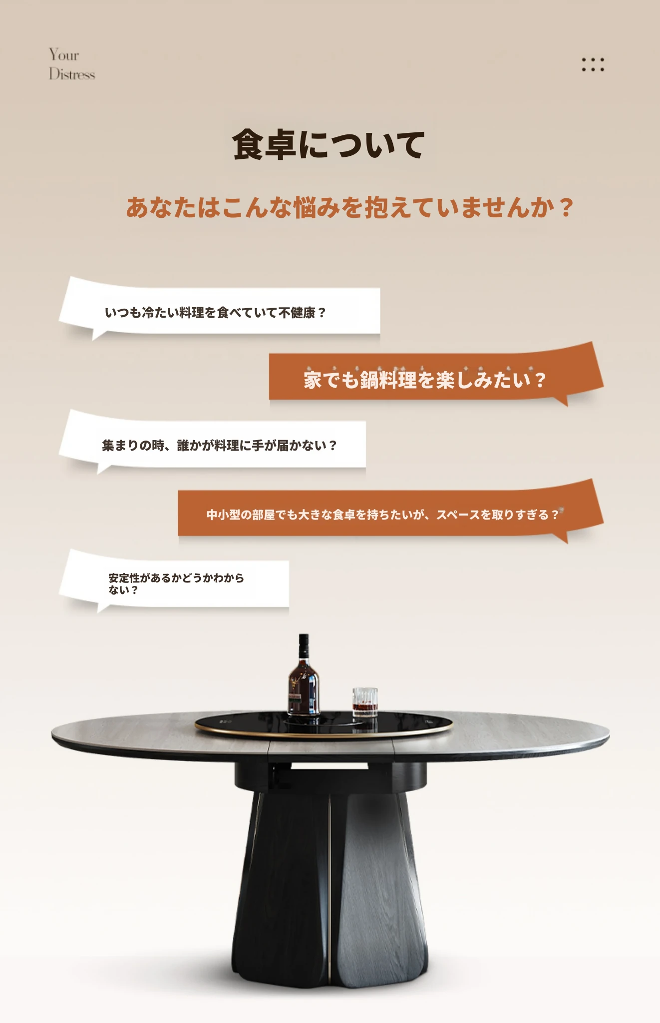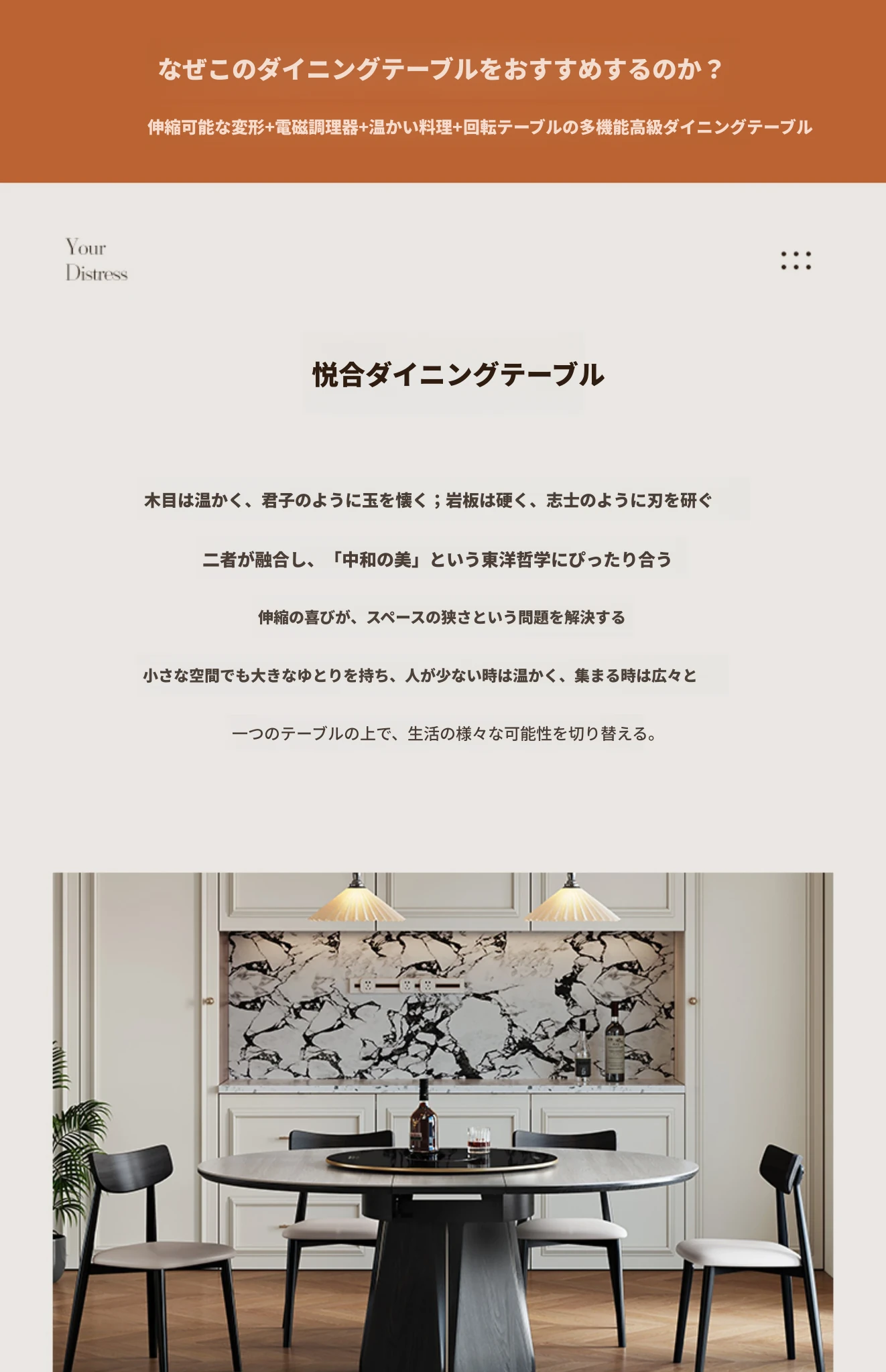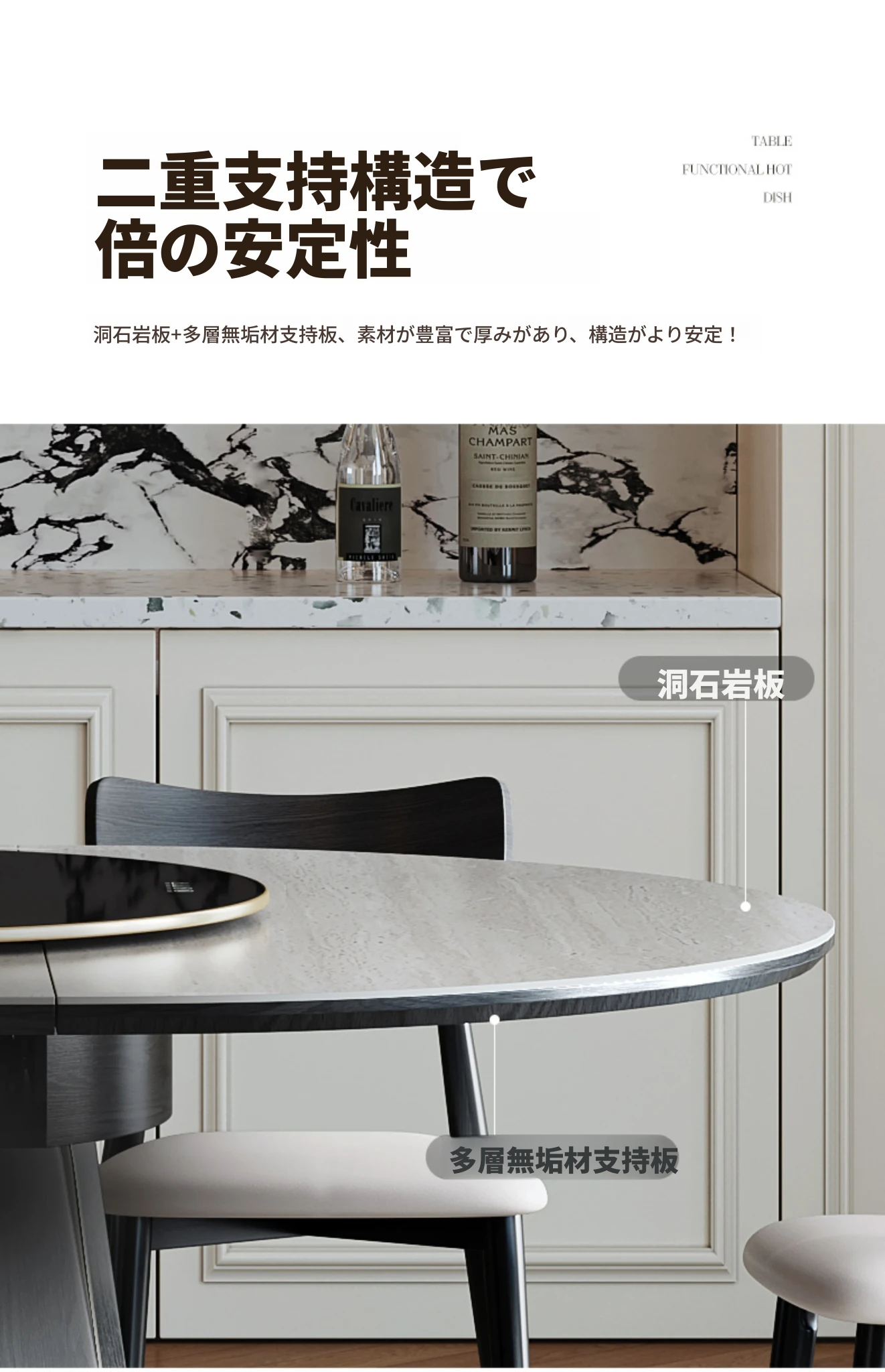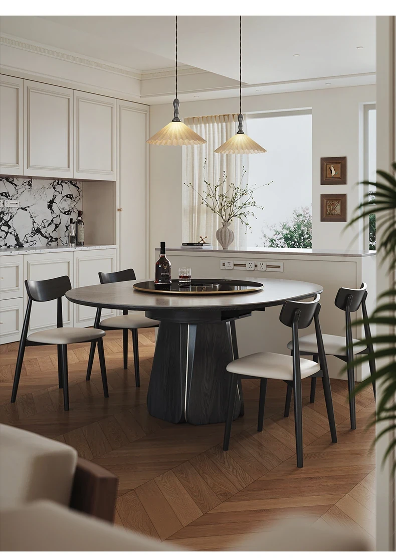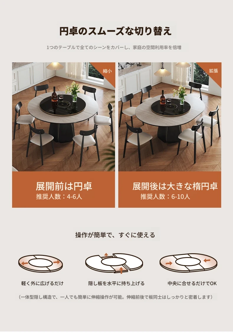 ジャクソン フレンチレトロ ストーンテーブル 可変式 円形 家庭用 電磁調理器付き 保温機能 多機能 天然木製 ダイニングテーブル