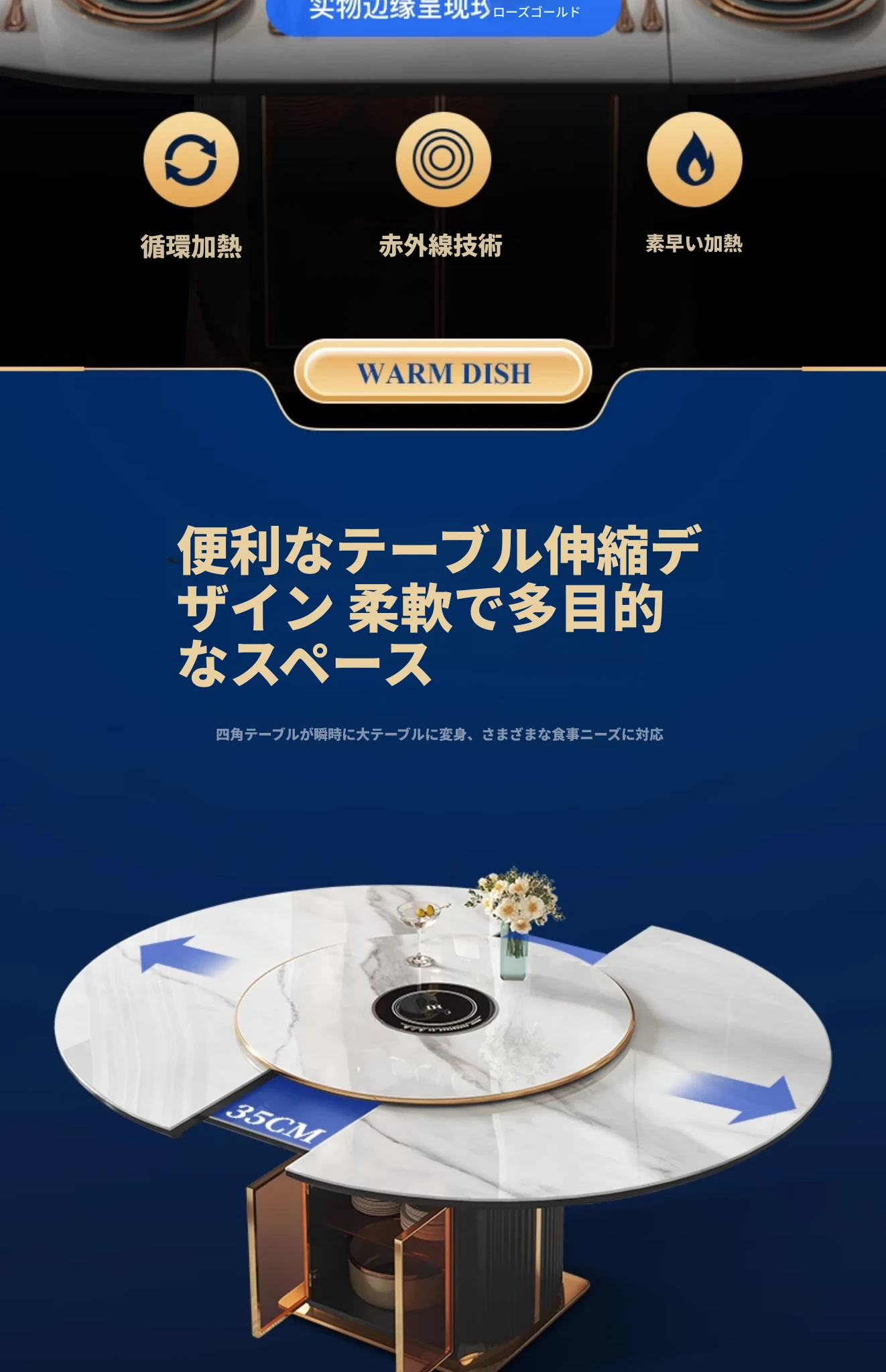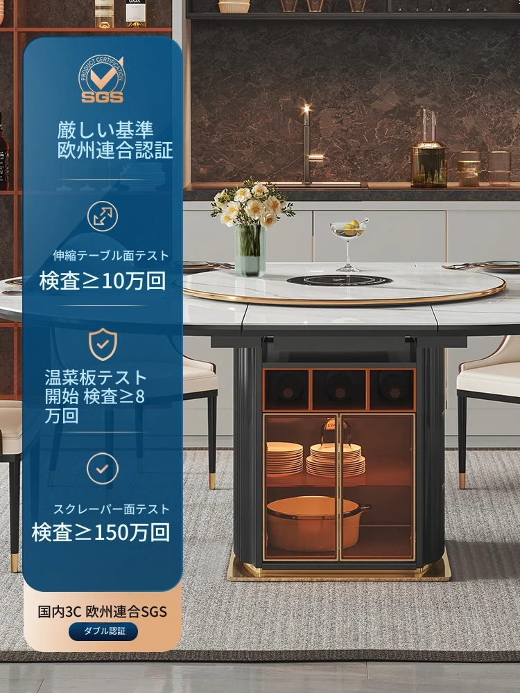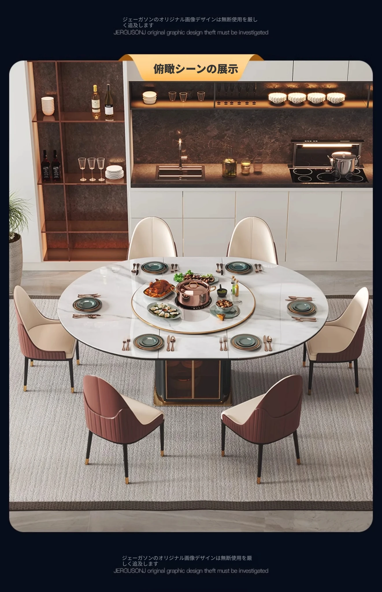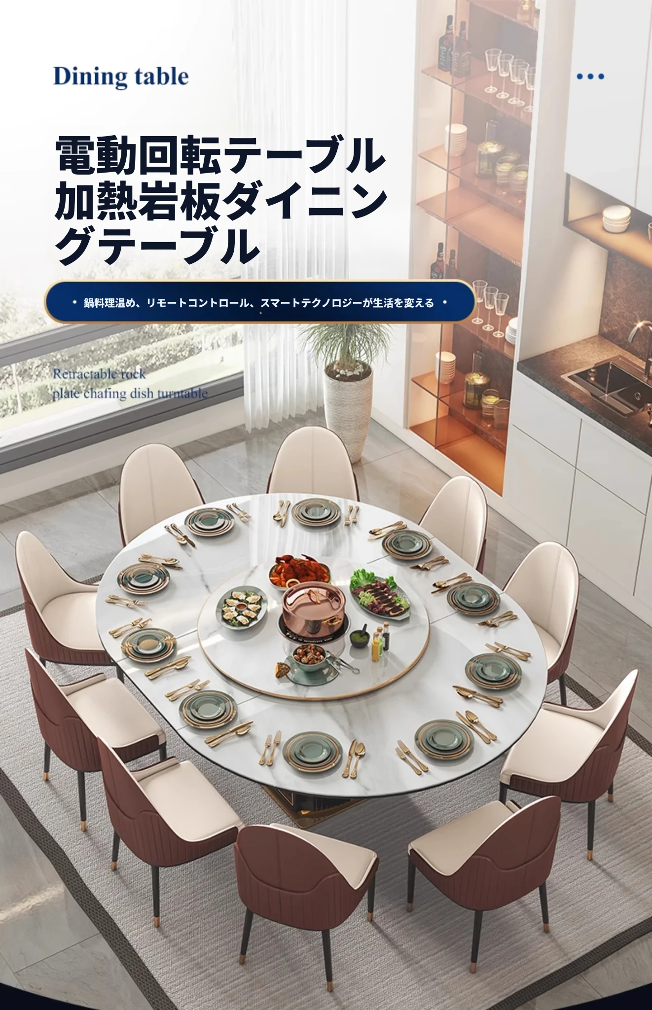 ジェグソン 軽奢華 暖かい菜板 スレート製 ダイニングテーブル 多機能電磁炉付き 鍋料理も楽しめる モダンシンプル 伸縮式テーブル