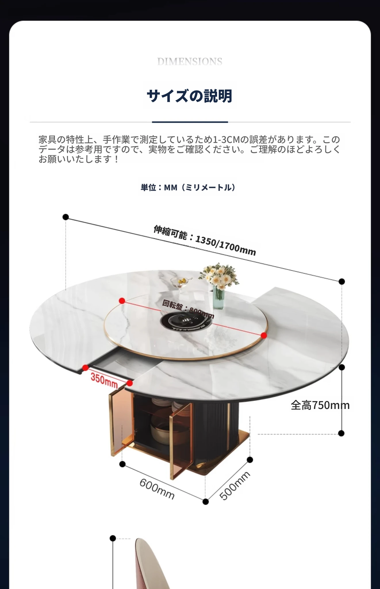 1.35/1.7メートルのダイニングテーブル-【アップグレードされた岩板火鍋暖菜回転盤】