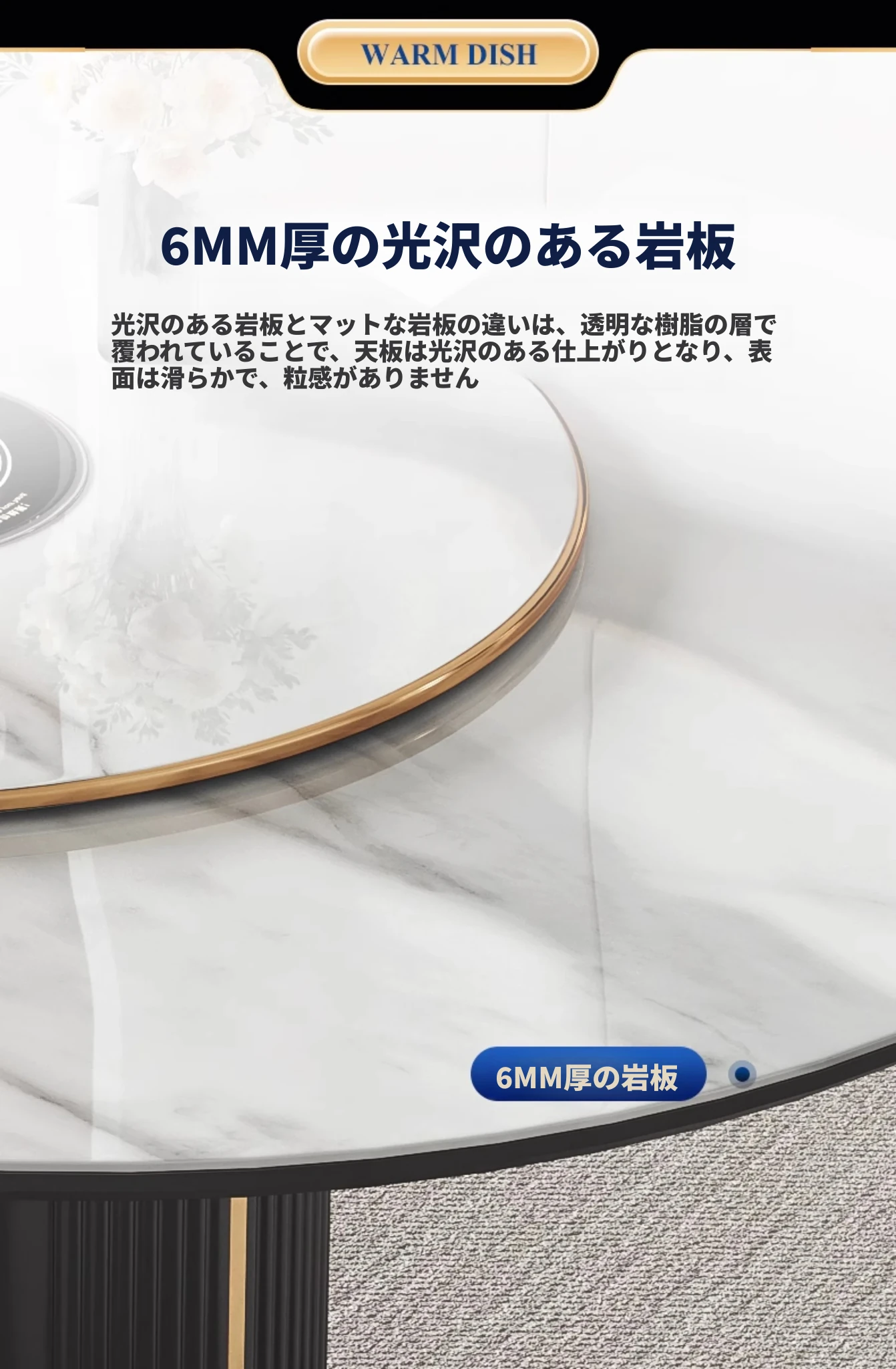 1.2/1.55メートルのダイニングテーブル-【アップグレードされた岩板暖菜回転盤】+6椅子