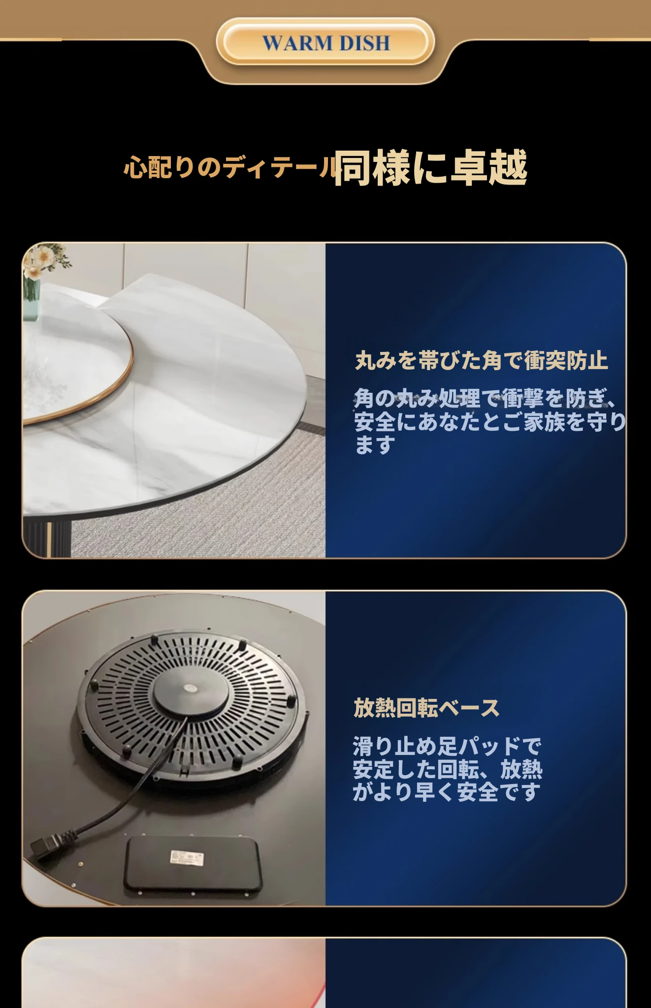 1.35/1.7メートルのダイニングテーブル-【アップグレードされた岩板暖菜回転盤】+4椅子