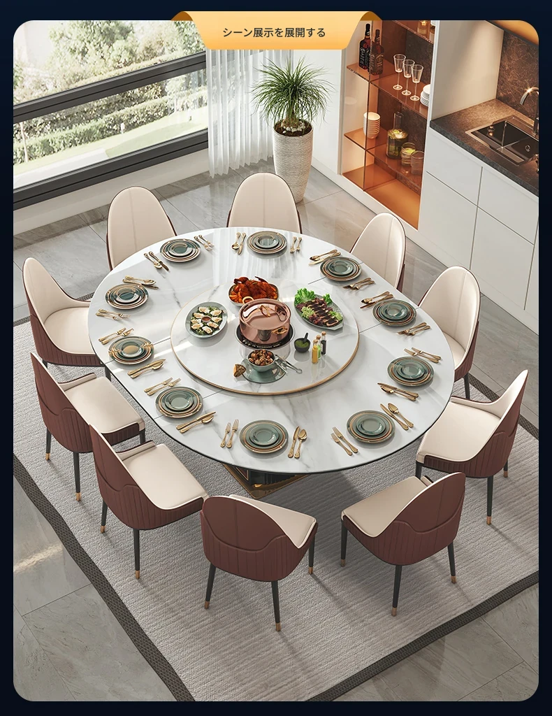 1.35/1.7メートルのダイニングテーブル-【アップグレードされた岩板暖菜回転盤】+10椅子