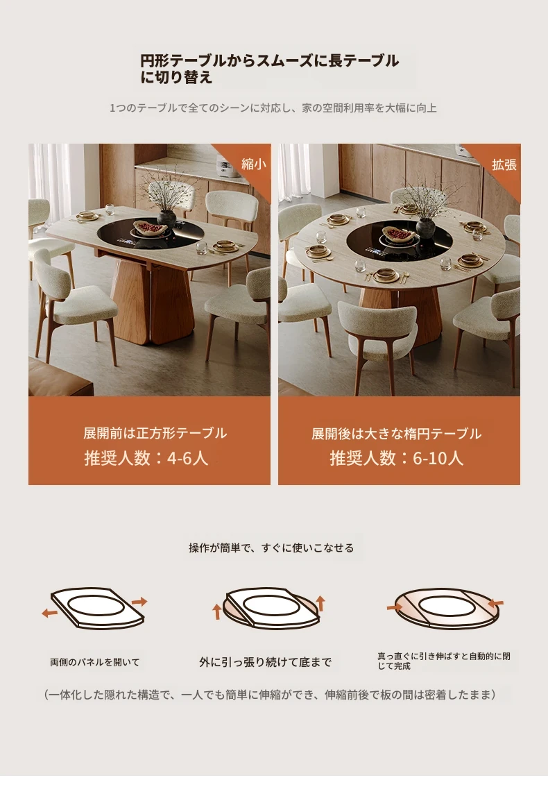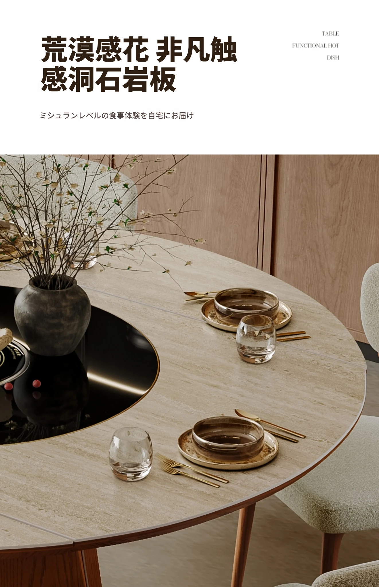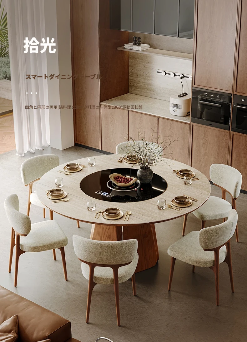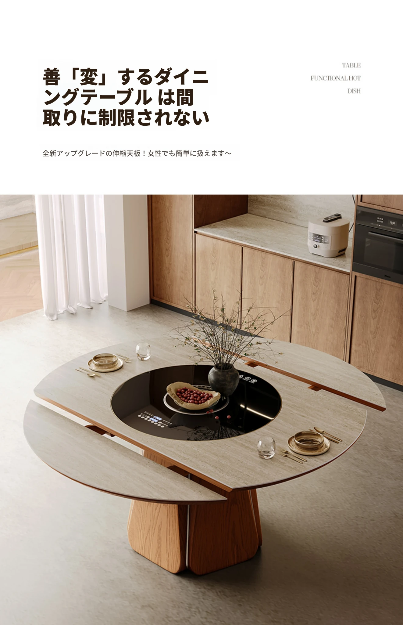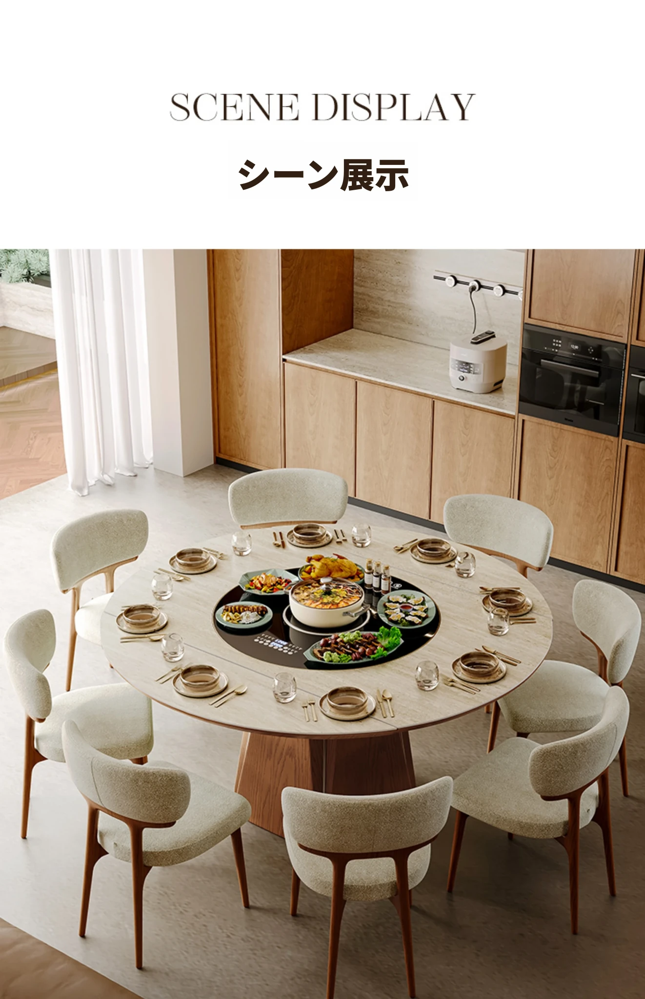 拾光方円機能ダイニングテーブル【電動ターンテーブル+12mm厚の岩板】