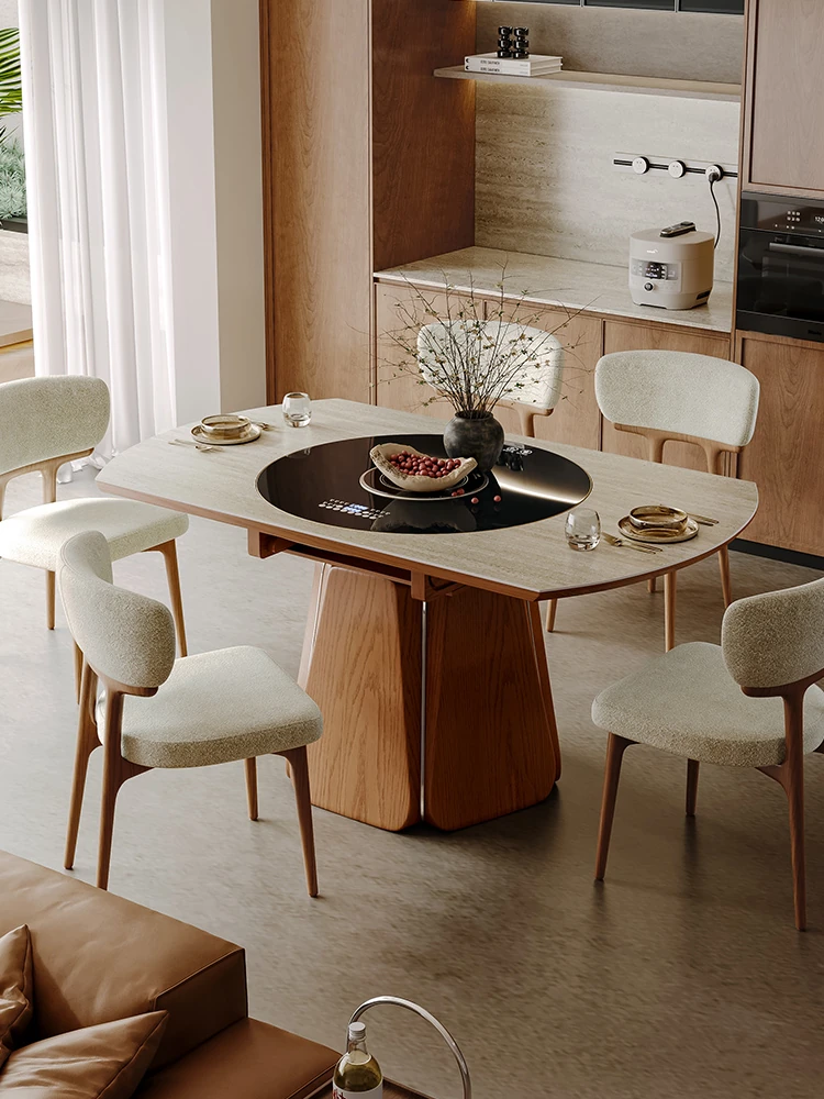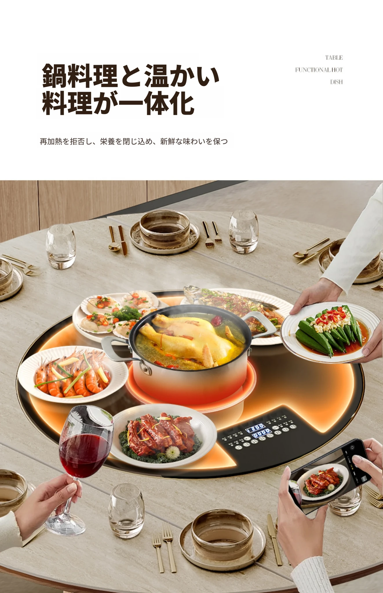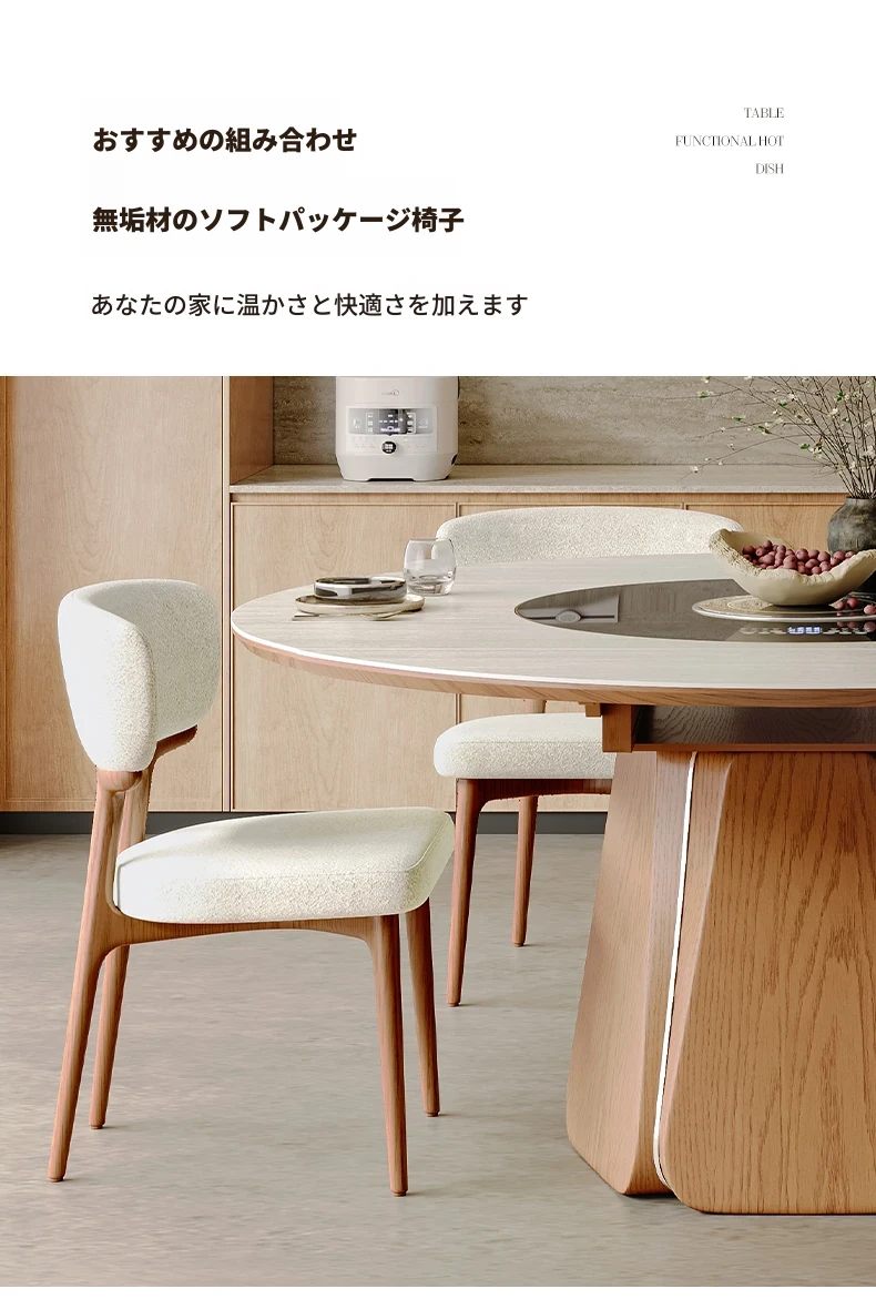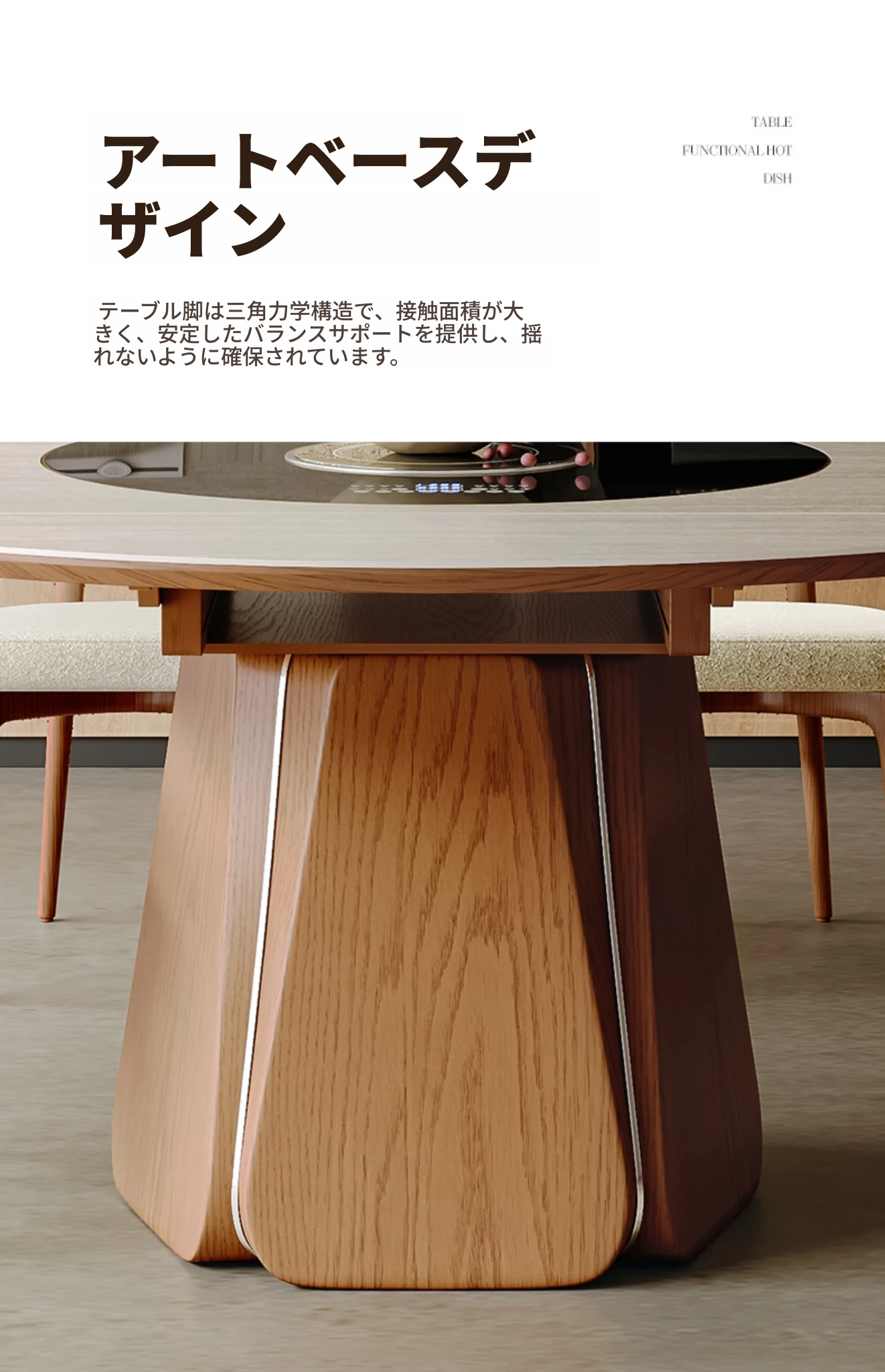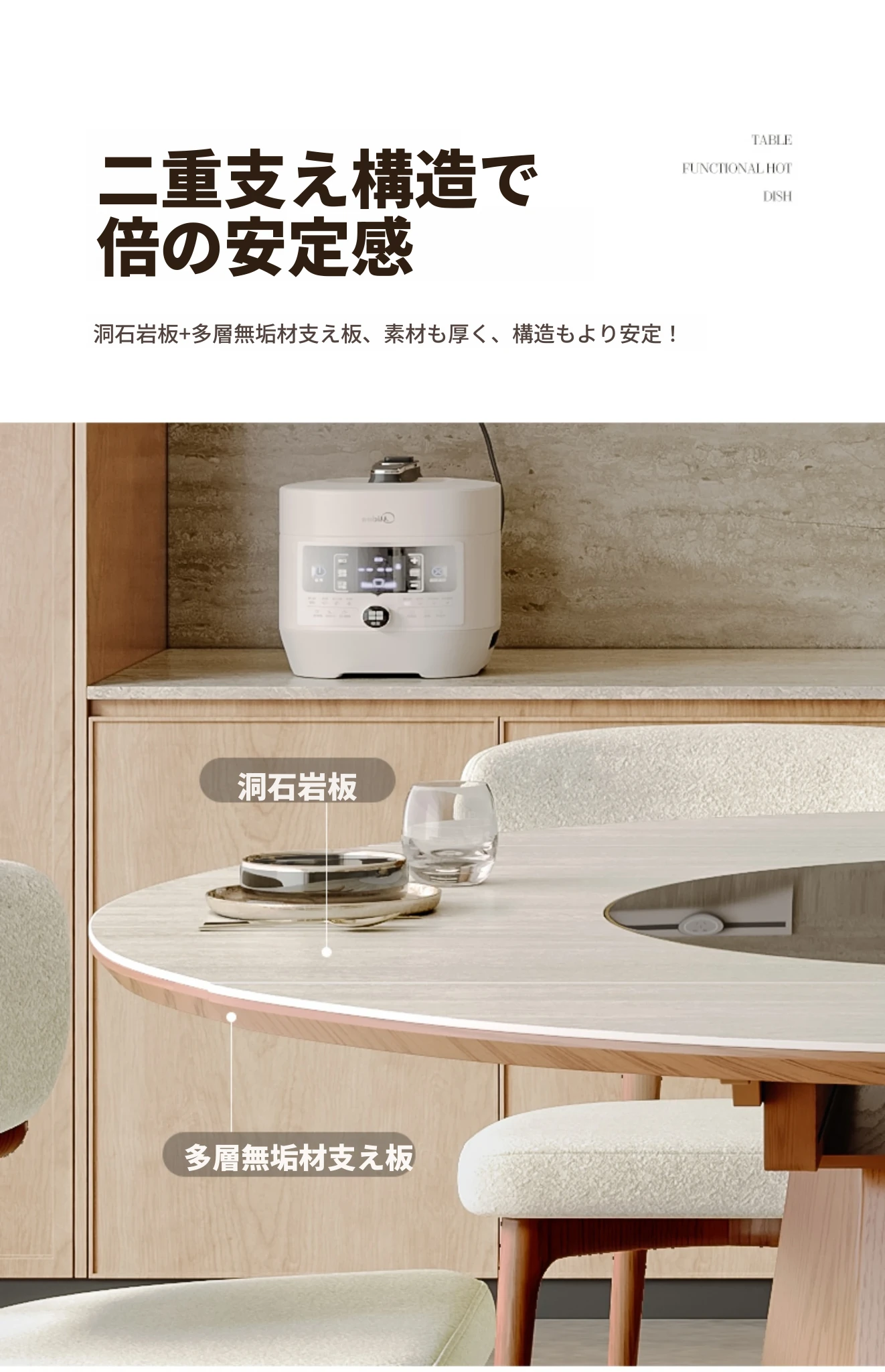拾光方円機能ダイニングテーブル【電動ターンテーブル+12mm厚の岩板】