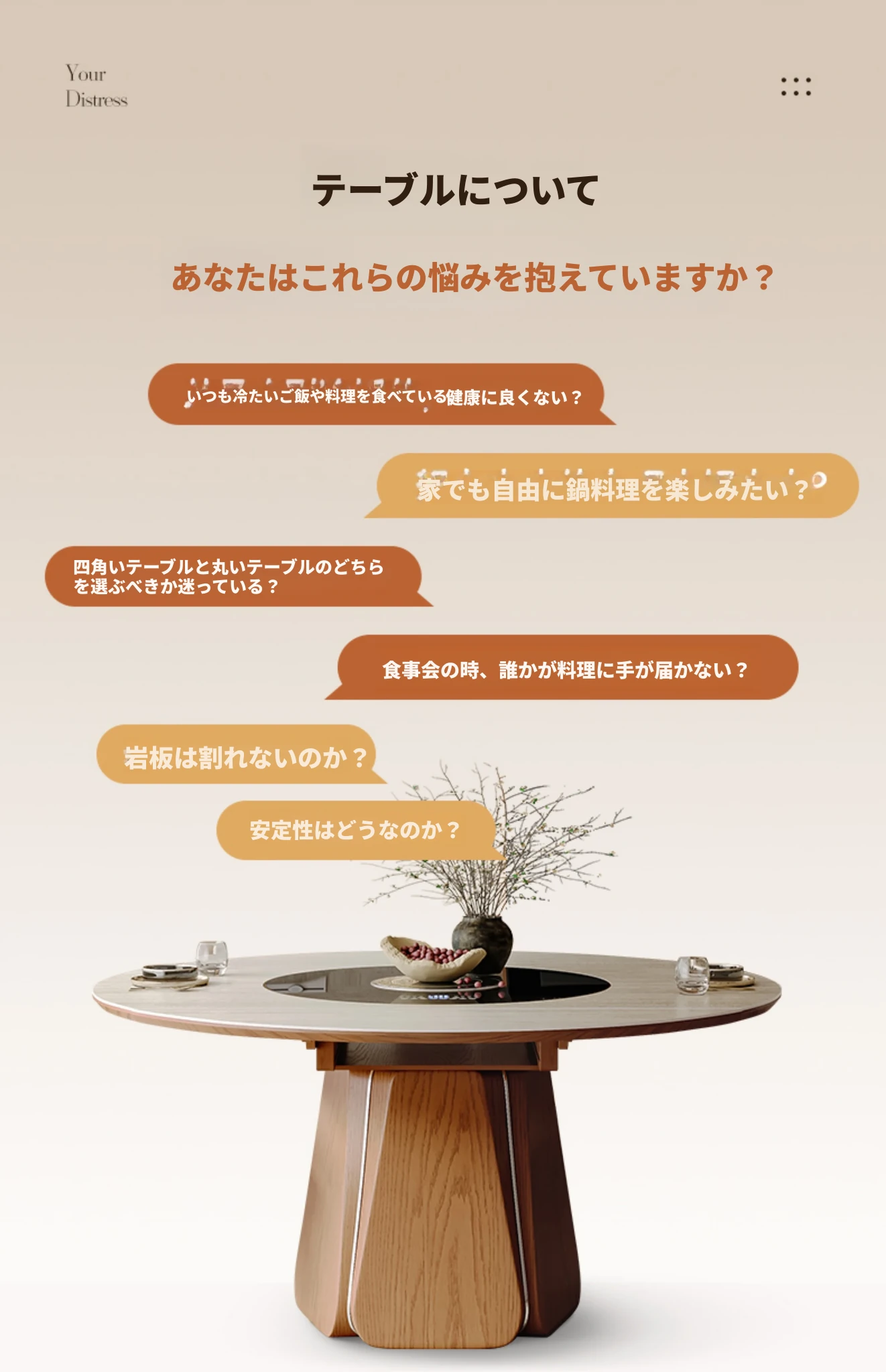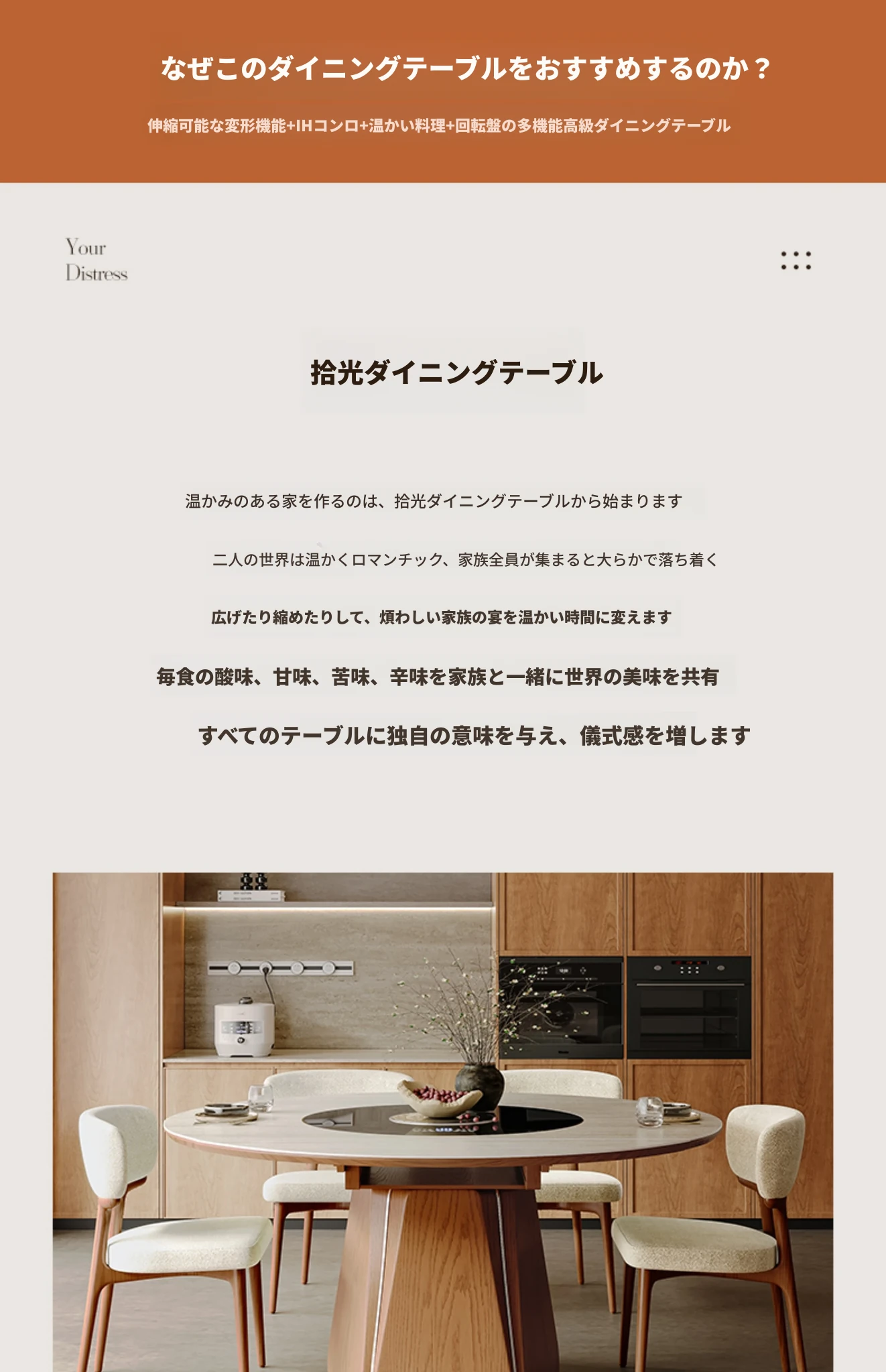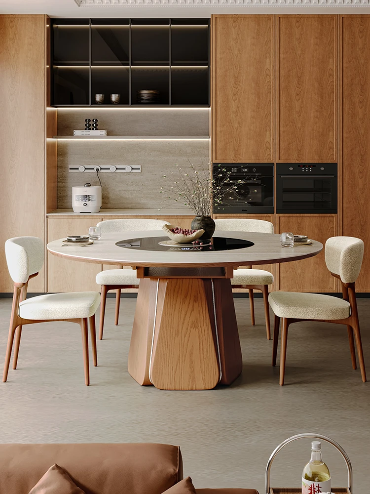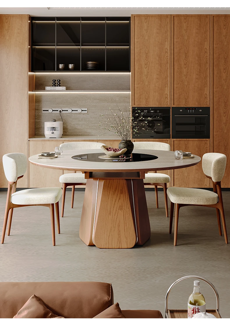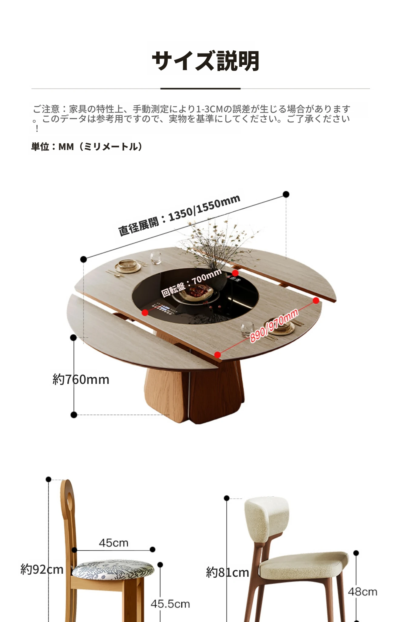 拾光方円機能ダイニングテーブル【電動ターンテーブル+12mm厚の岩板】