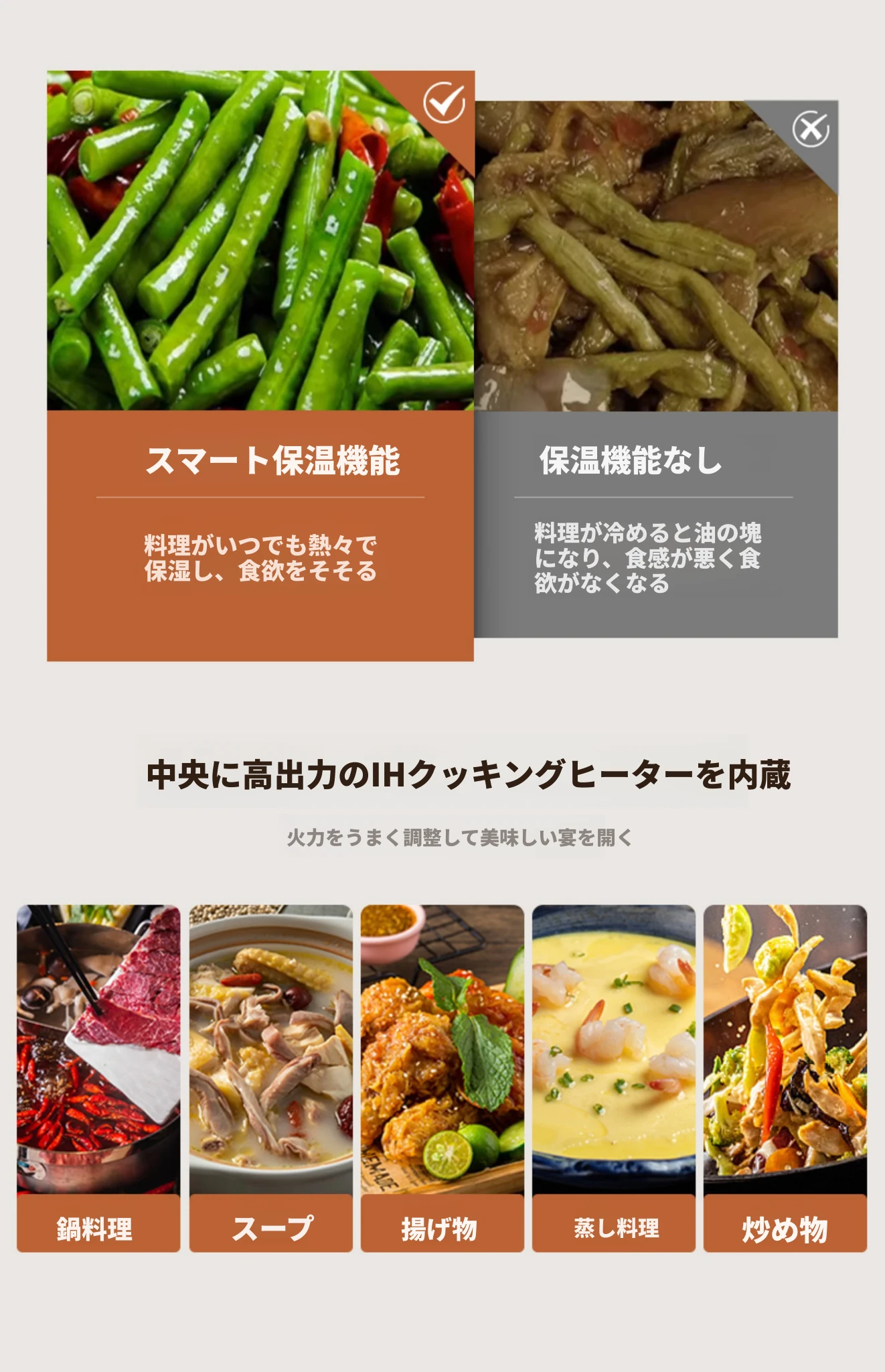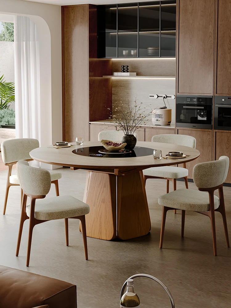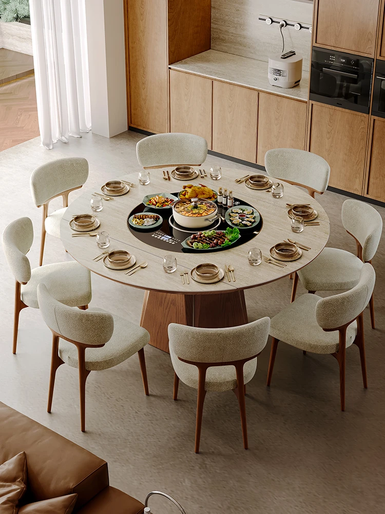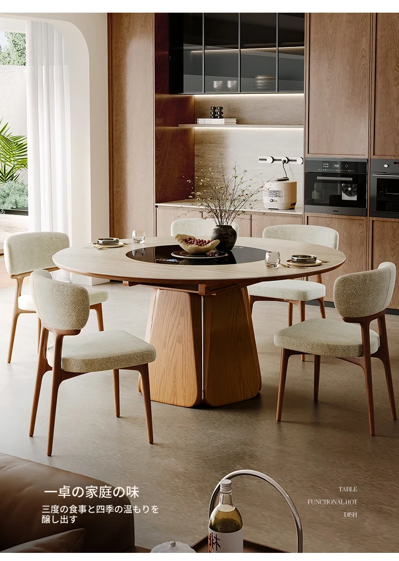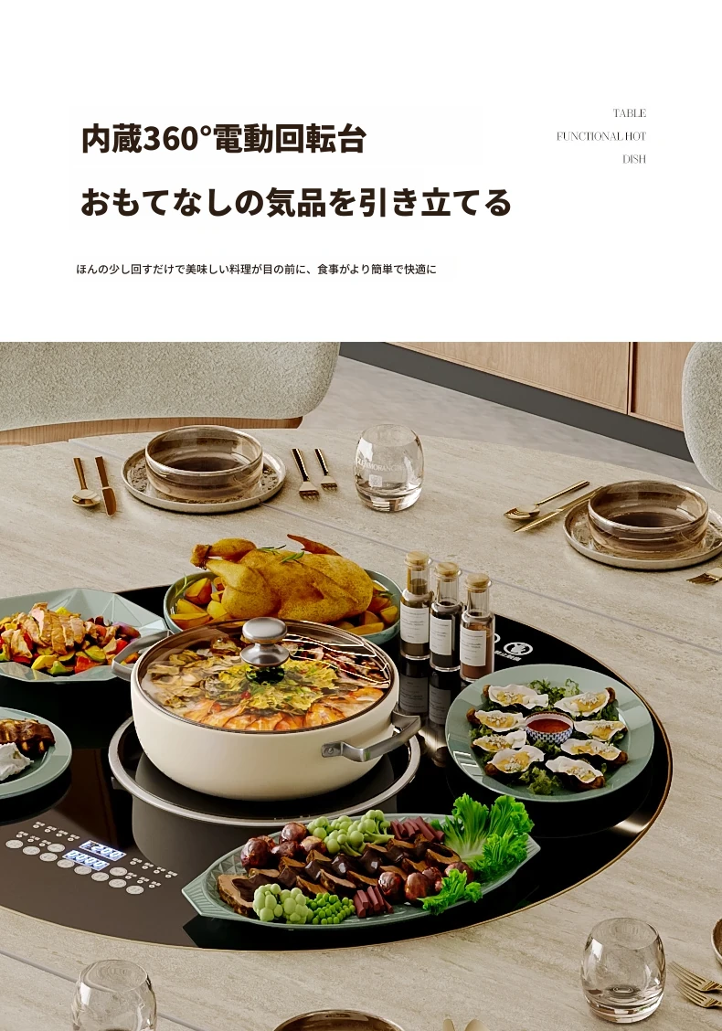 ジェッグソンの無垢材ダイニングテーブル、電動電磁炉付き回転式、アンティーク風デザイン、小スペース向けの伸縮折りたたみ円形テーブルで、家族や友人との楽しい食事を演出します!
