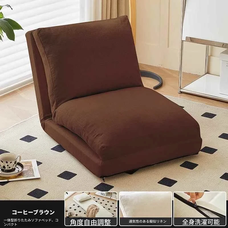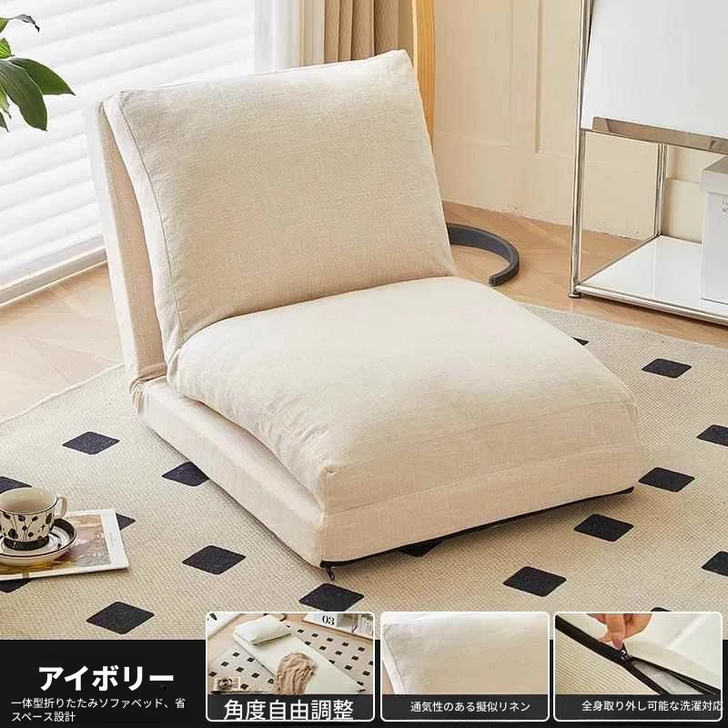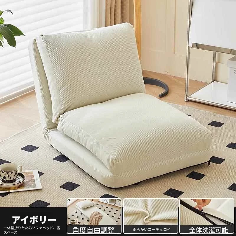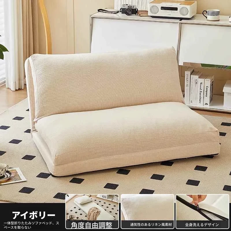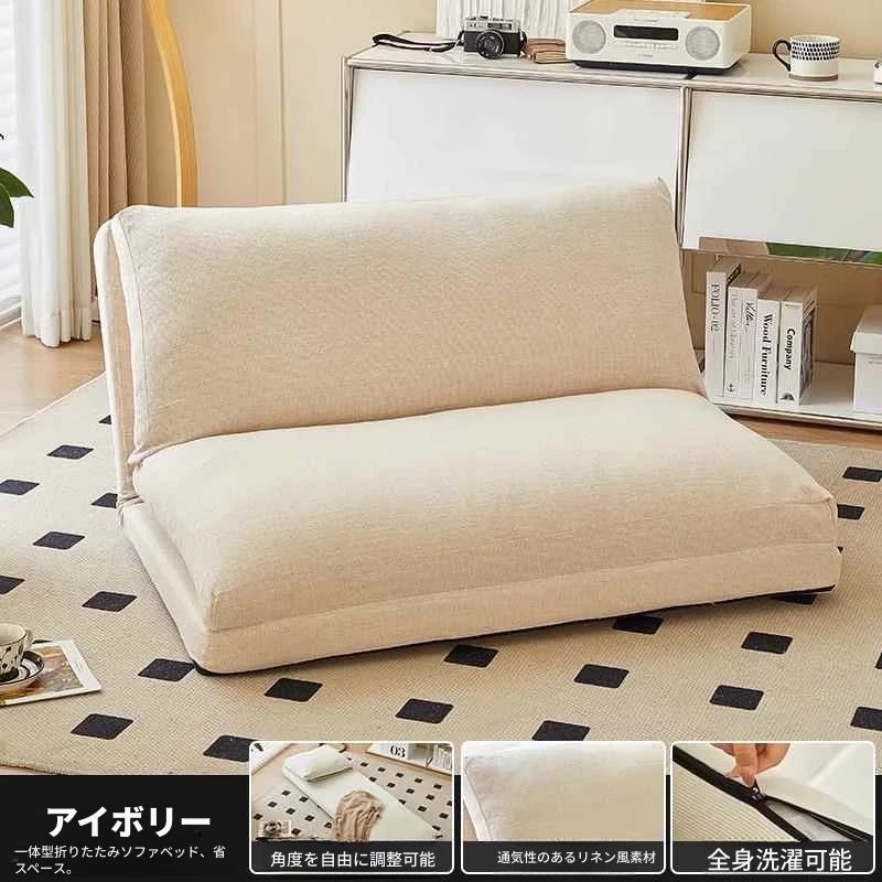 リラックスソファー!寝転んでも座っても心地よい、窓辺にぴったりの背もたれクッション付き。折りたたみ式でベッドサイドやタタミルームにも最適なシングルソファ。快適なひとときをあなたに!