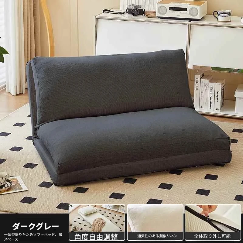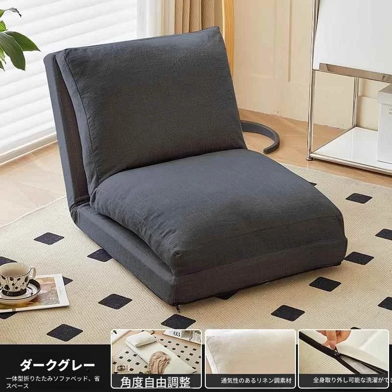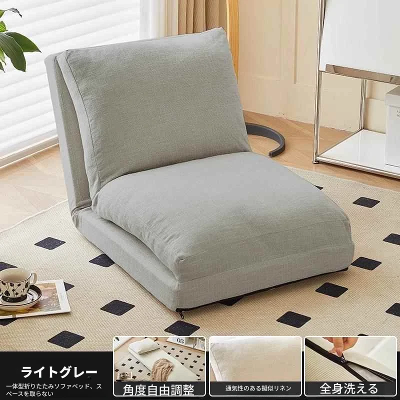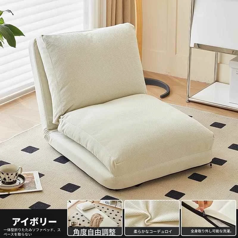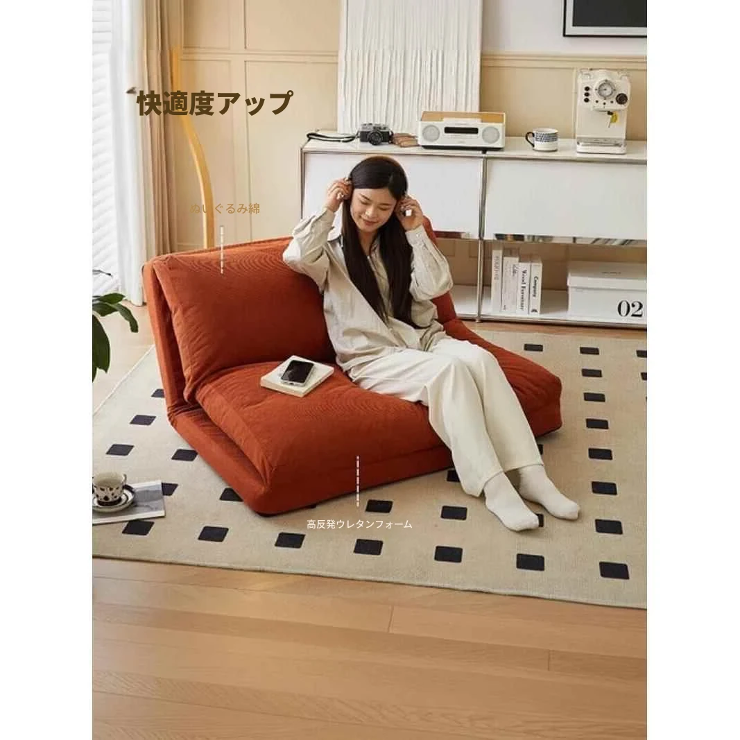 リラックスソファー!寝転んでも座っても心地よい、窓辺にぴったりの背もたれクッション付き。折りたたみ式でベッドサイドやタタミルームにも最適なシングルソファ。快適なひとときをあなたに!