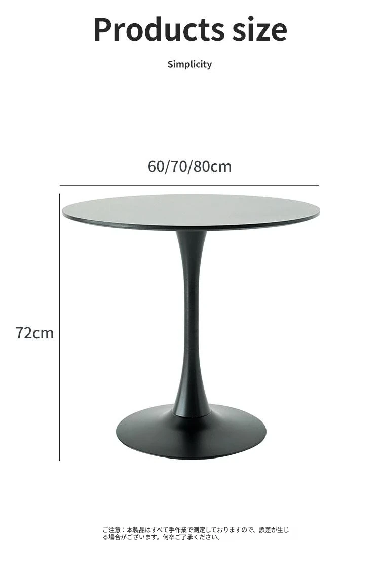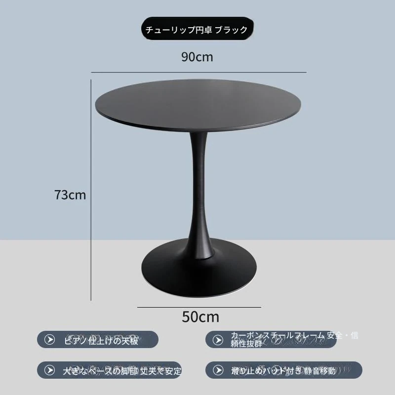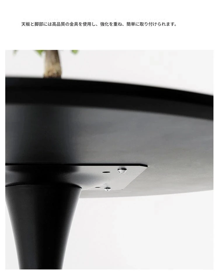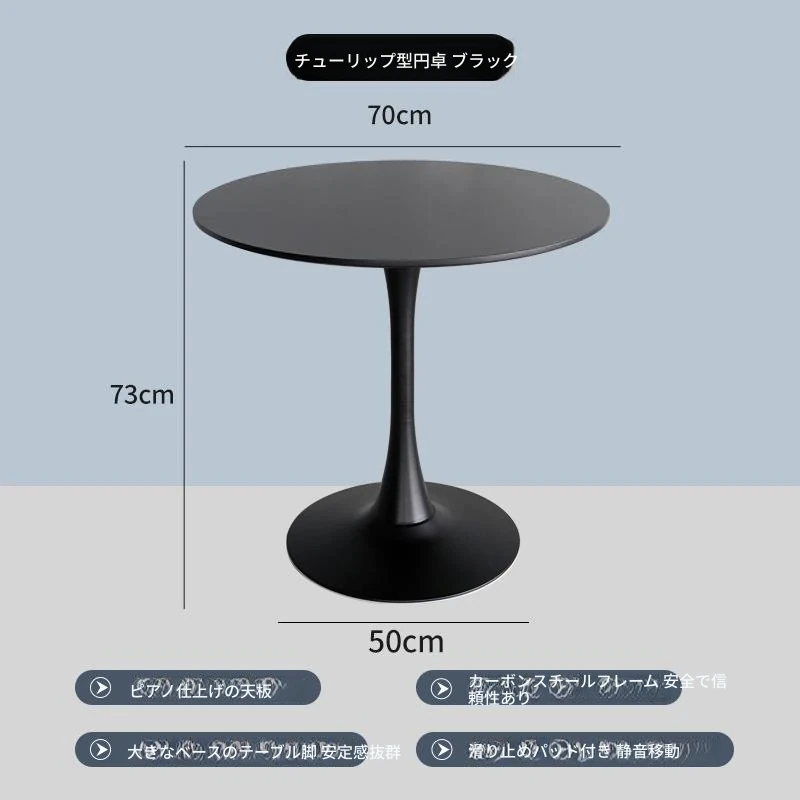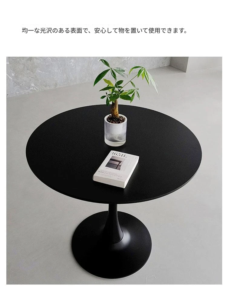 シンプルでおしゃれなバルコニー用小型ラウンドブラック塗装コーヒーテーブル|ティータイムや商談に最適なチューリップ型の受付テーブル
