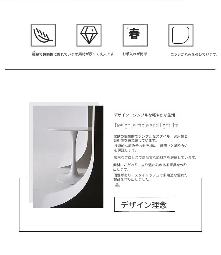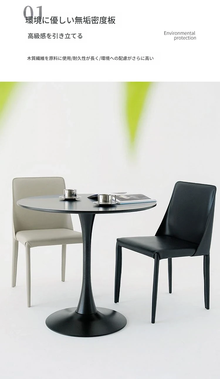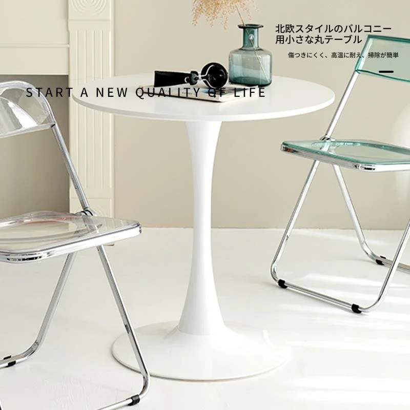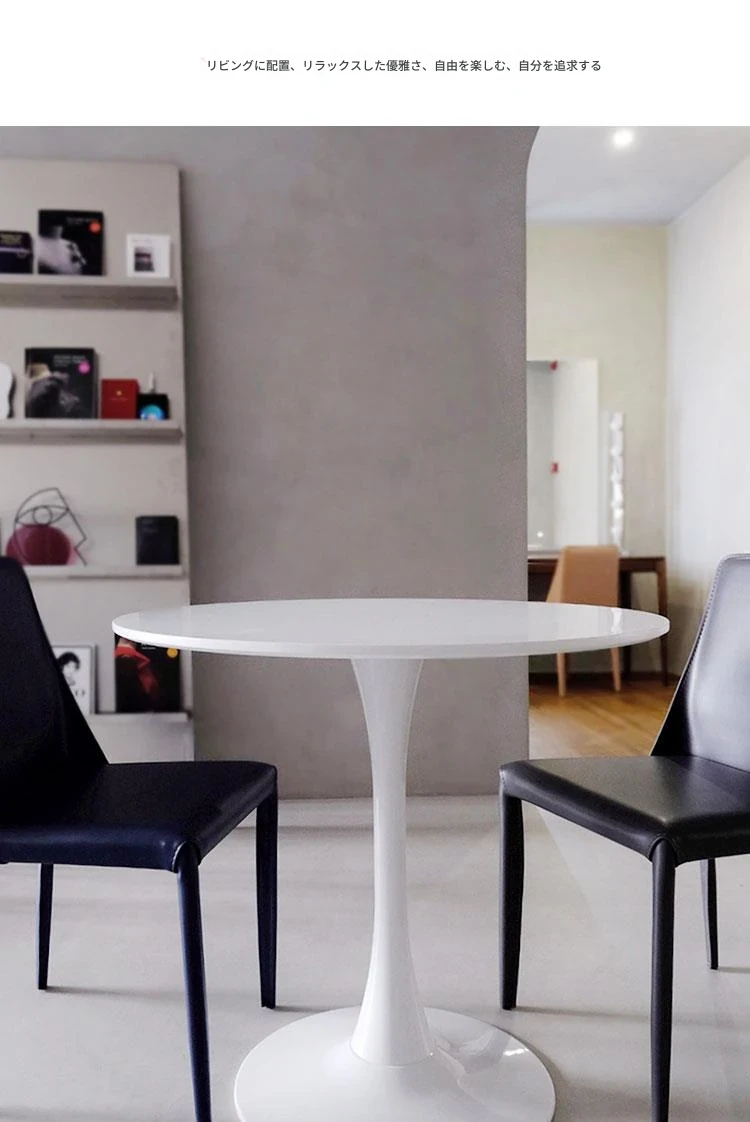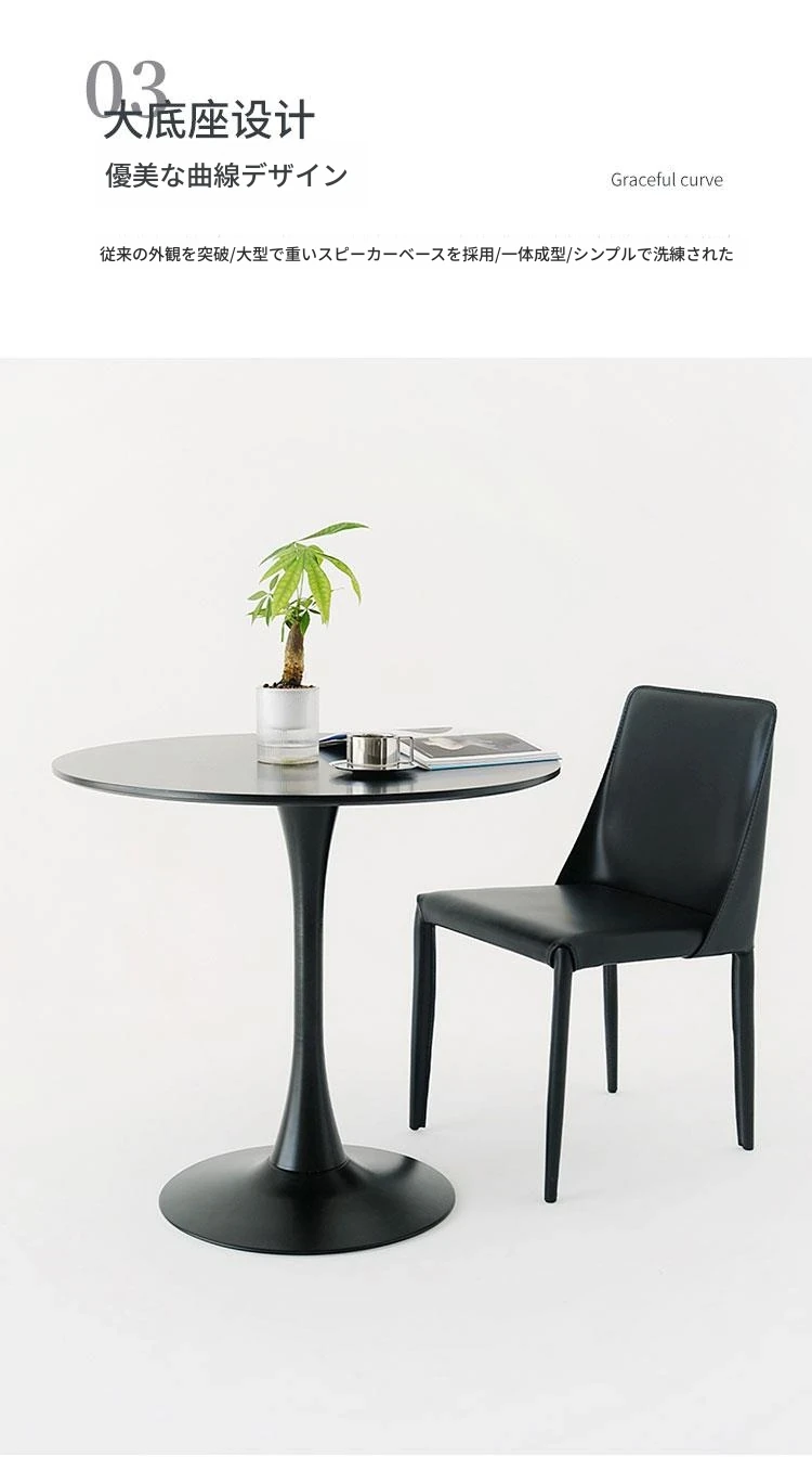 シンプルでおしゃれなバルコニー用小型ラウンドブラック塗装コーヒーテーブル|ティータイムや商談に最適なチューリップ型の受付テーブル