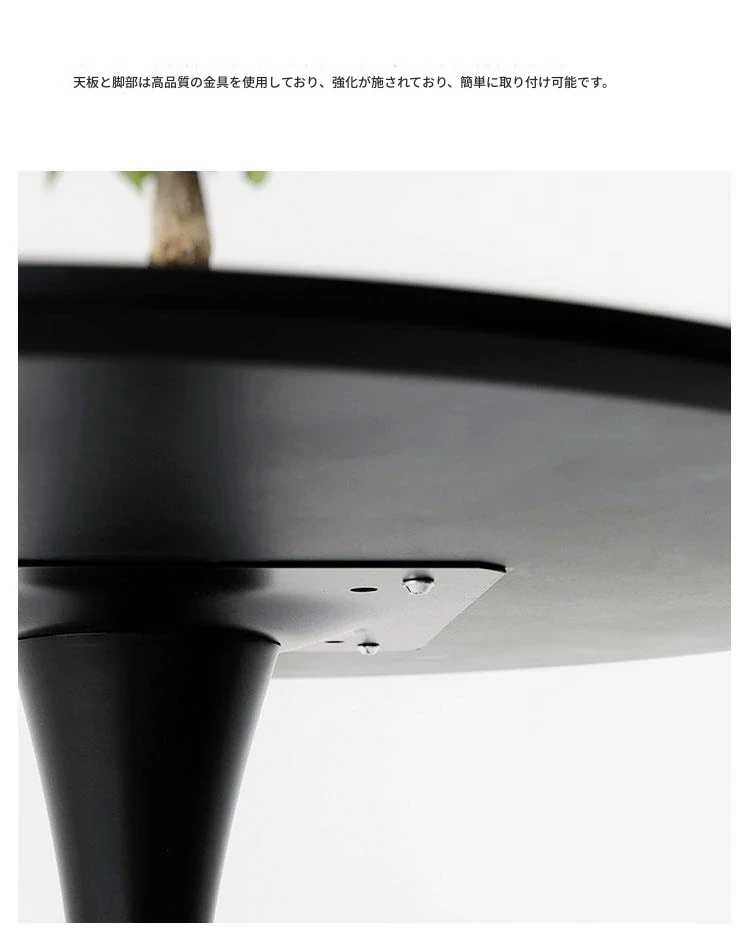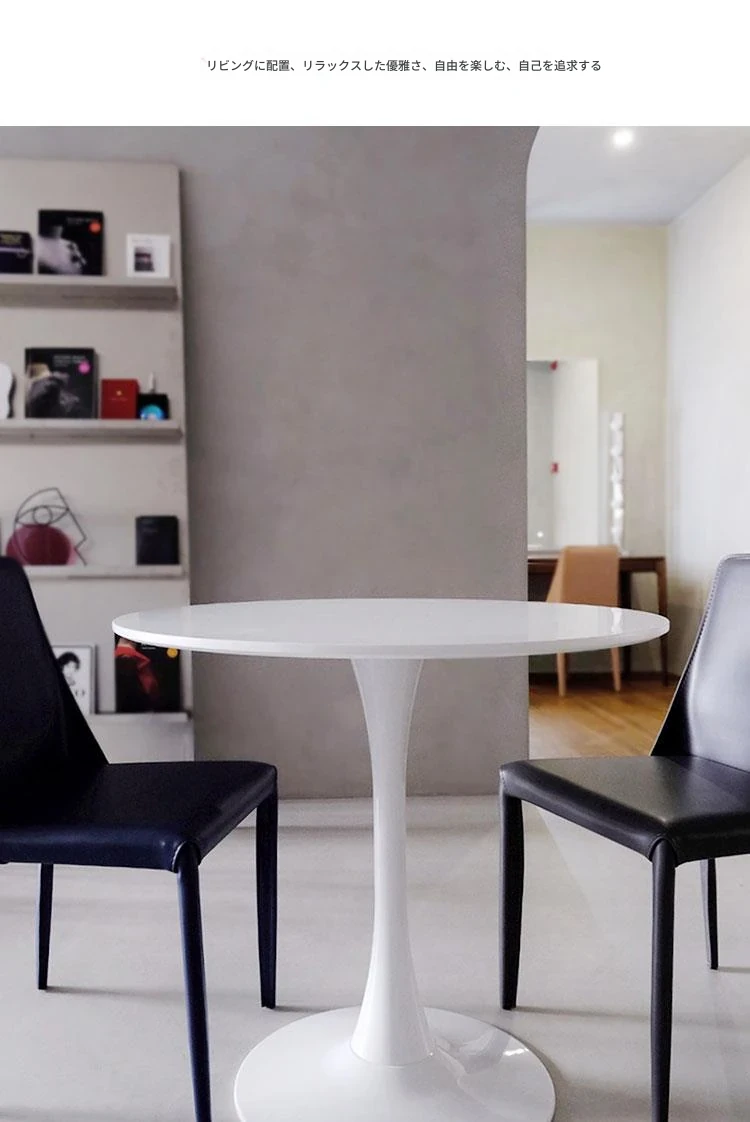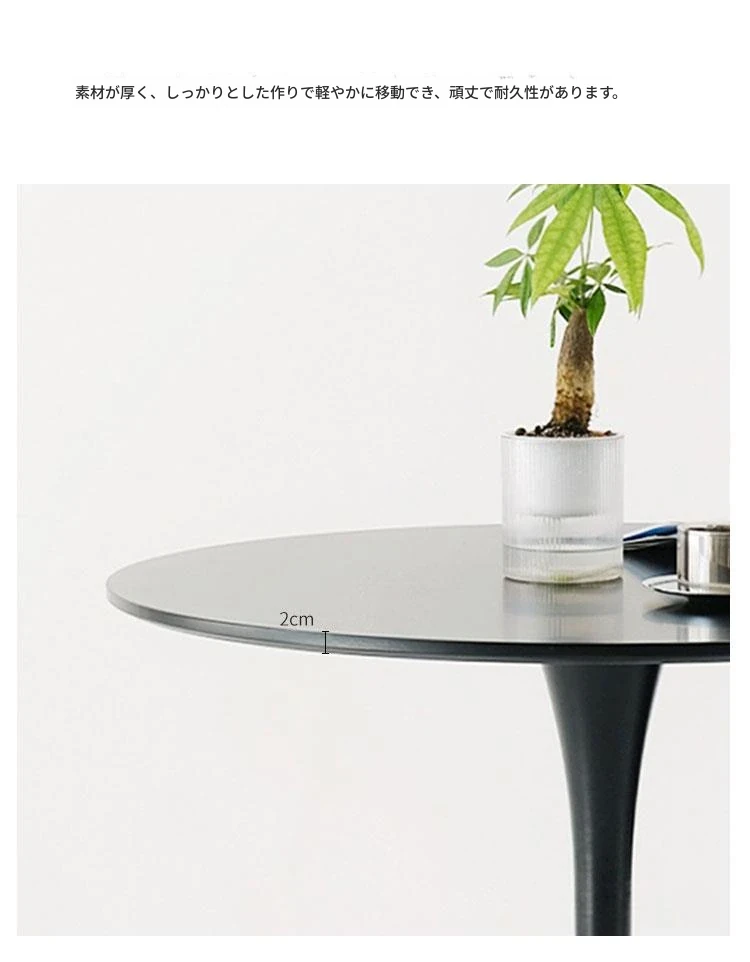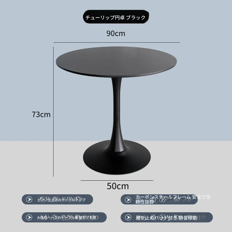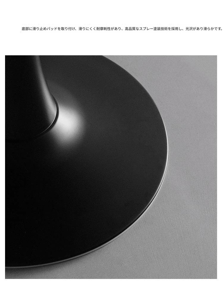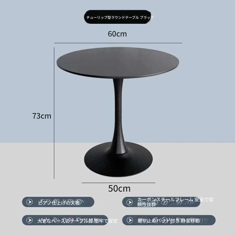 バルコニー用ミニマルデザインの黒いラッカー仕上げコーヒーテーブル - おしゃれなティータイムやカジュアルなミーティングに最適!チューリップ型、接客にもぴったりなコンパクトサイズ。
