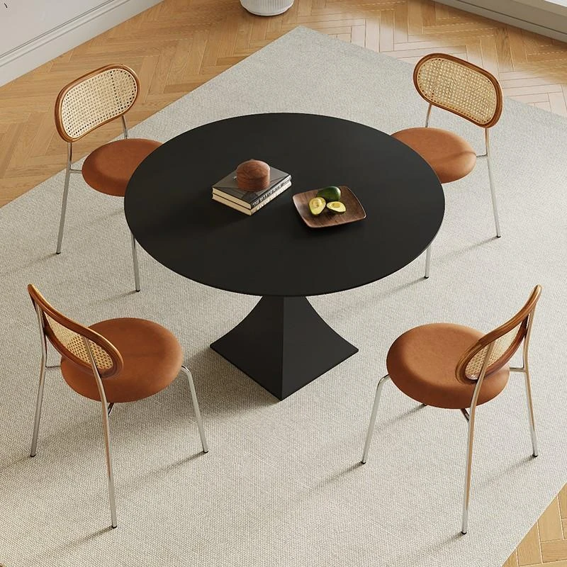 純黒の岩板デザイナーデスク 直径110CM(保証5年)