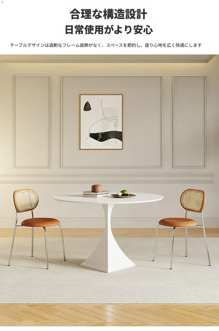 純白の岩板デザイナーデスク 直径110CM(保証5年)