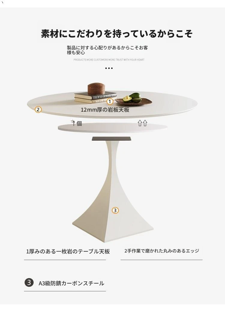 純白の岩板デザイナーデスク 直径130CM(保証5年)