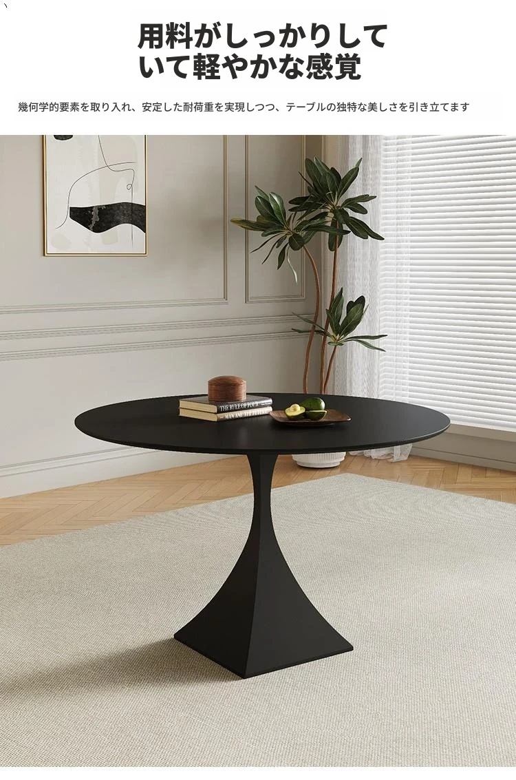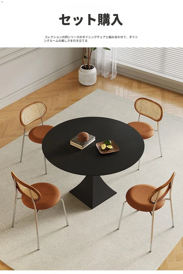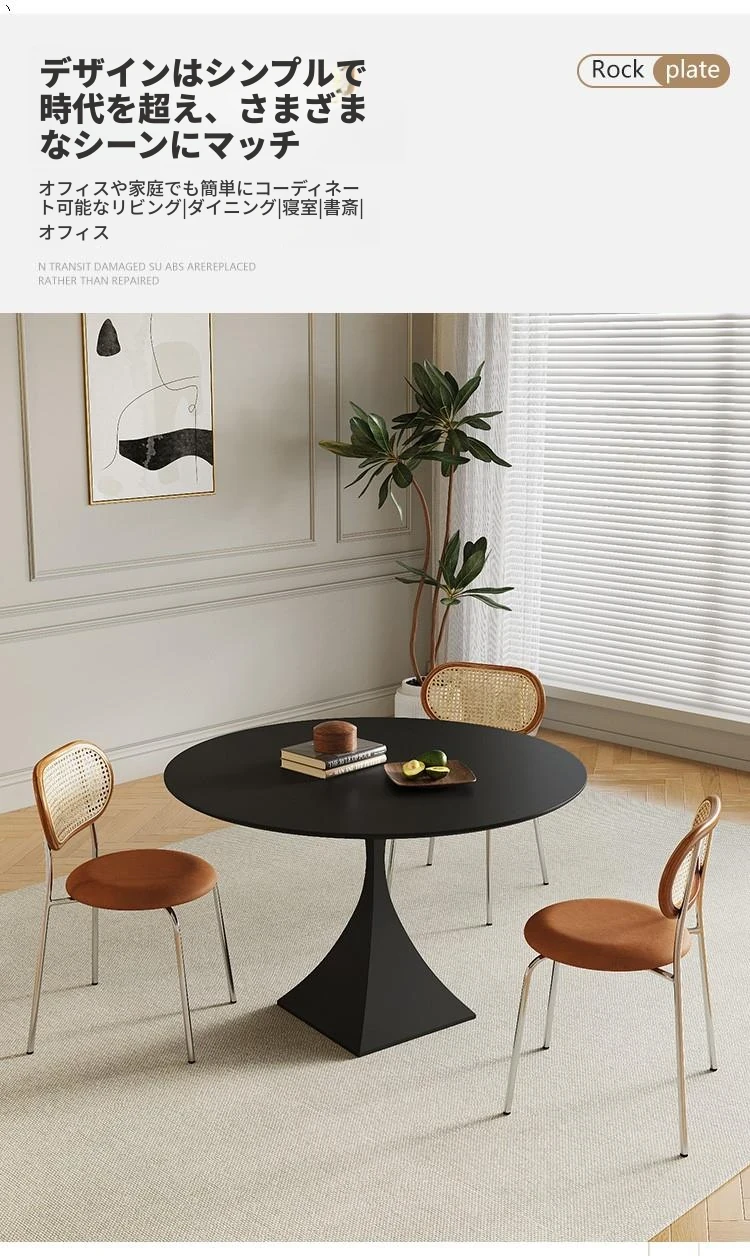 純黒の岩板デザイナーデスク 直径120CM(保証5年)